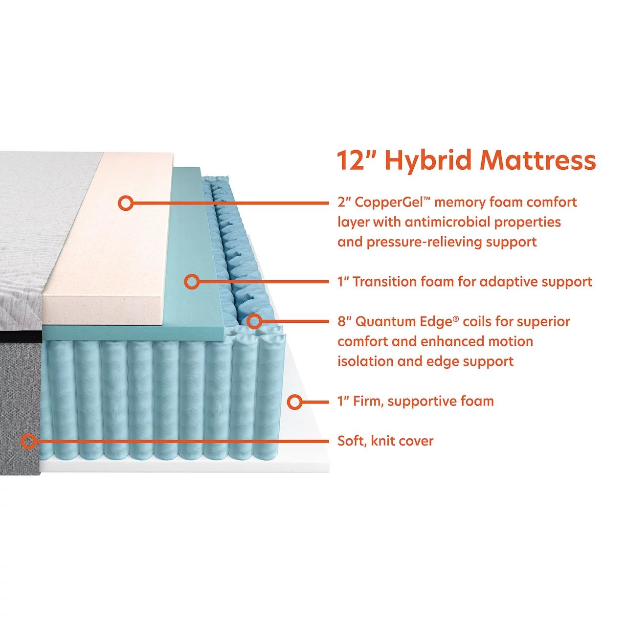 Craft & Trade Daybreak 12" Hybrid Mattress-in-a-Box, California King, 2 Bonus Pillows