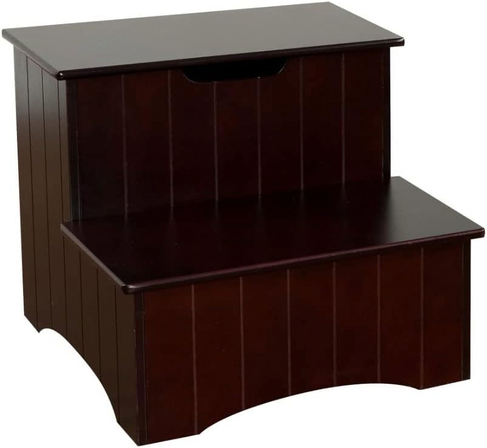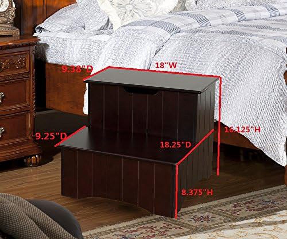 Kings Brand Furniture Wood 2-Step Stool 16"H with Storage for Bedroom Kitchen, Cherry