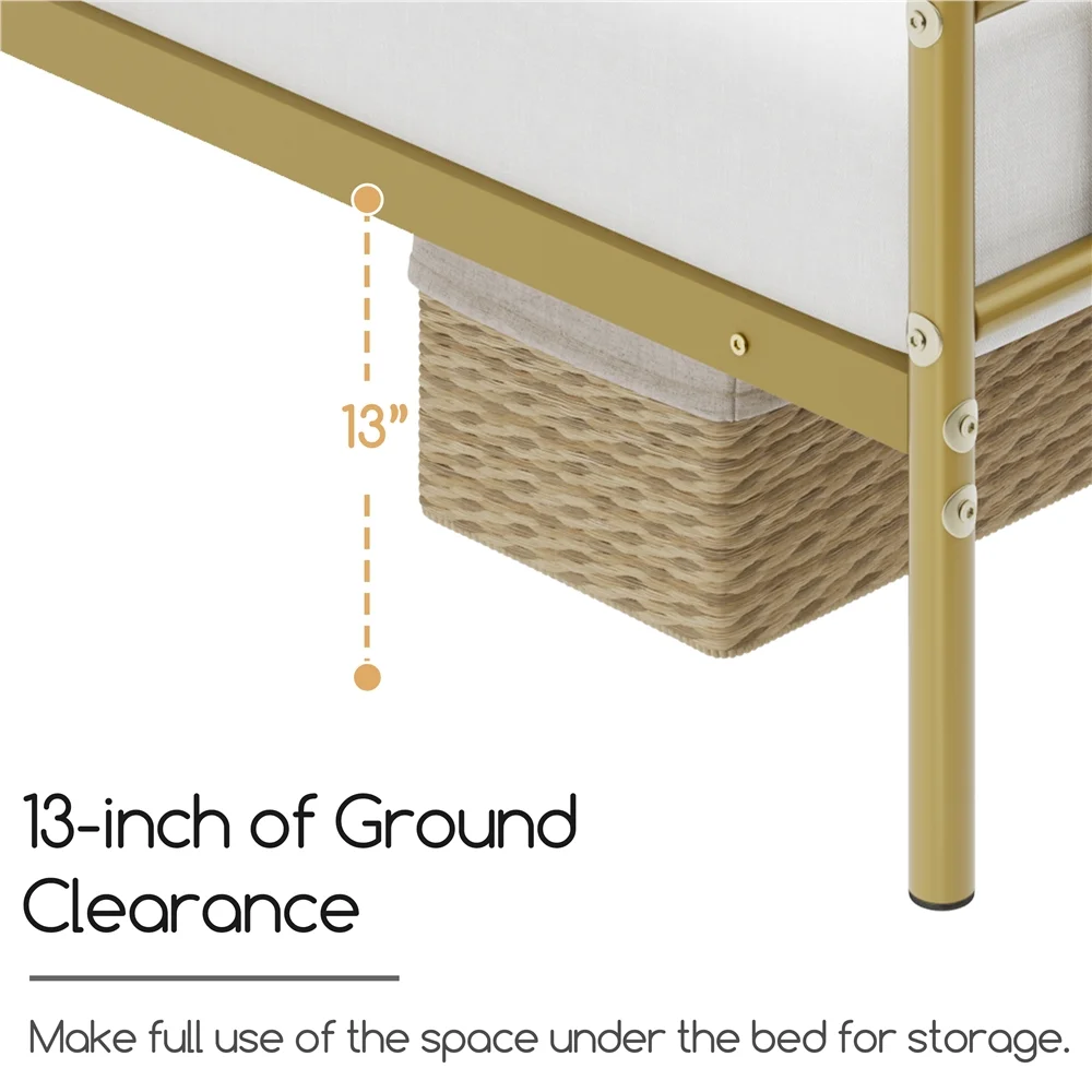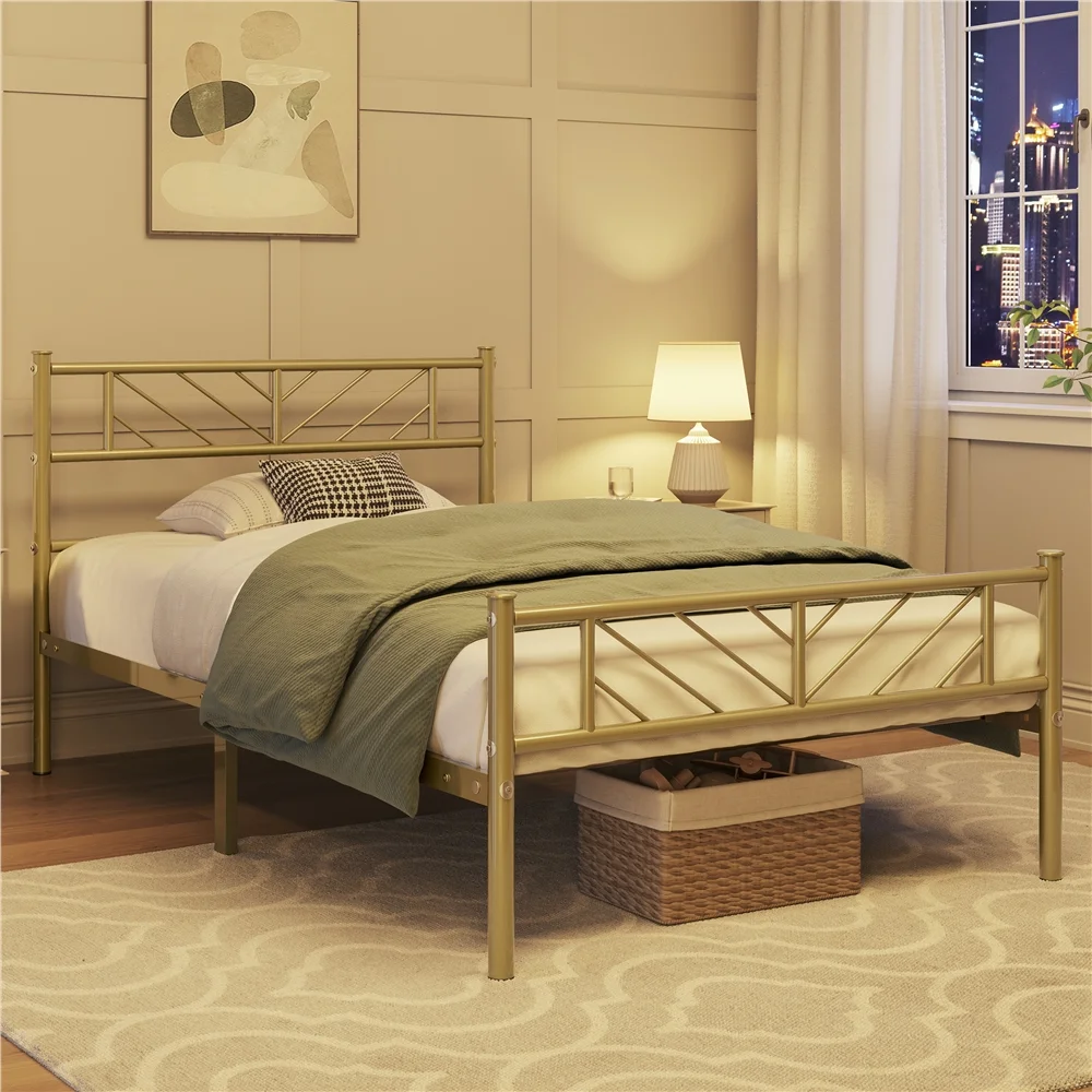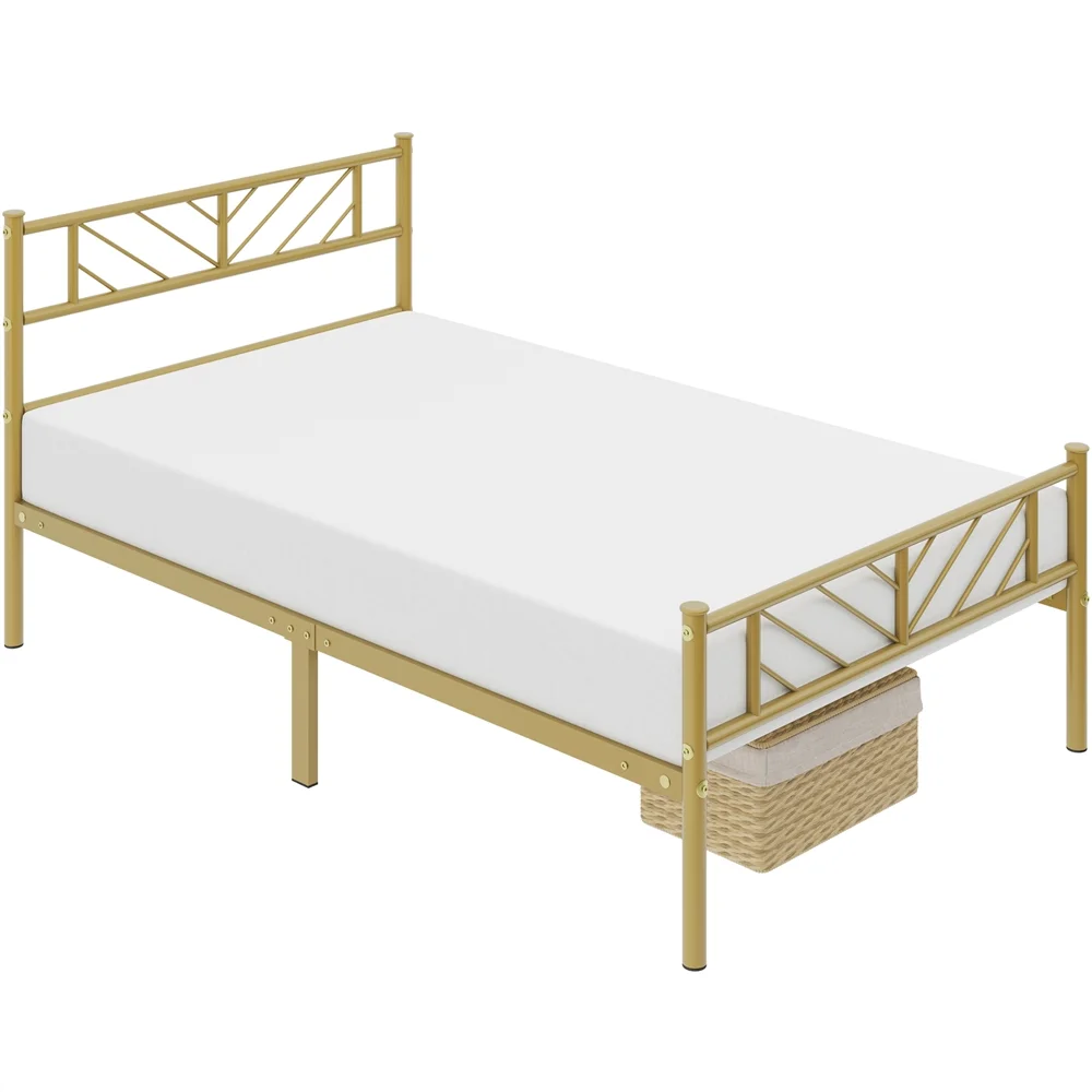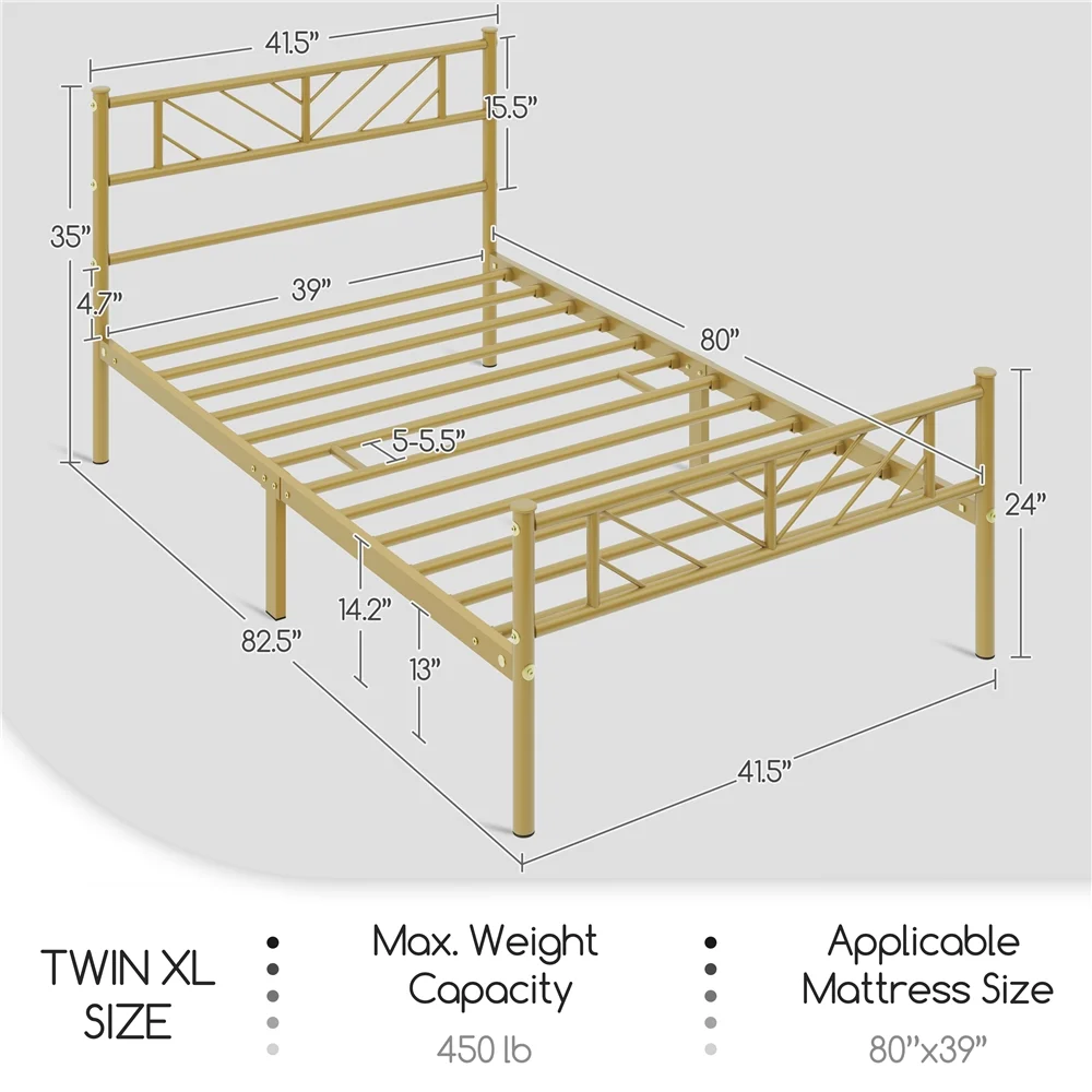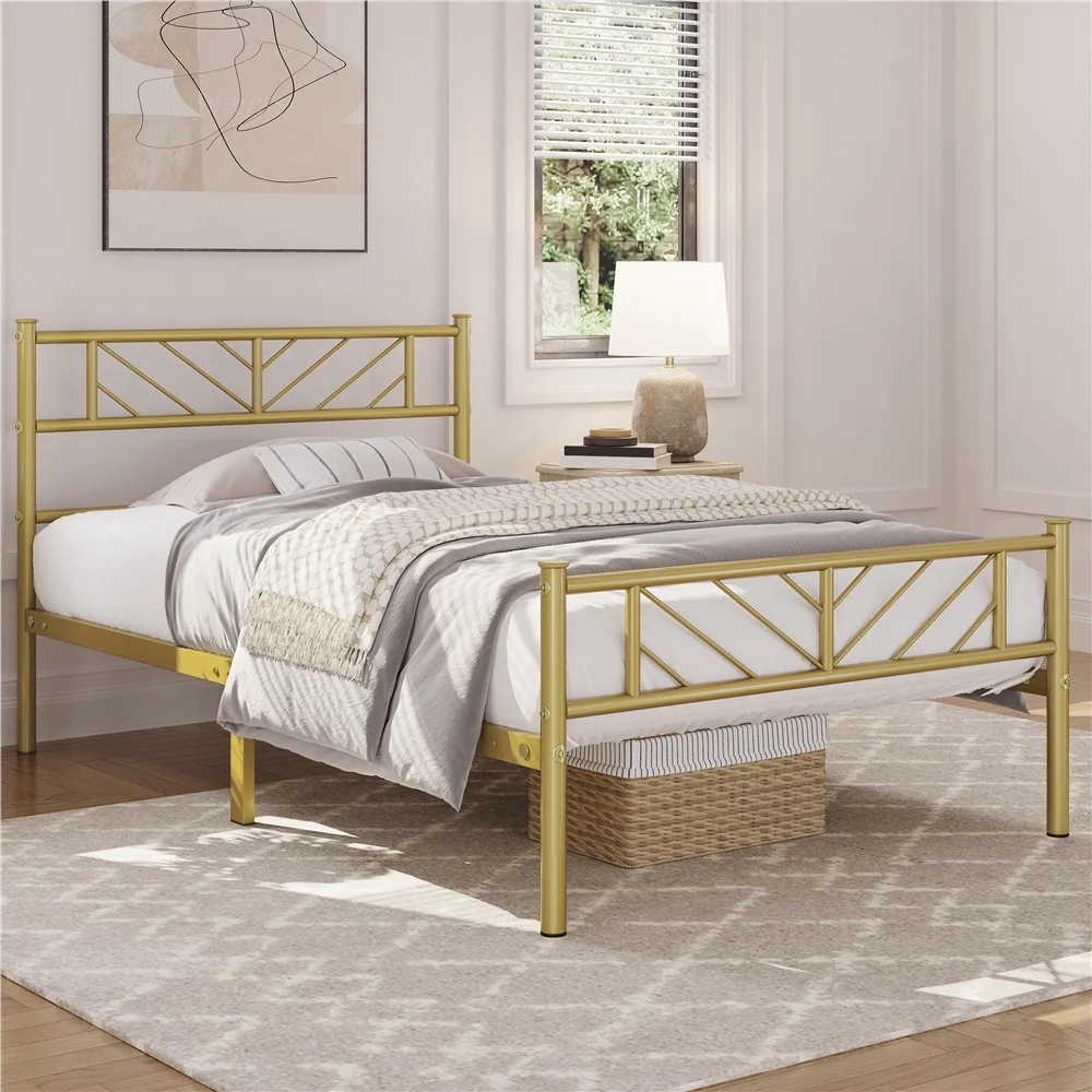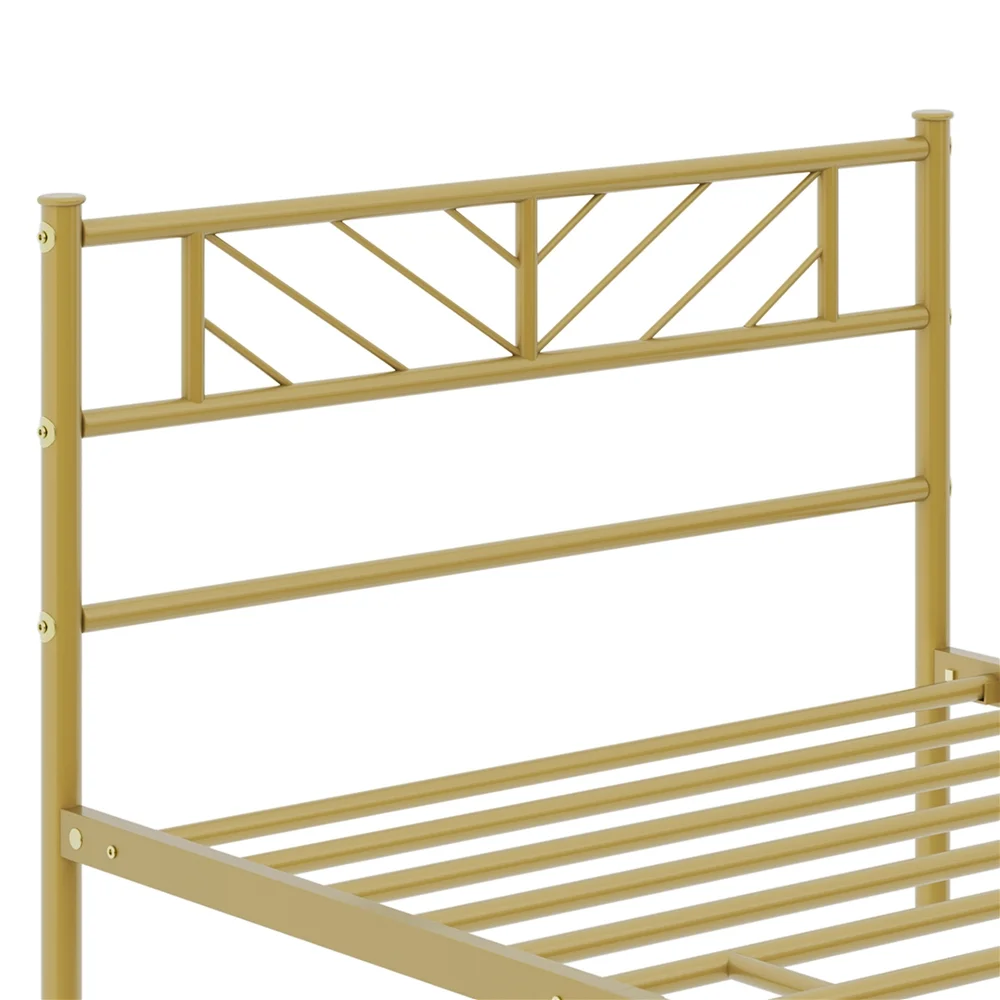 Easyfashion Justice Metal Platform Bed with Arrow Design,Twin XL,Antique Gold