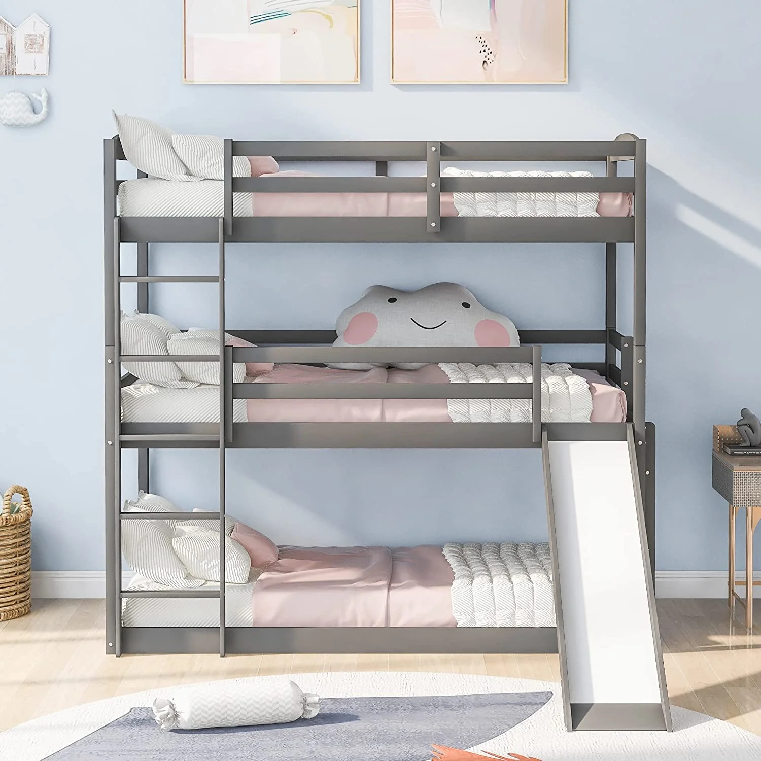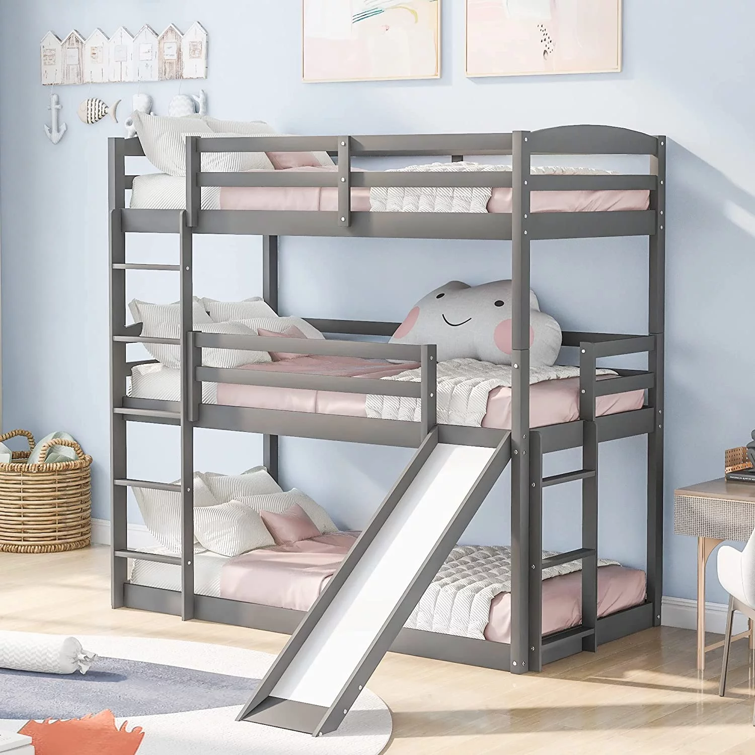 Bunk Beds Over Over Size, Triple Bunk Beds Low Profile For Kids Grey