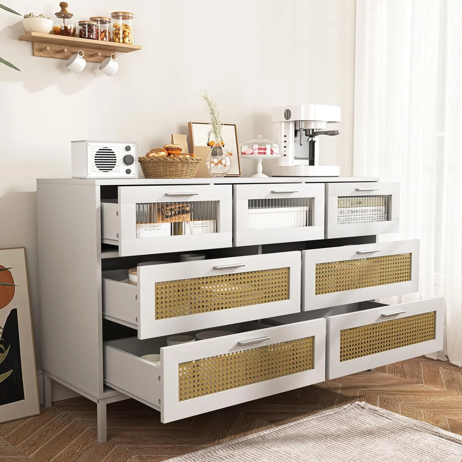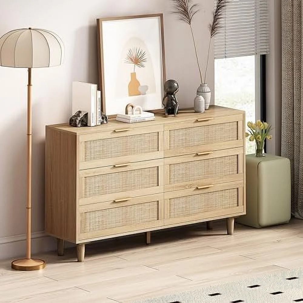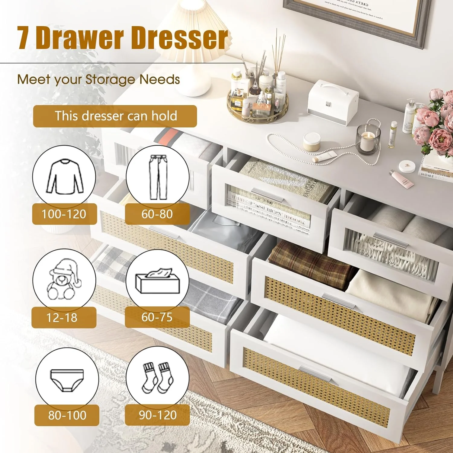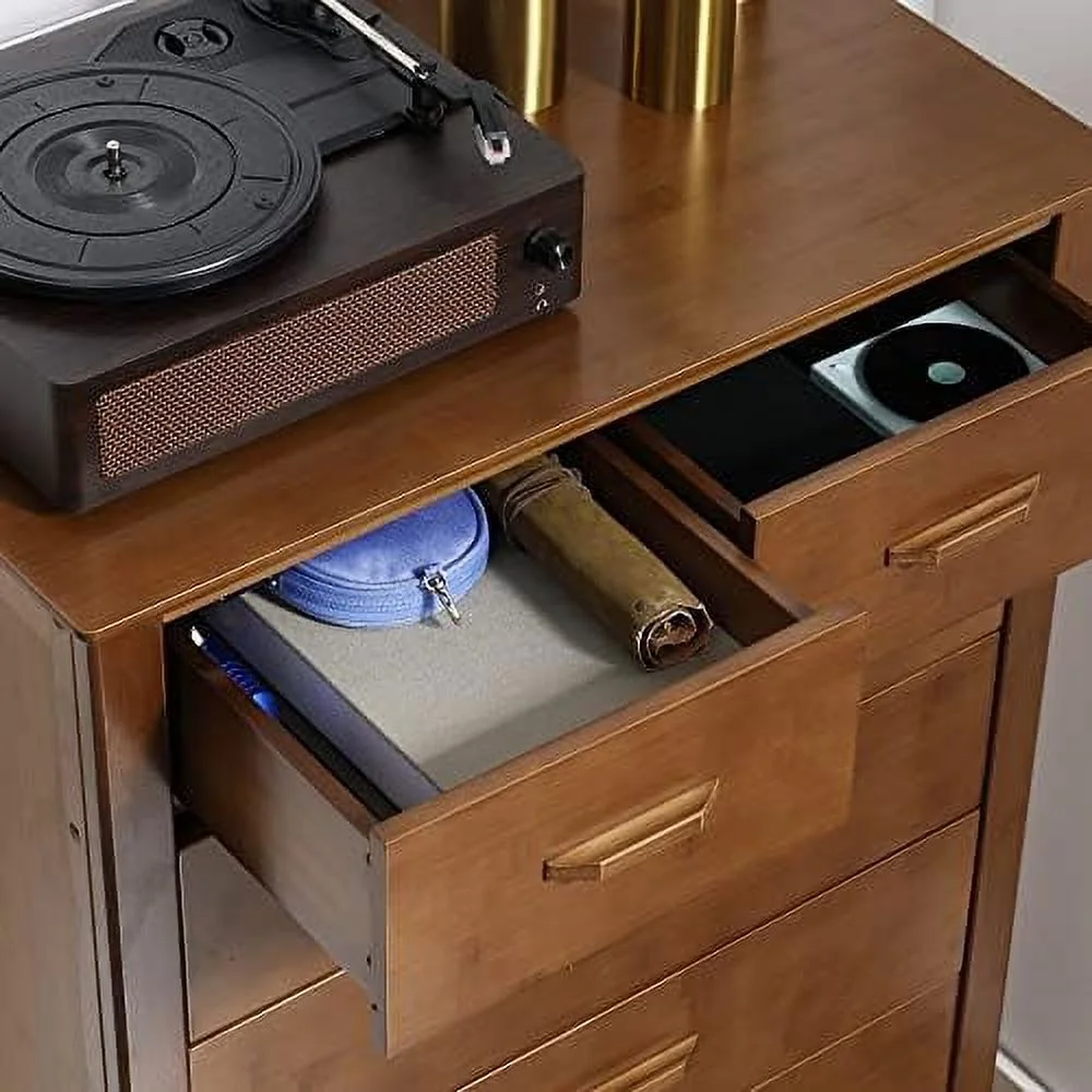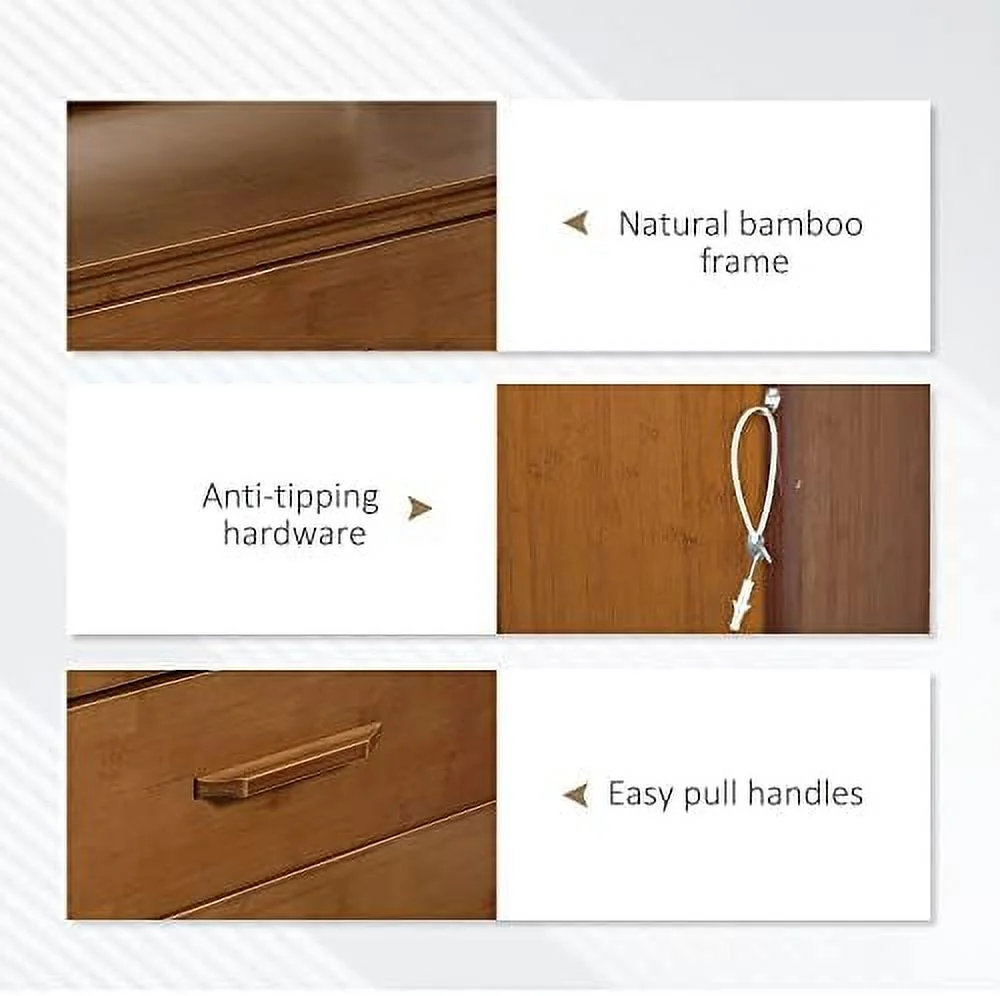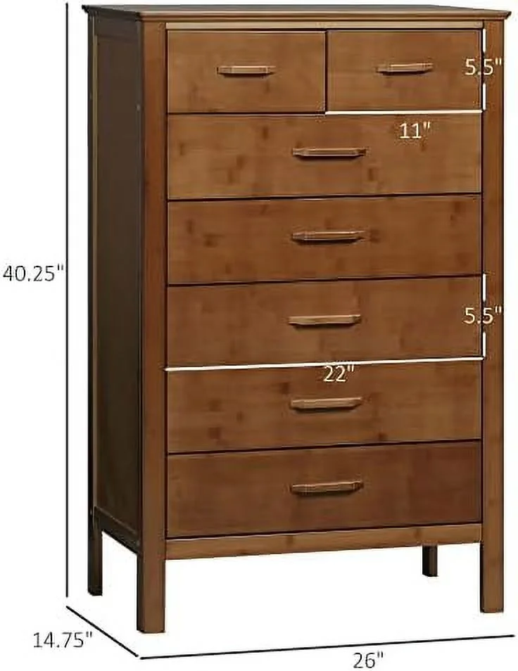 CCBIUOMBO Tall Dresser for Bedroom 7 Drawer Dresser Chest of Drawers with Bamboo Frame Brown