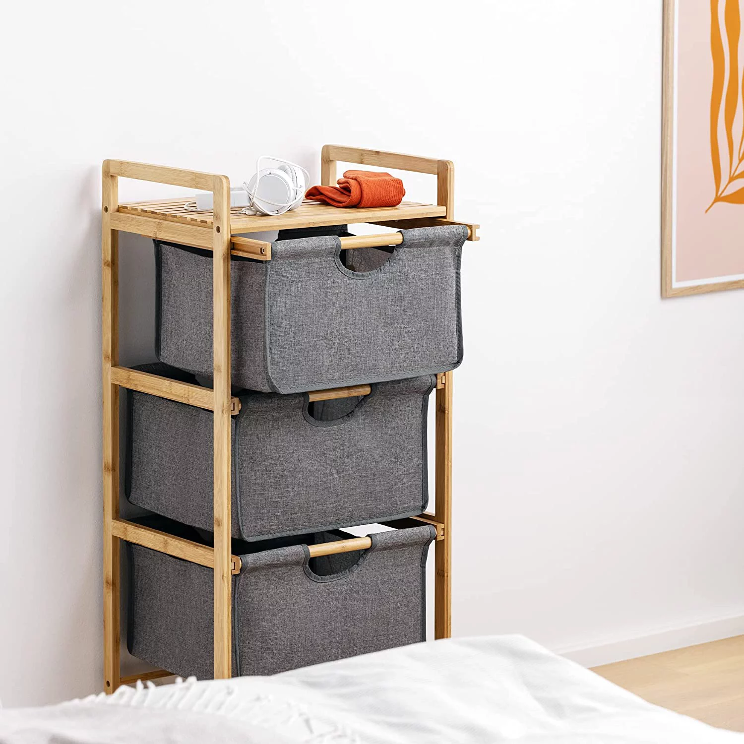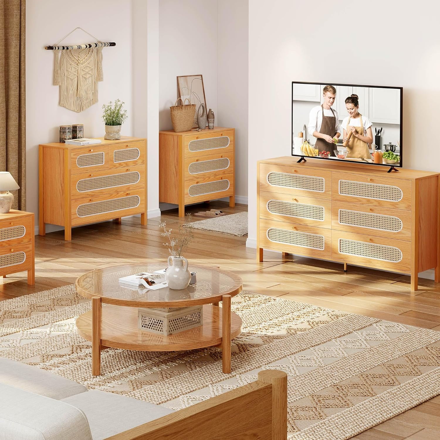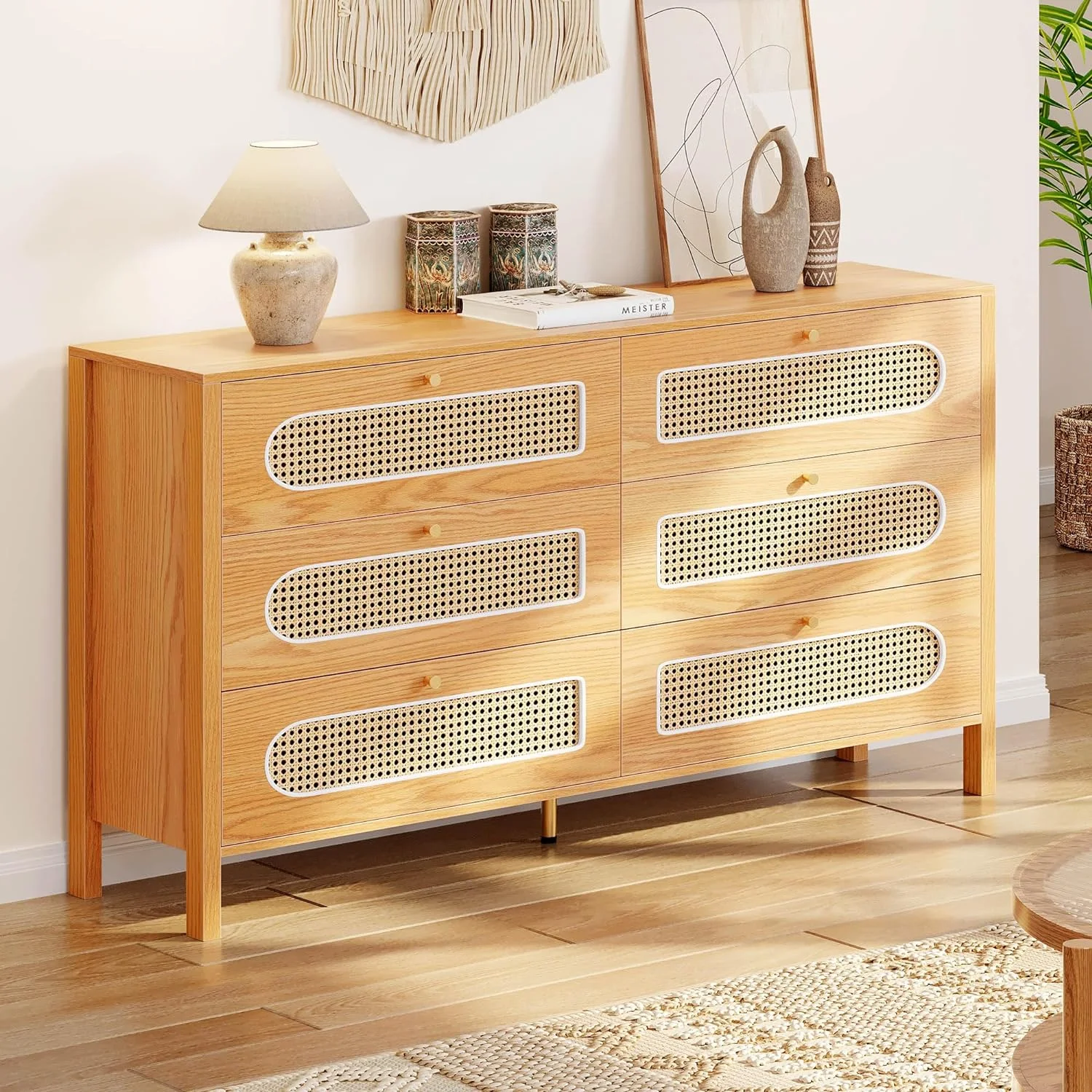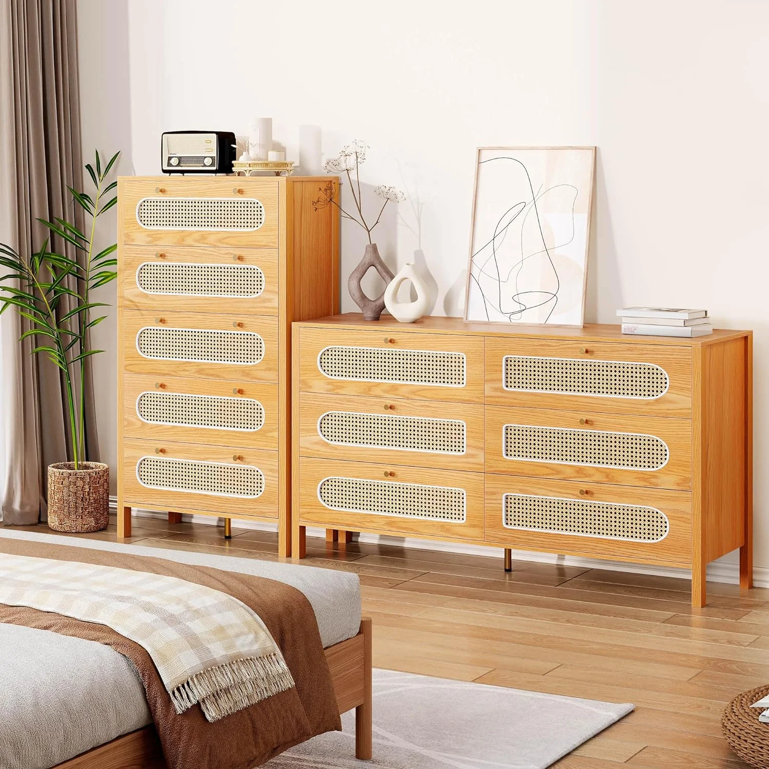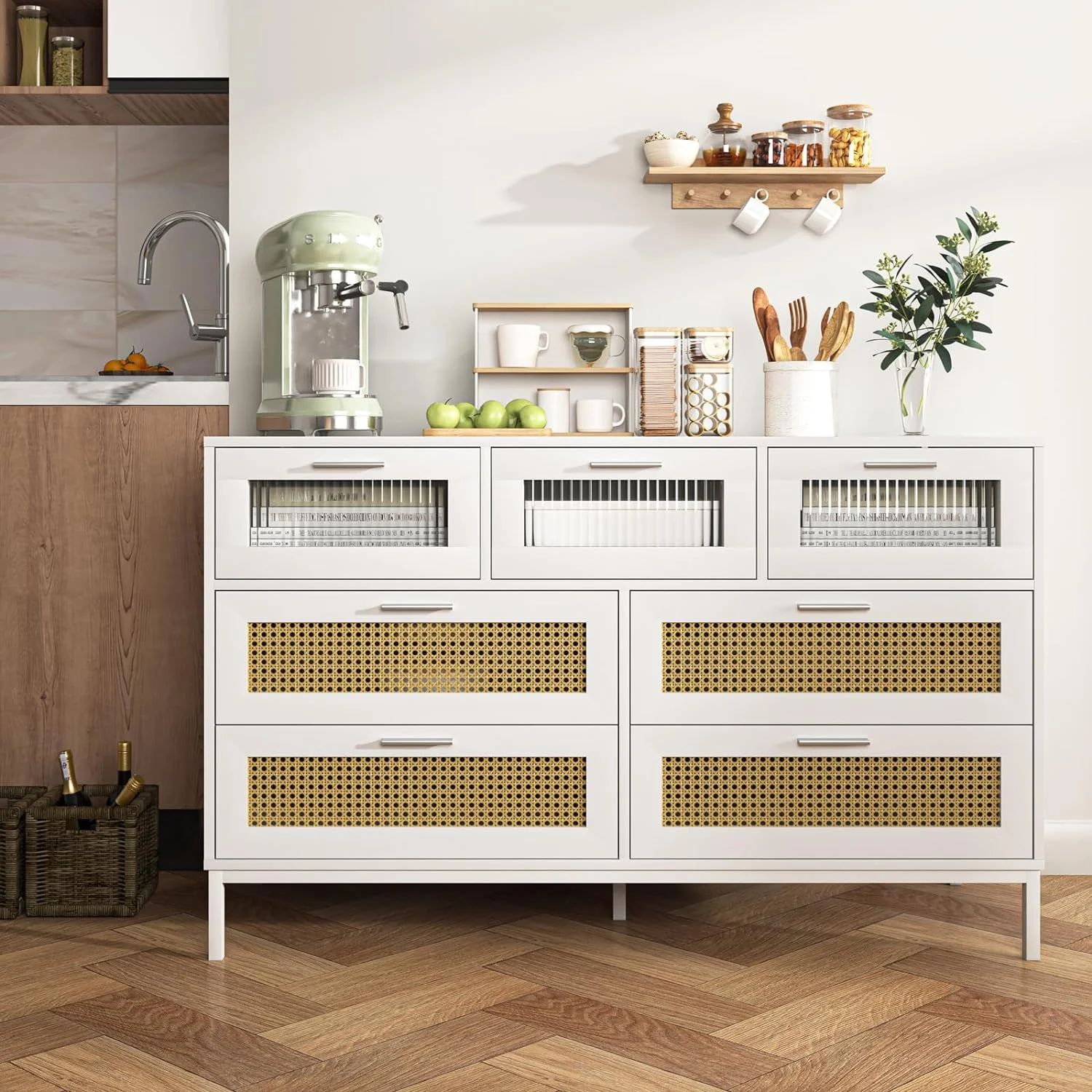 CCBIUOMBO Tall Dresser for Bedroom 7 Drawer Dresser Chest of Drawers with Bamboo Frame Brown