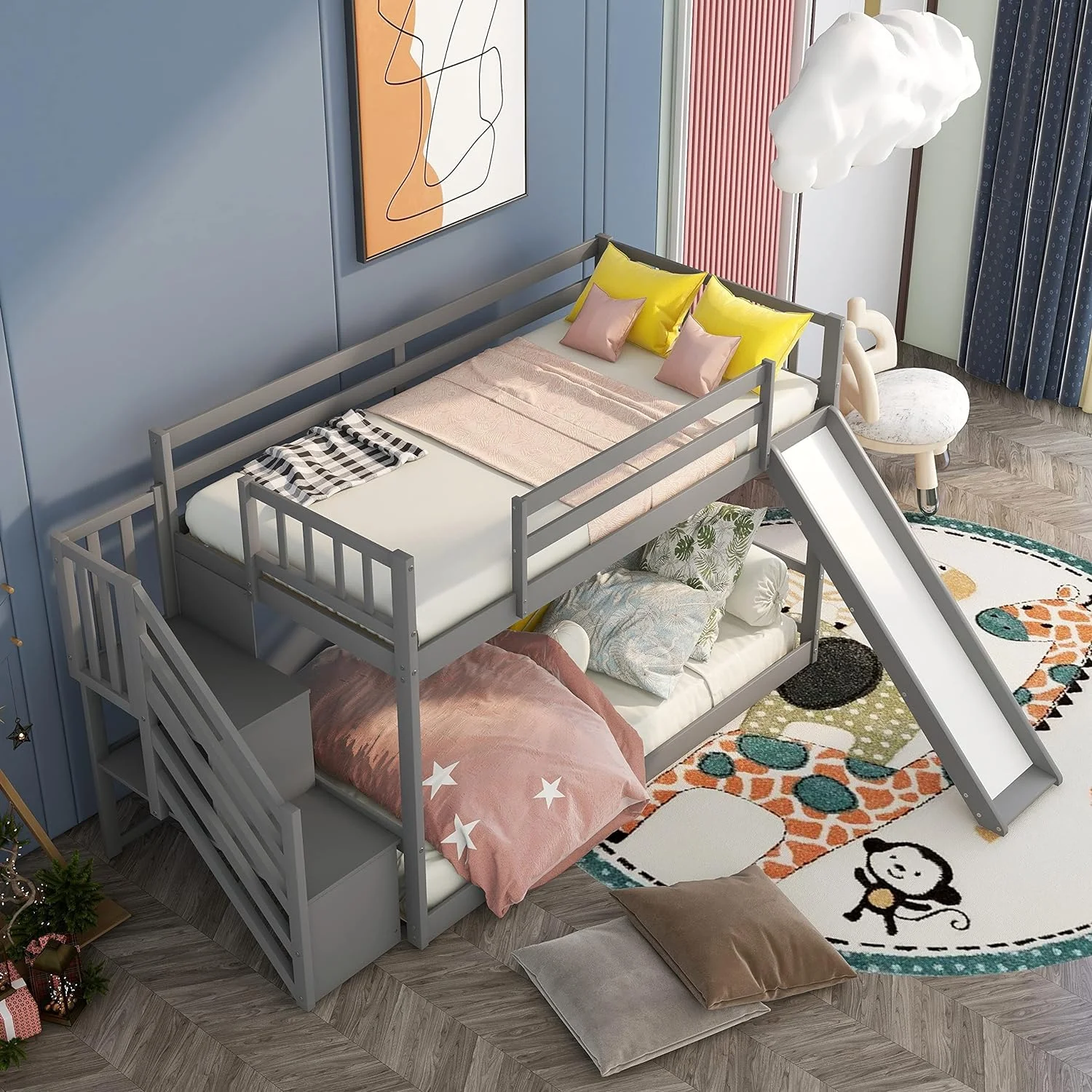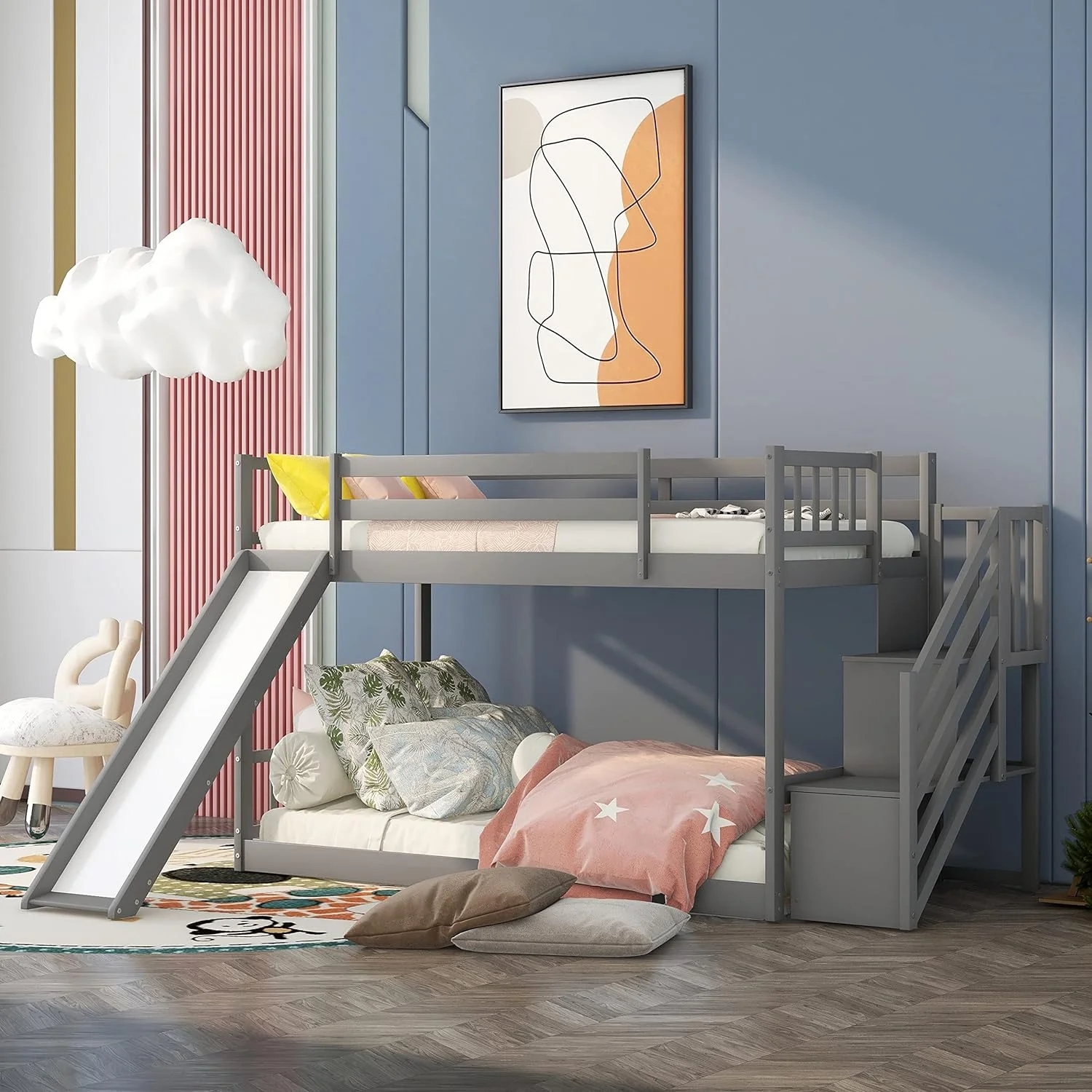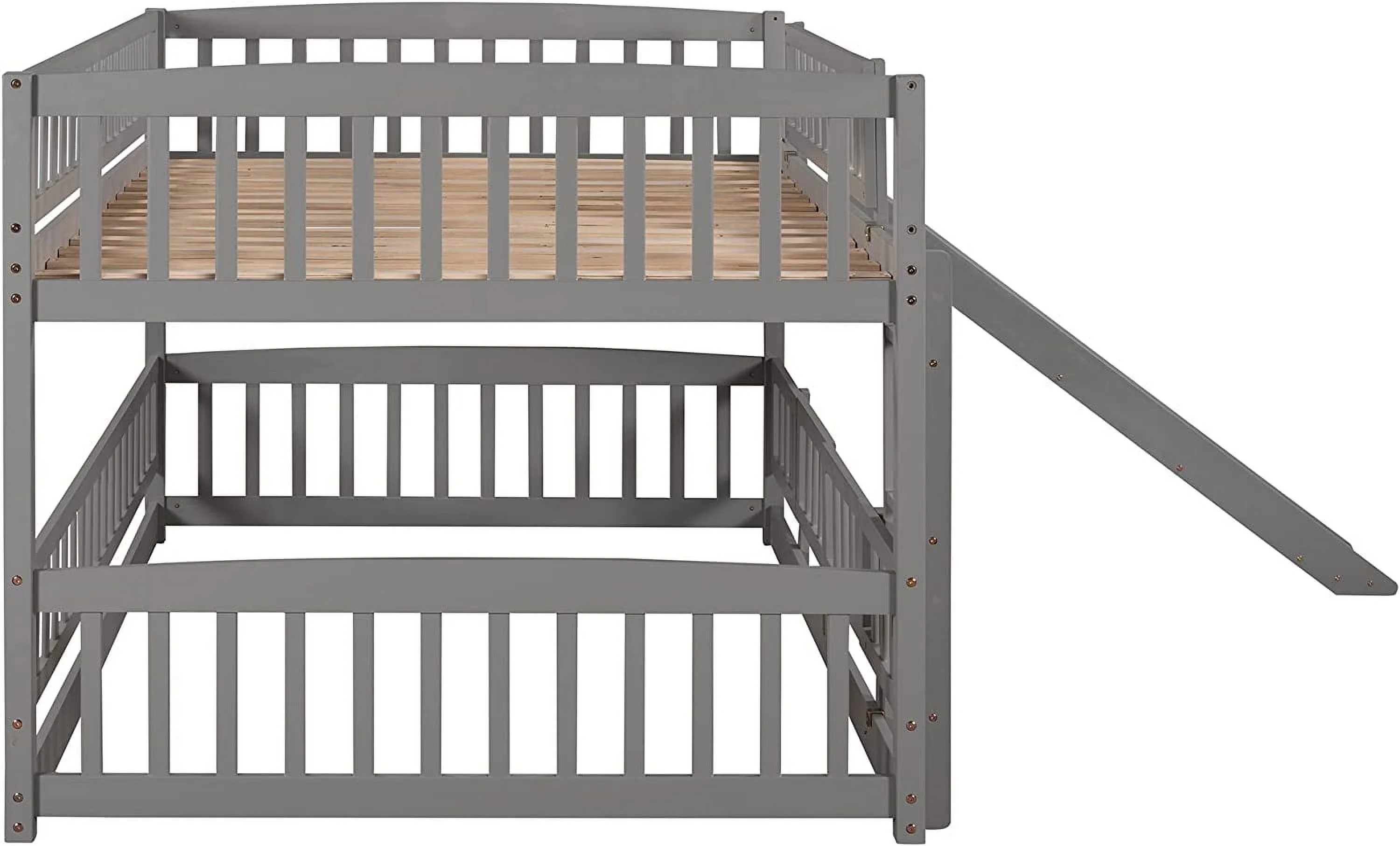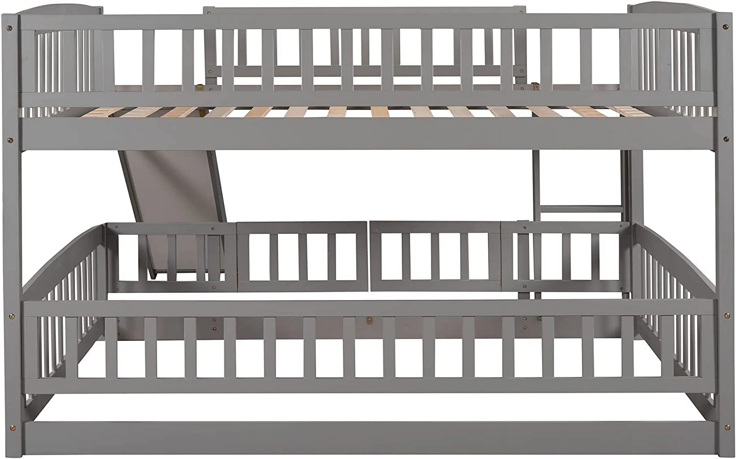 Bunk Beds With Slide For Kids, Low Profile Bunk Beds With Built-In Ladder, No Box Spring Needed