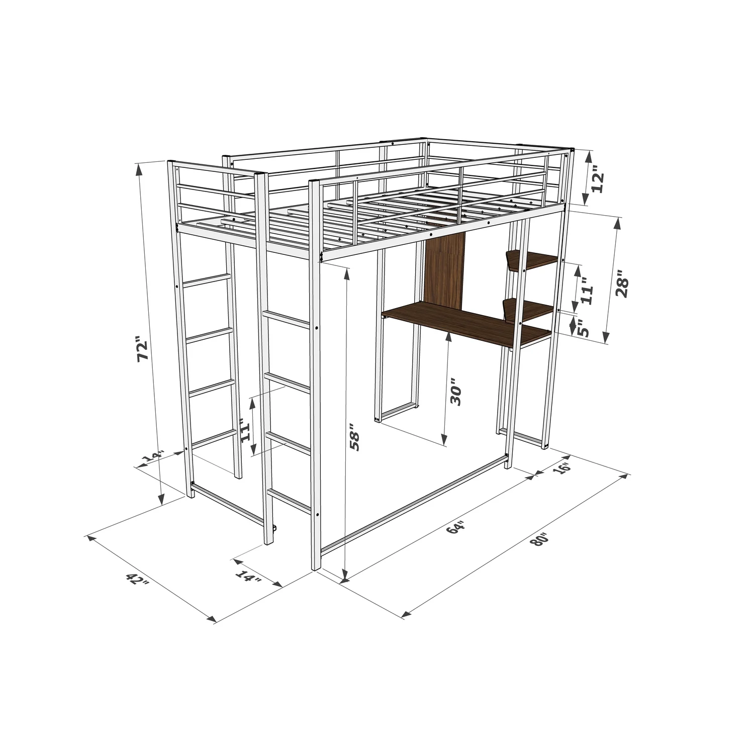 East West Furniture Buckland 42" Metal Twin Loft Bed in Powder Coating White