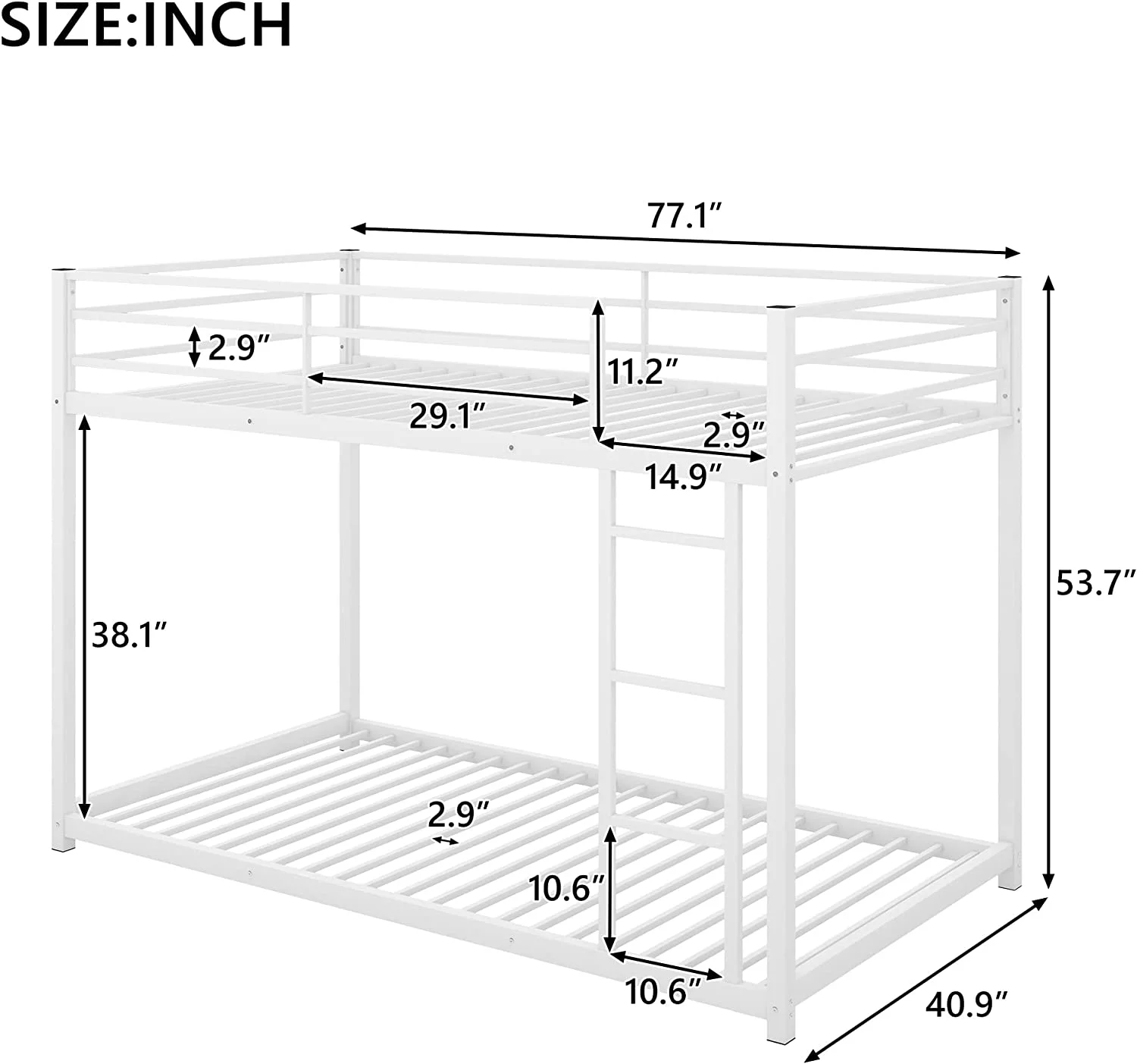 Metal Bunk Beds For Kids,Full Over Full Bunk Beds Low Profile, No Box Spring Needed