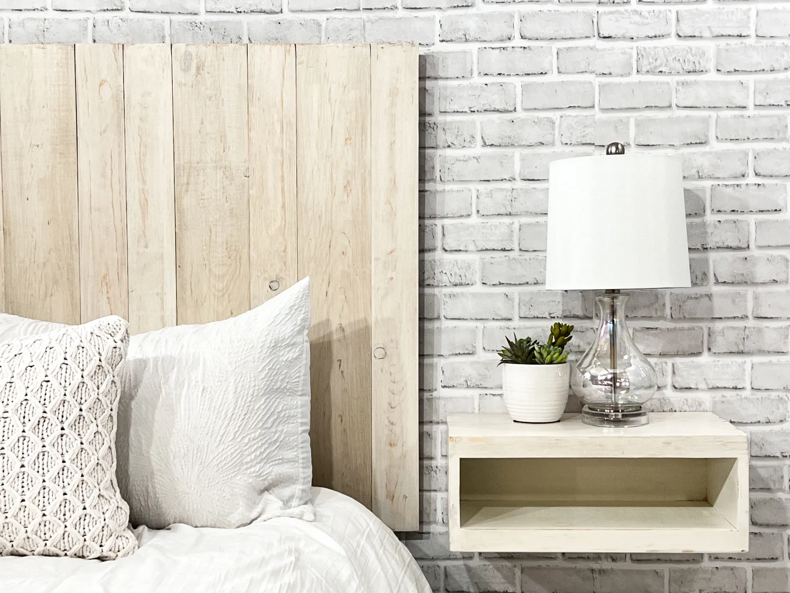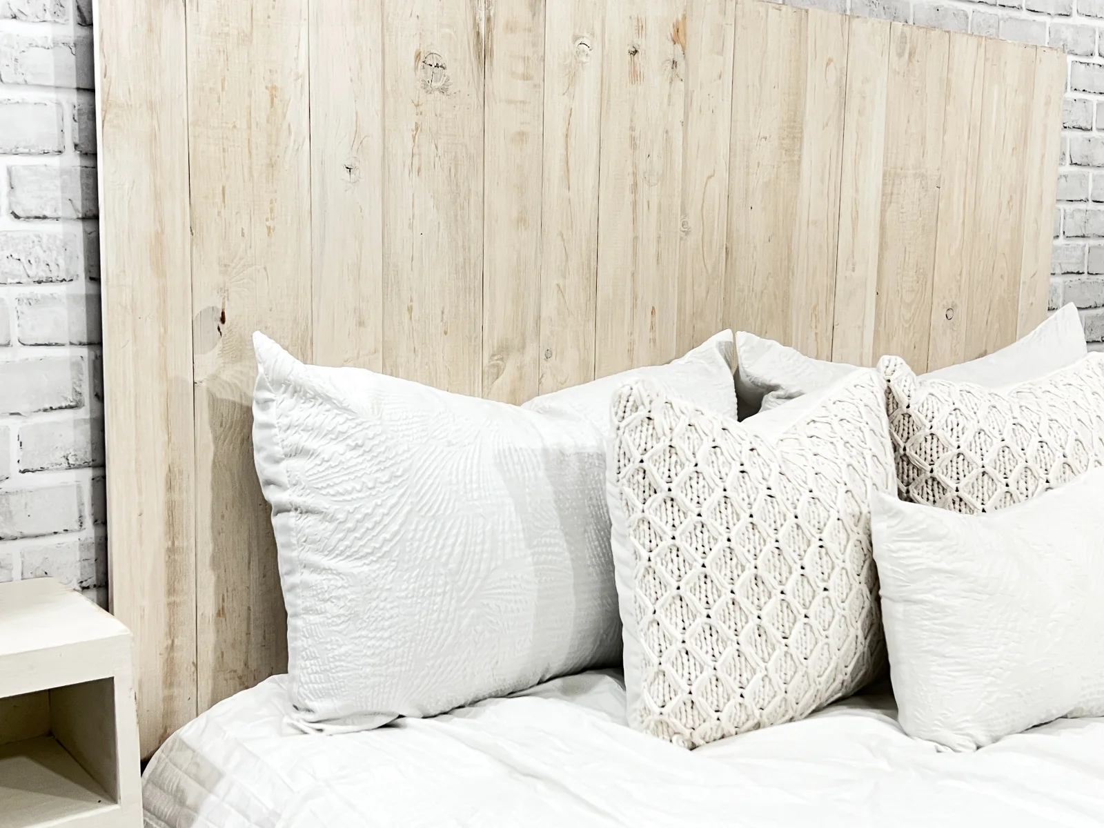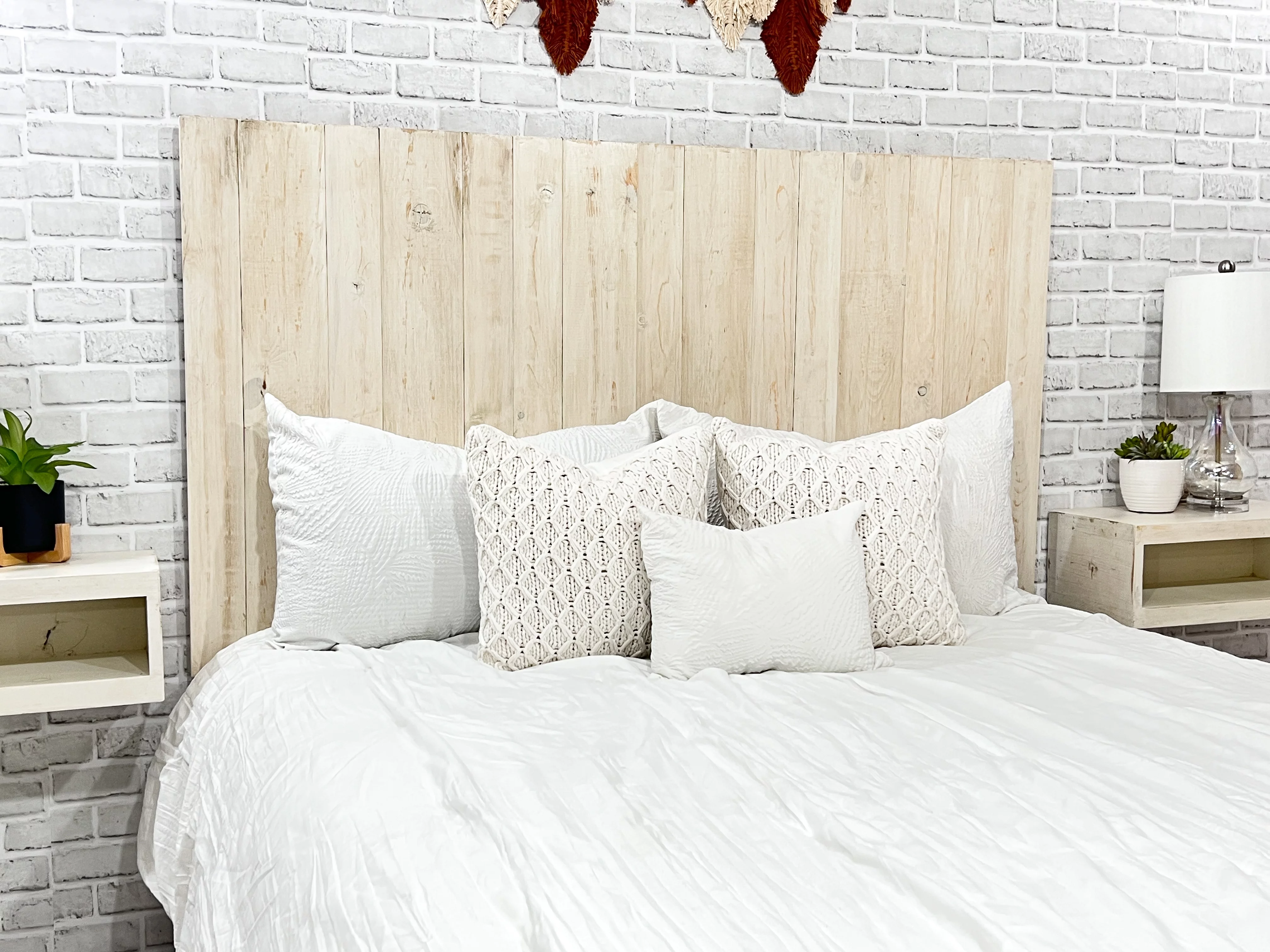 Barn Walls Antique White Headboard, Floating Wood Panels, Wall Mount, Adjustable Height, Queen