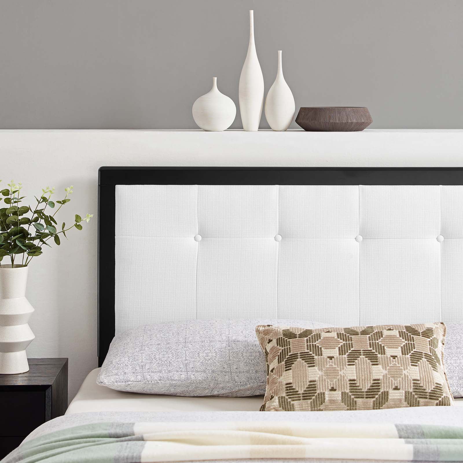 Tufted Headboard, Queen Size, Wood, Fabric, Black White, Modern Contemporary Urban Design, Bedroom Master Guest Suite