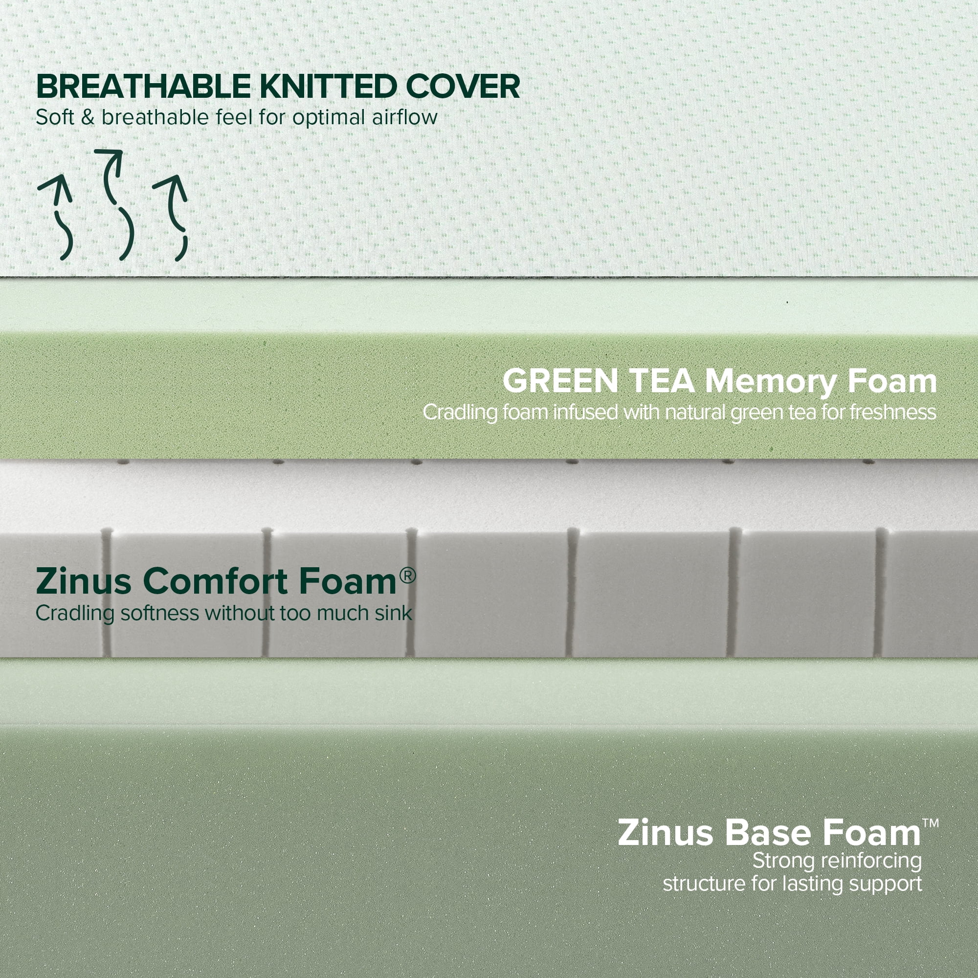 Zinus Spa Sensations 12" Green Tea Rest Well Memory Foam Mattress, Adult, California King