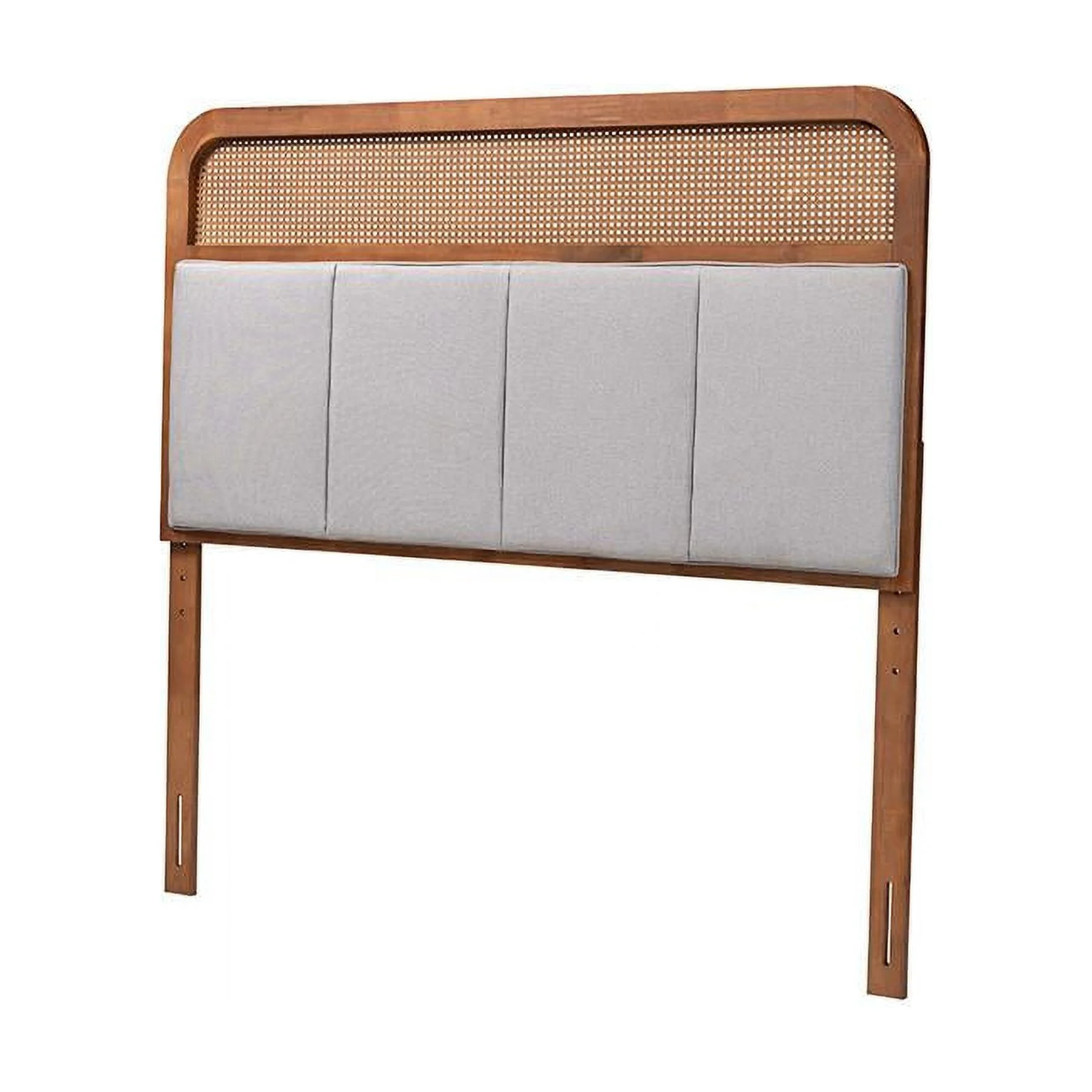 Baxton Studio Esti Gray Fabric and Walnut Wood Queen Size Headboard with Rattan