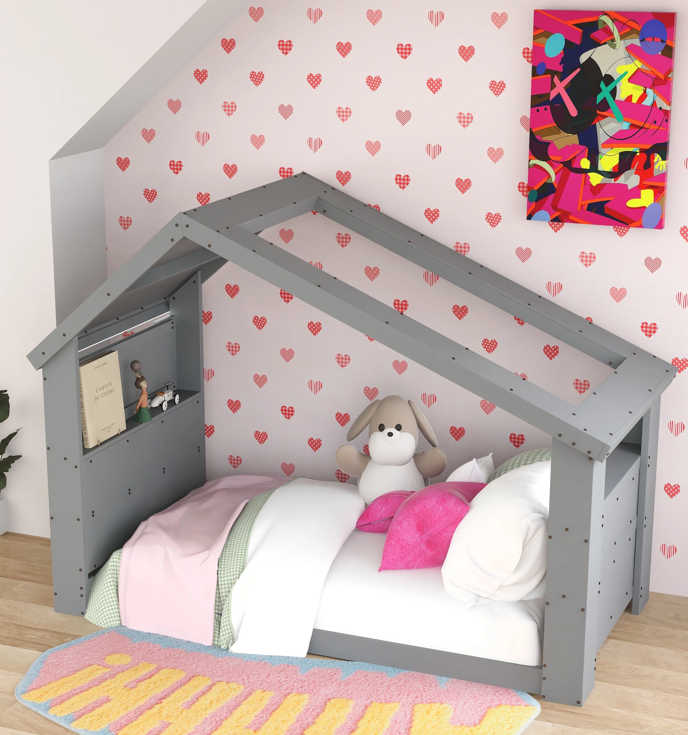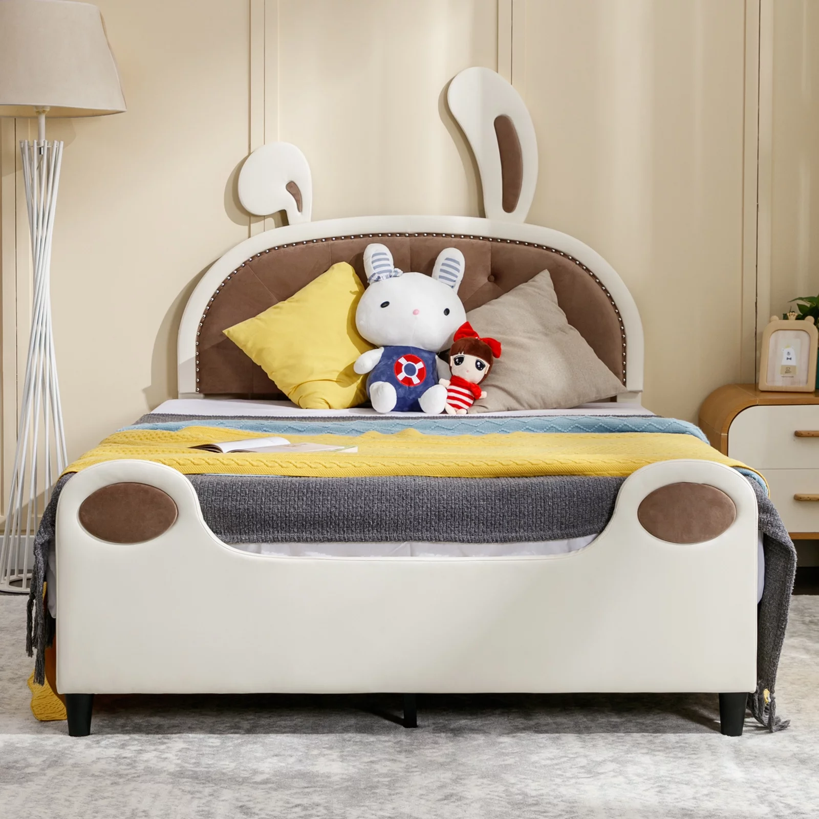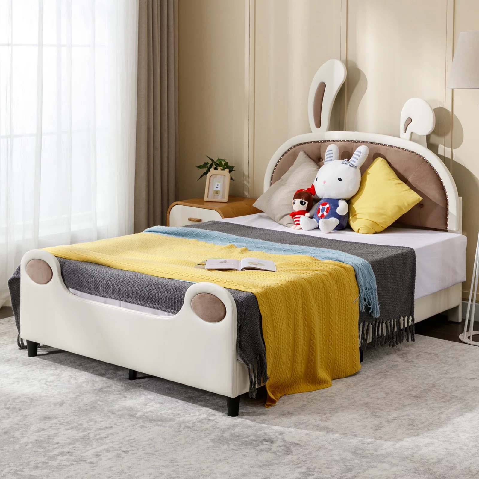 Churanty Full size Princess Bed with Unicorn Shape Headboard,PU Leather Pink Full Platform Bed Frame for Kids Bedroom