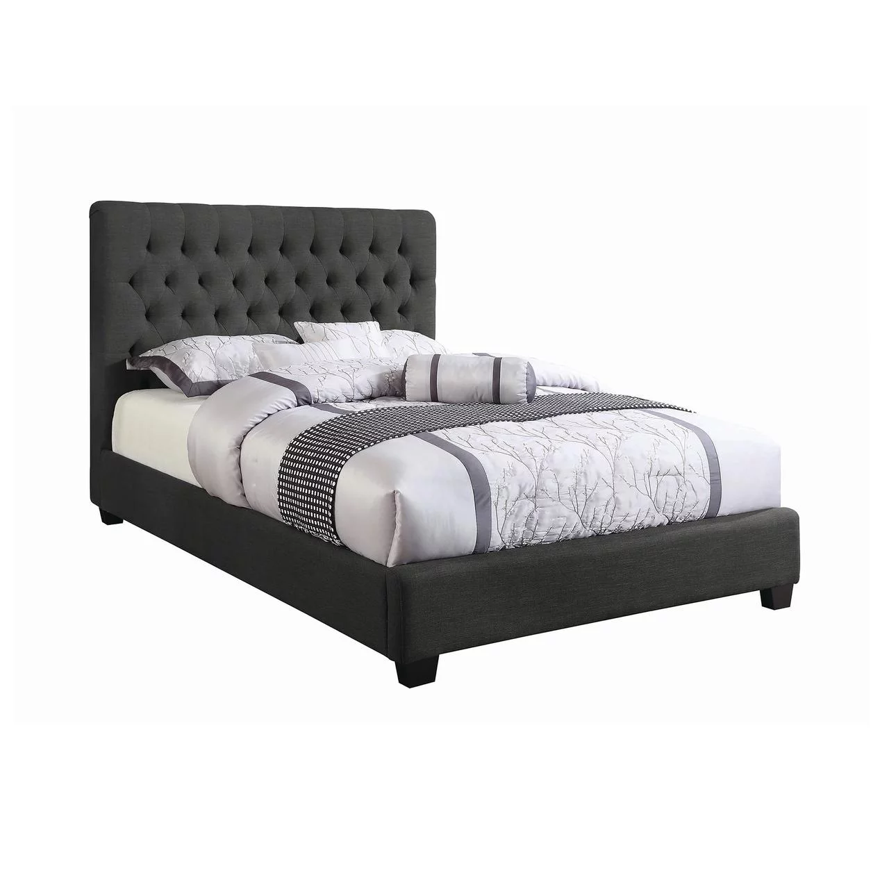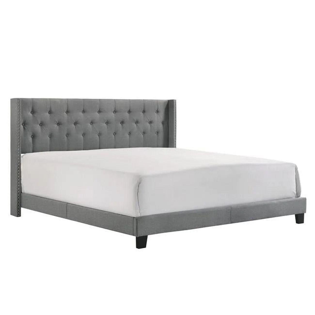 Button Tufted Headboard Nailhead Trim & Lih Modern Wingback Bed, Gray & Black - King Size