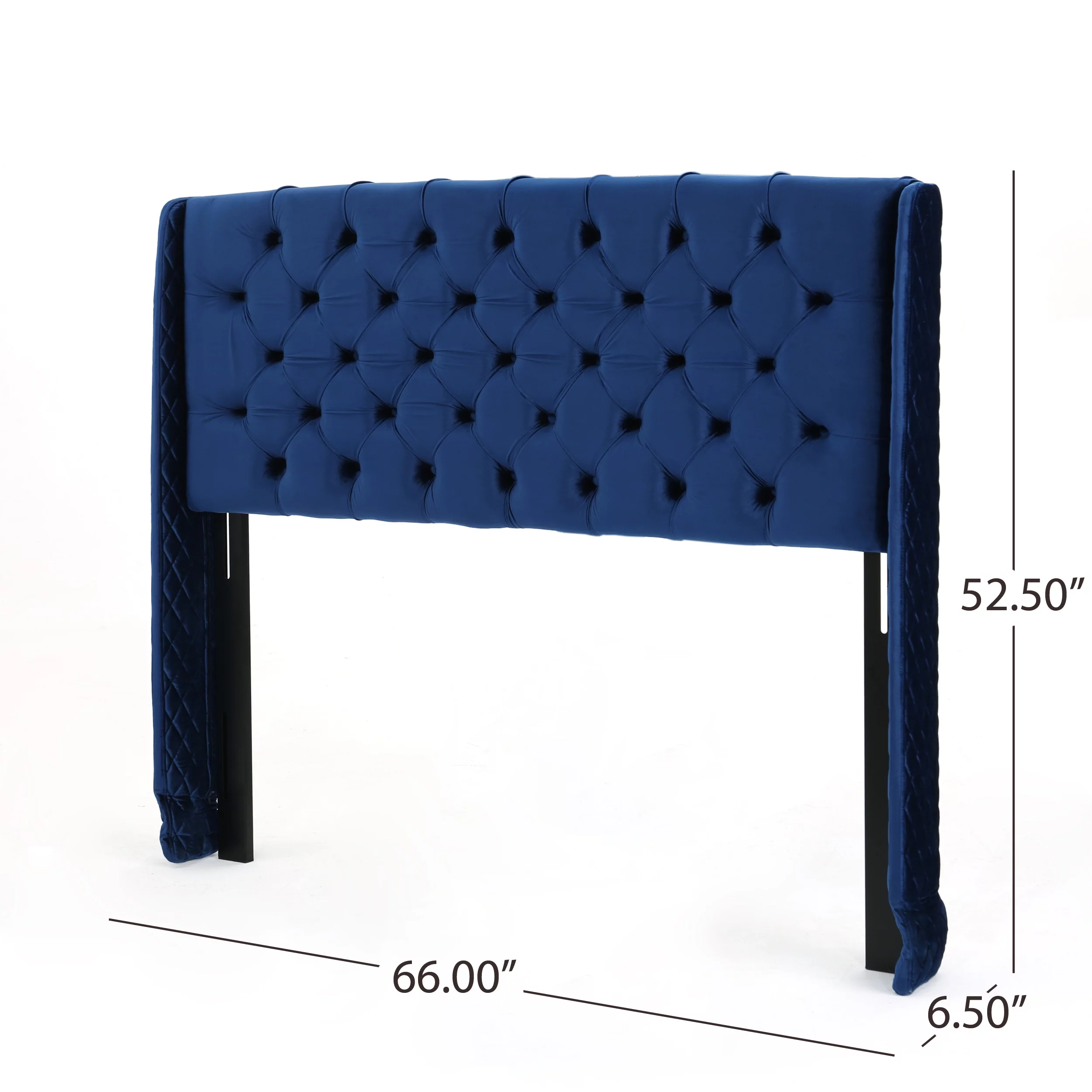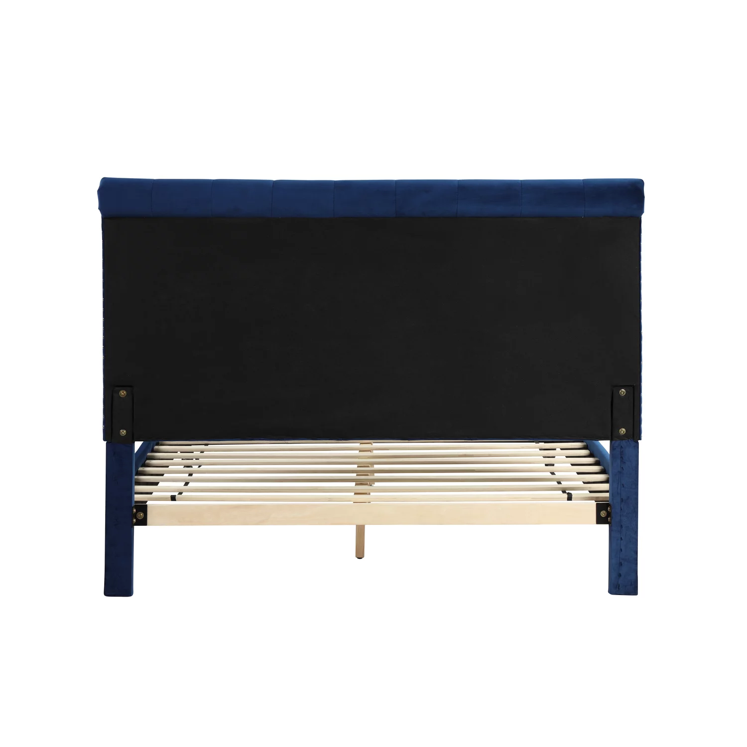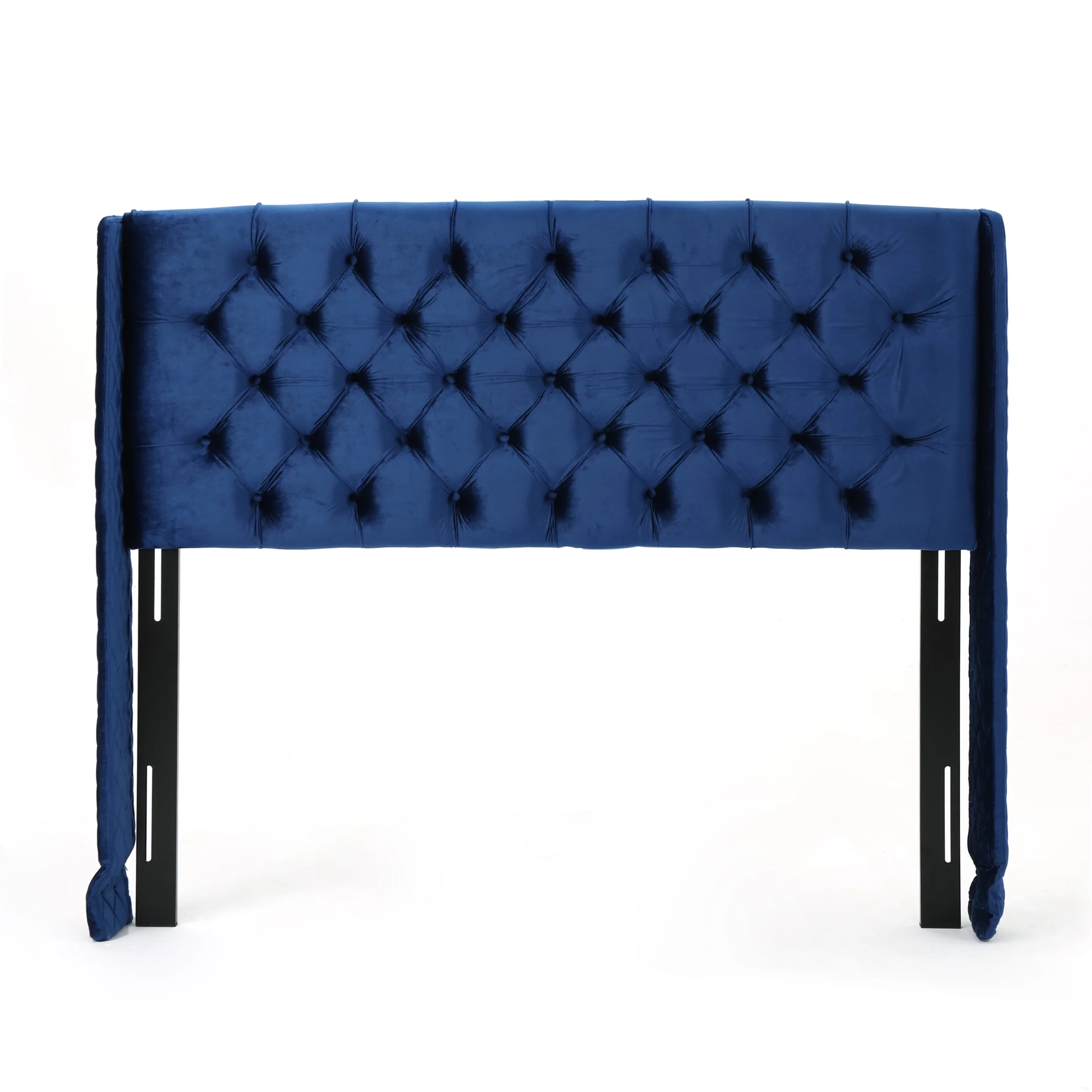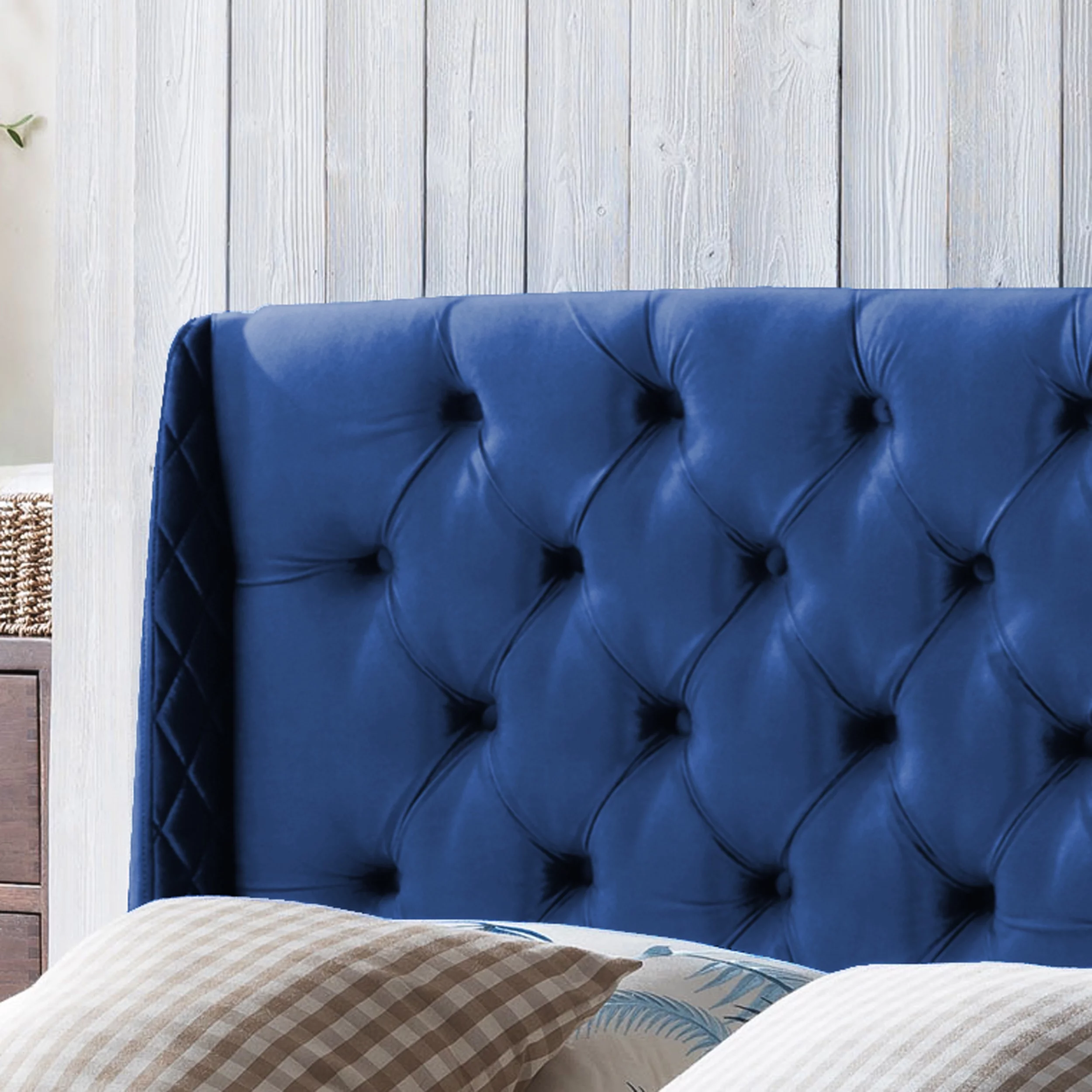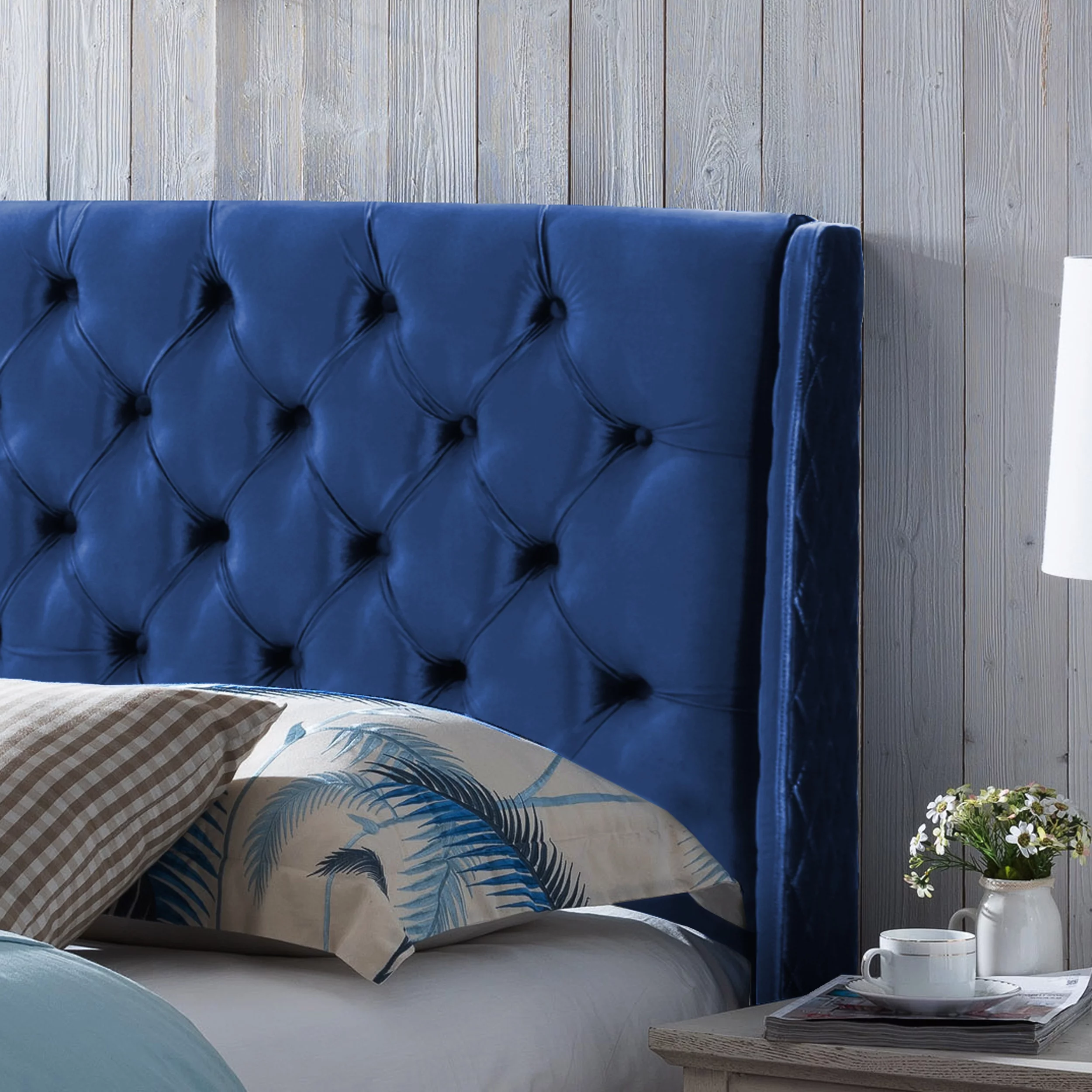 Velvet Upholstery Tufted Headboard Giya Wingback Queen Size Bed, Pacific Blue & Nickel