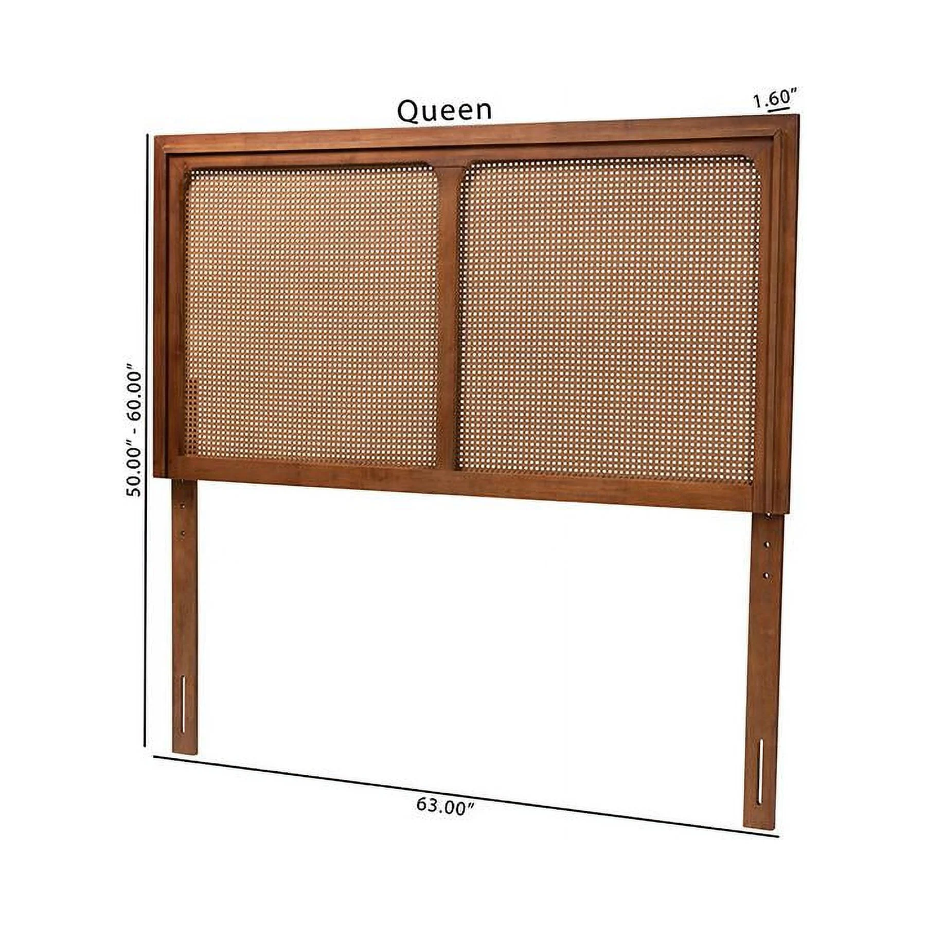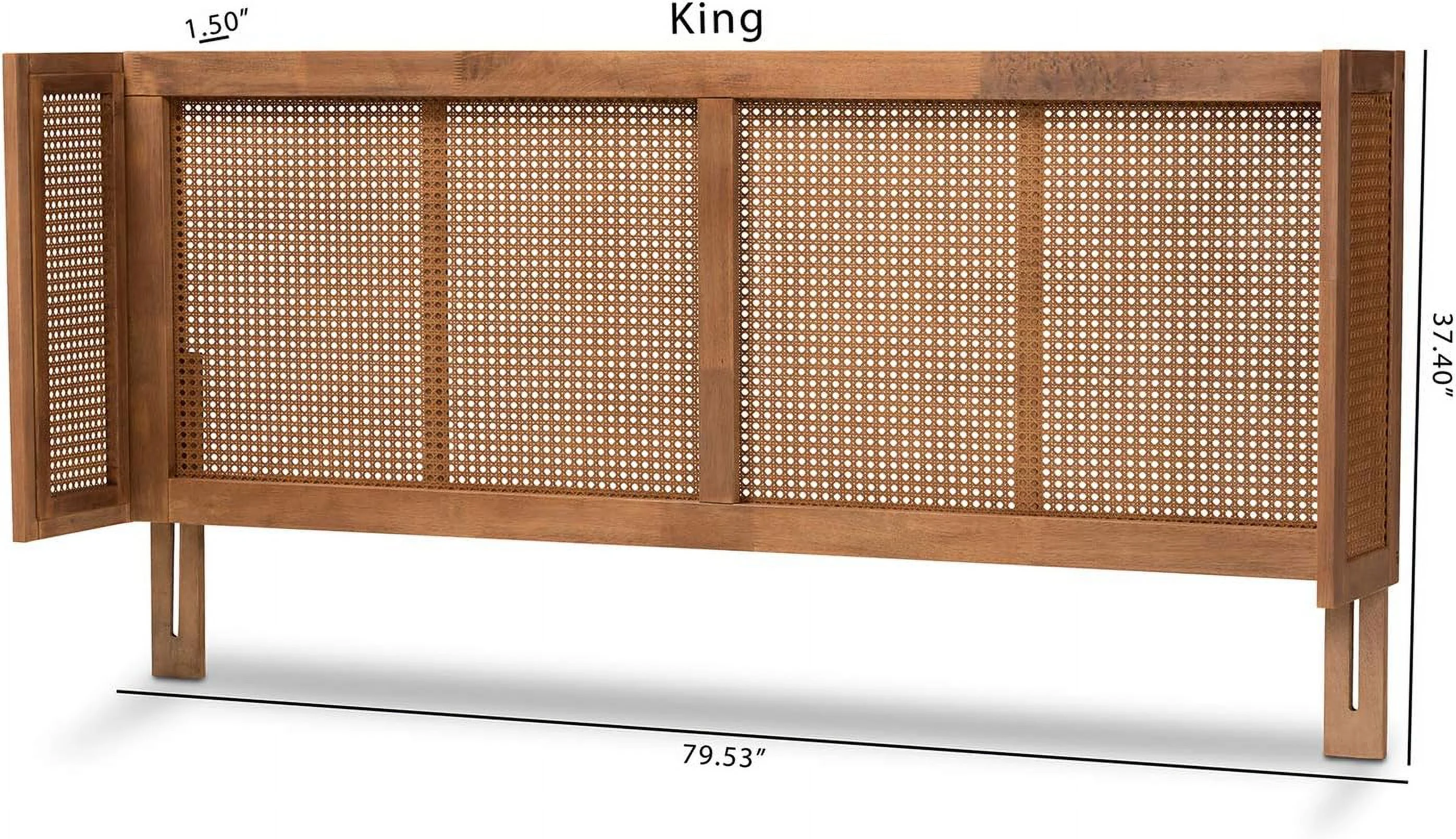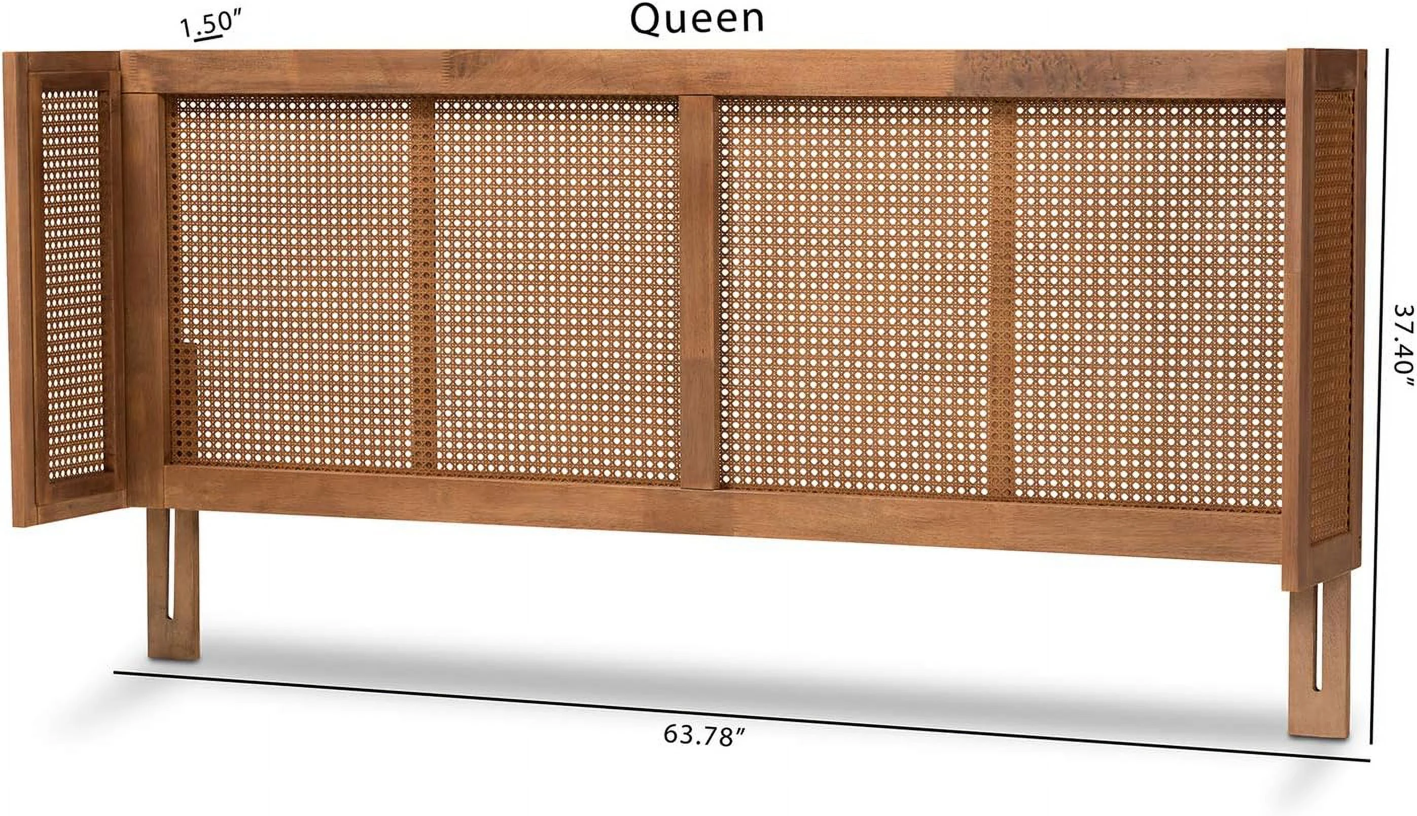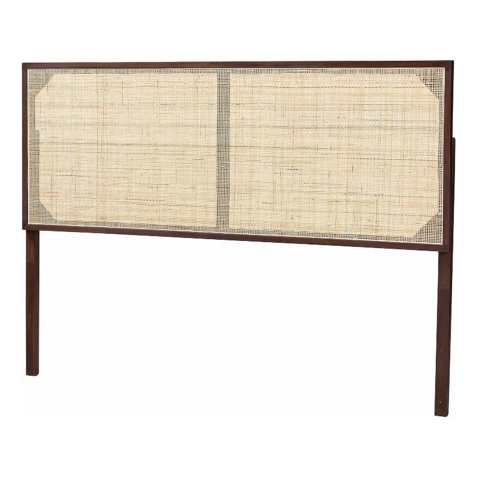 Baxton Studio Prewitt Wood & Rattan Queen Size Headboard in Ash Walnut