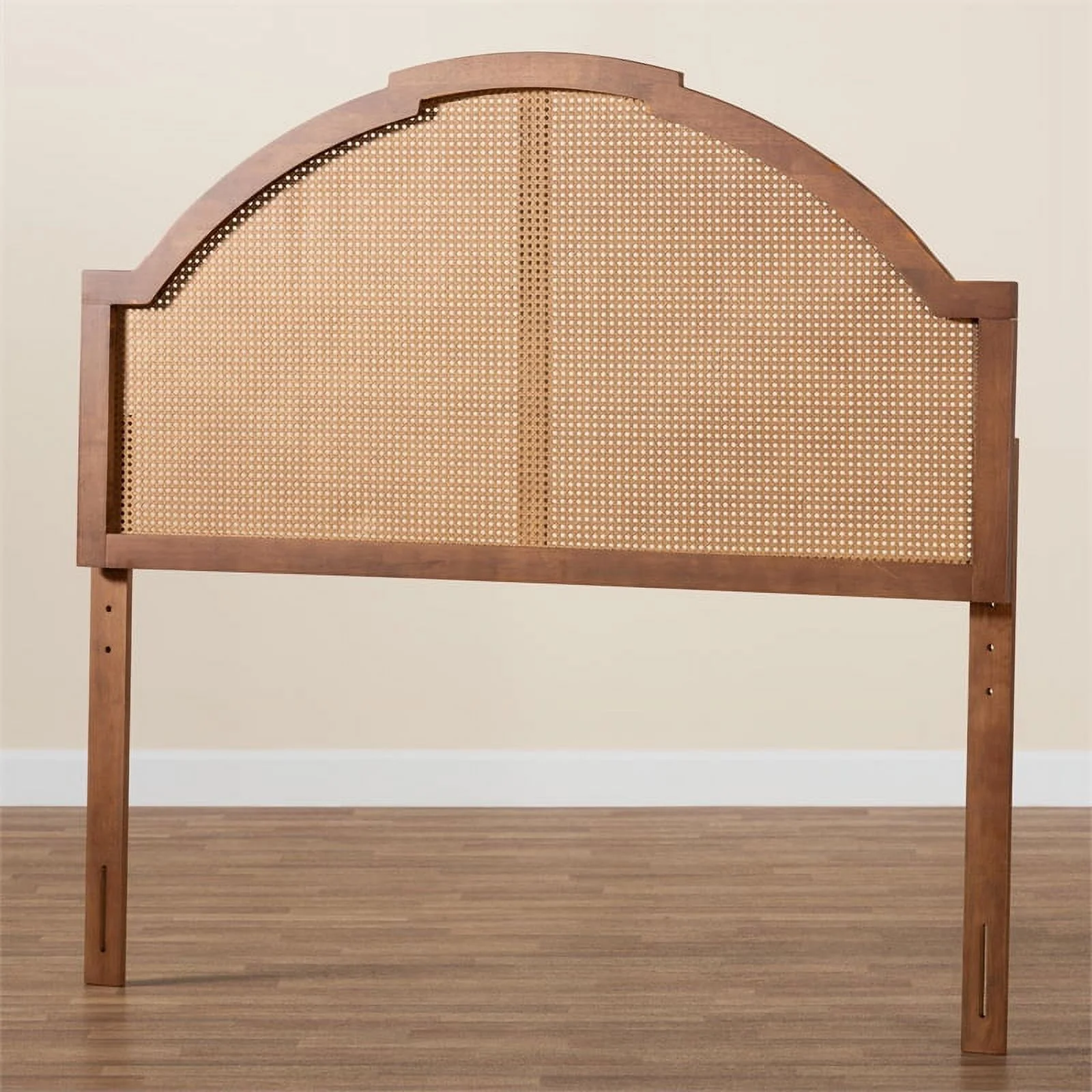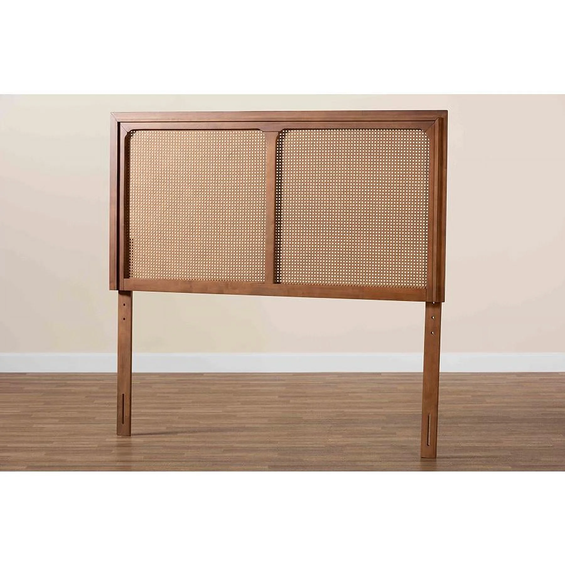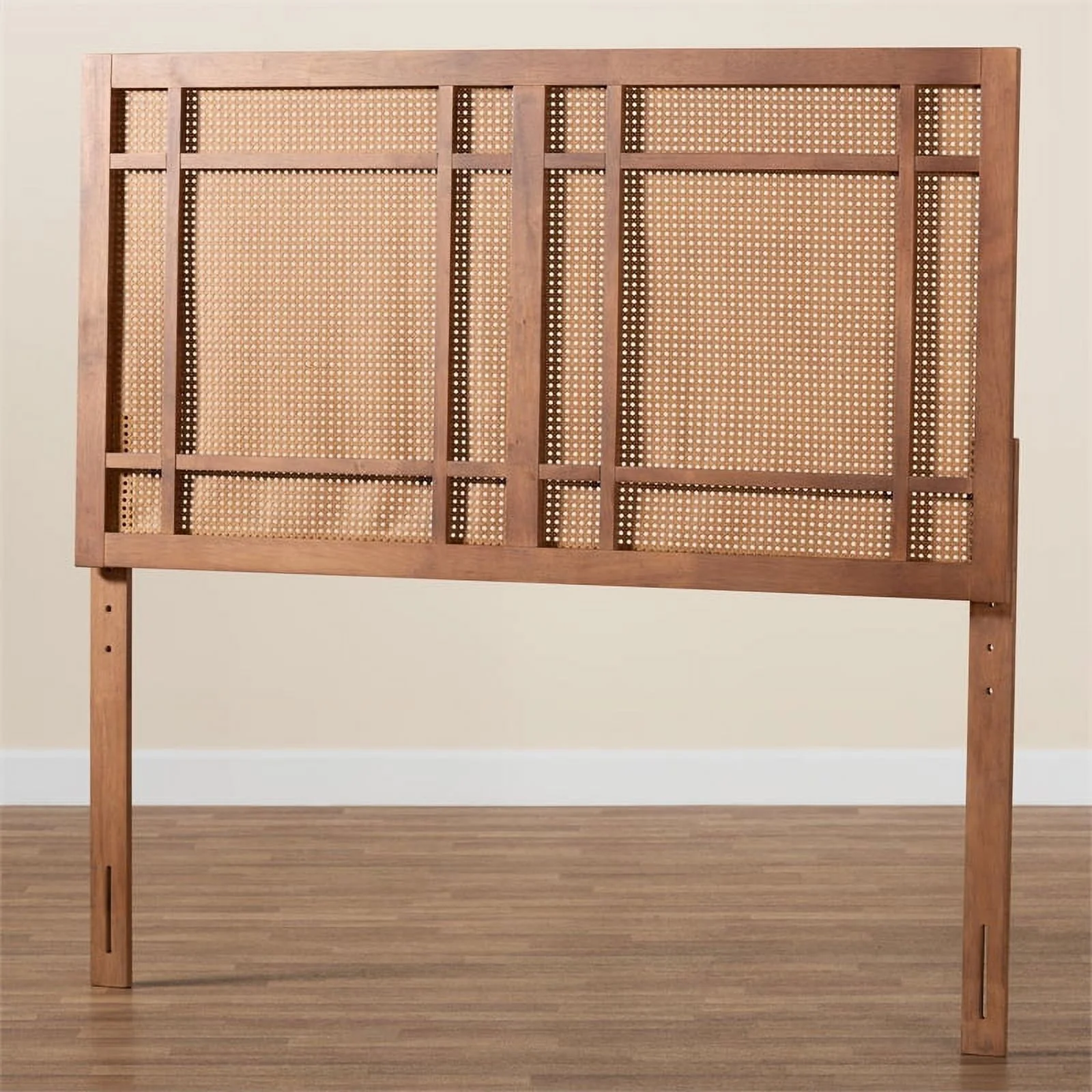 Baxton Studio Prewitt Wood & Rattan Queen Size Headboard in Ash Walnut
