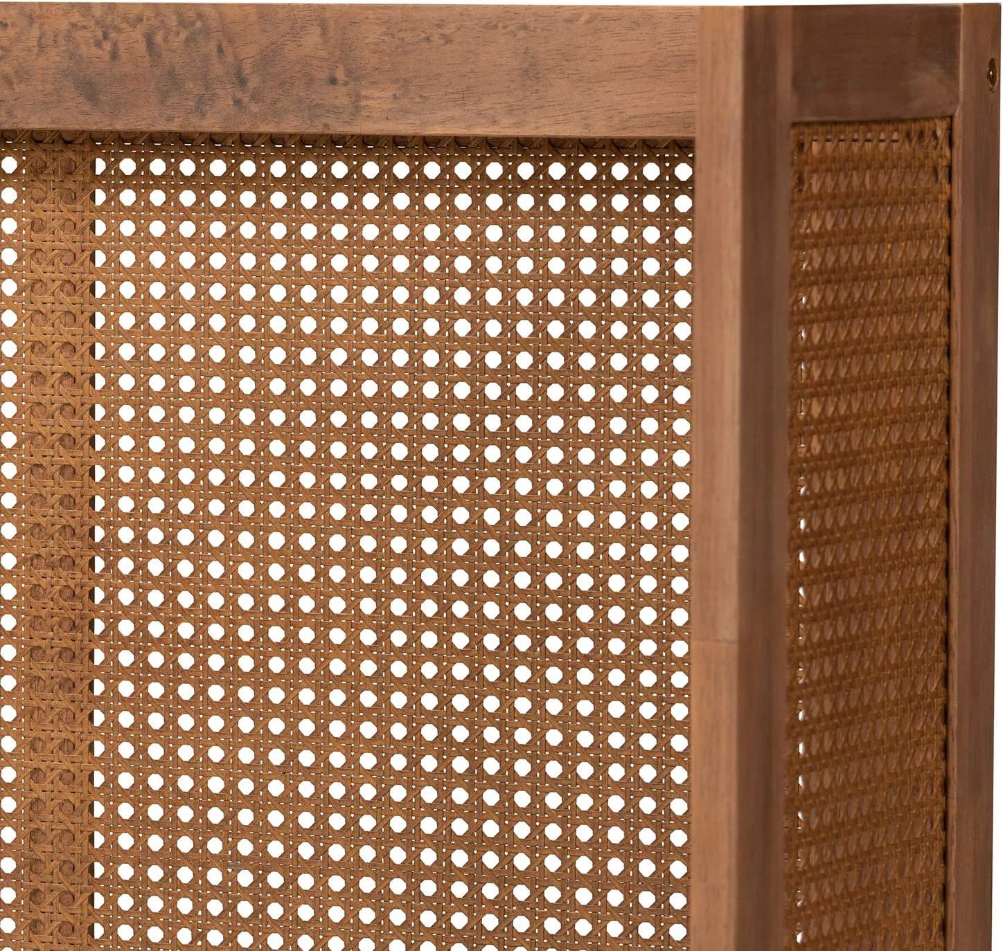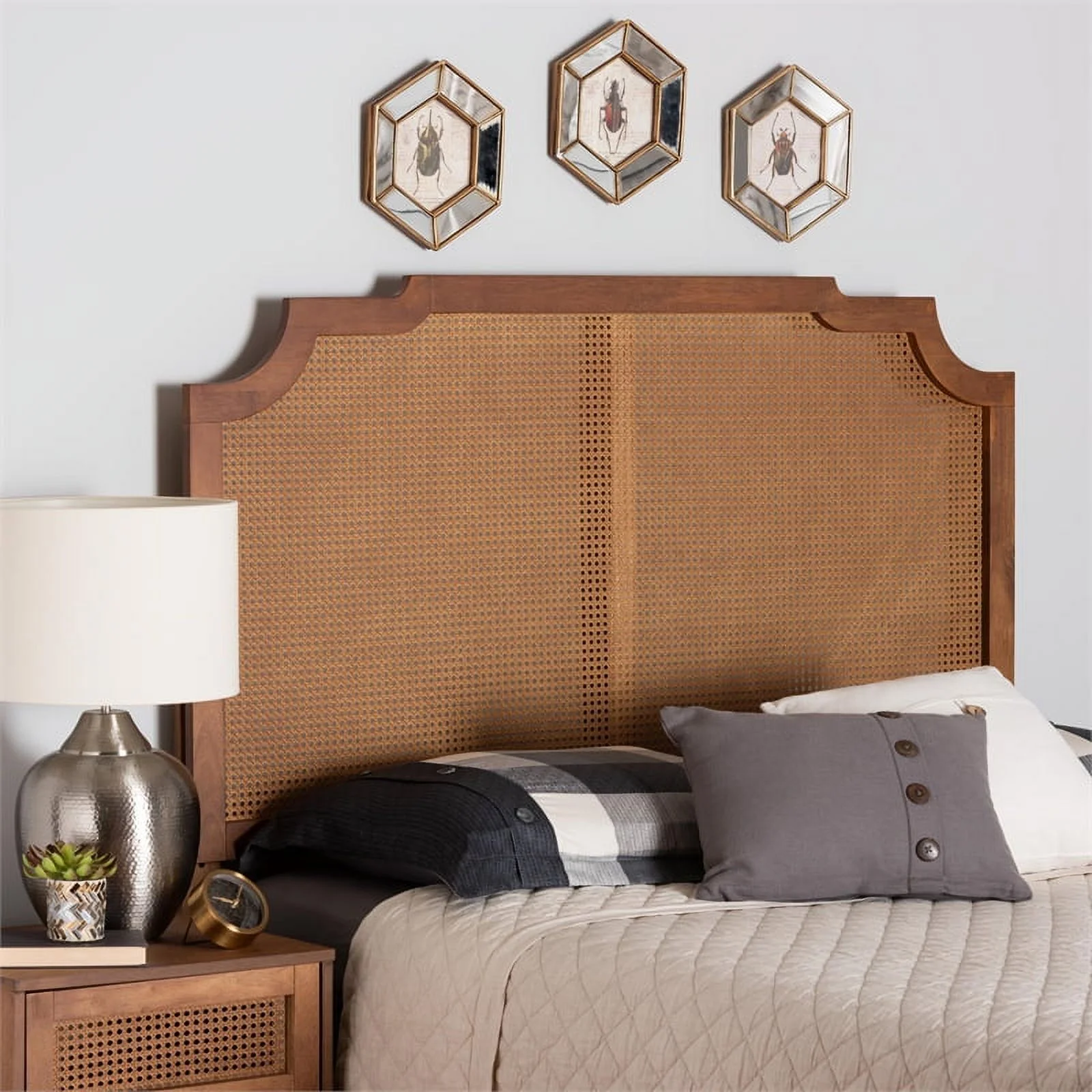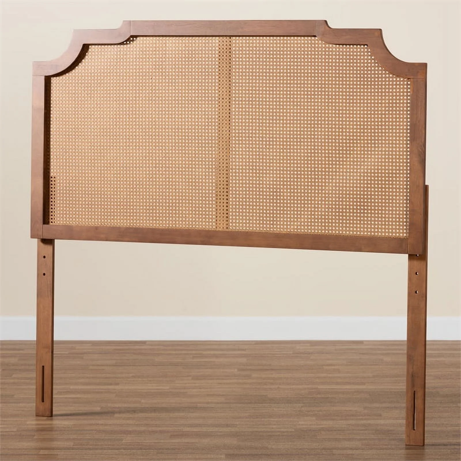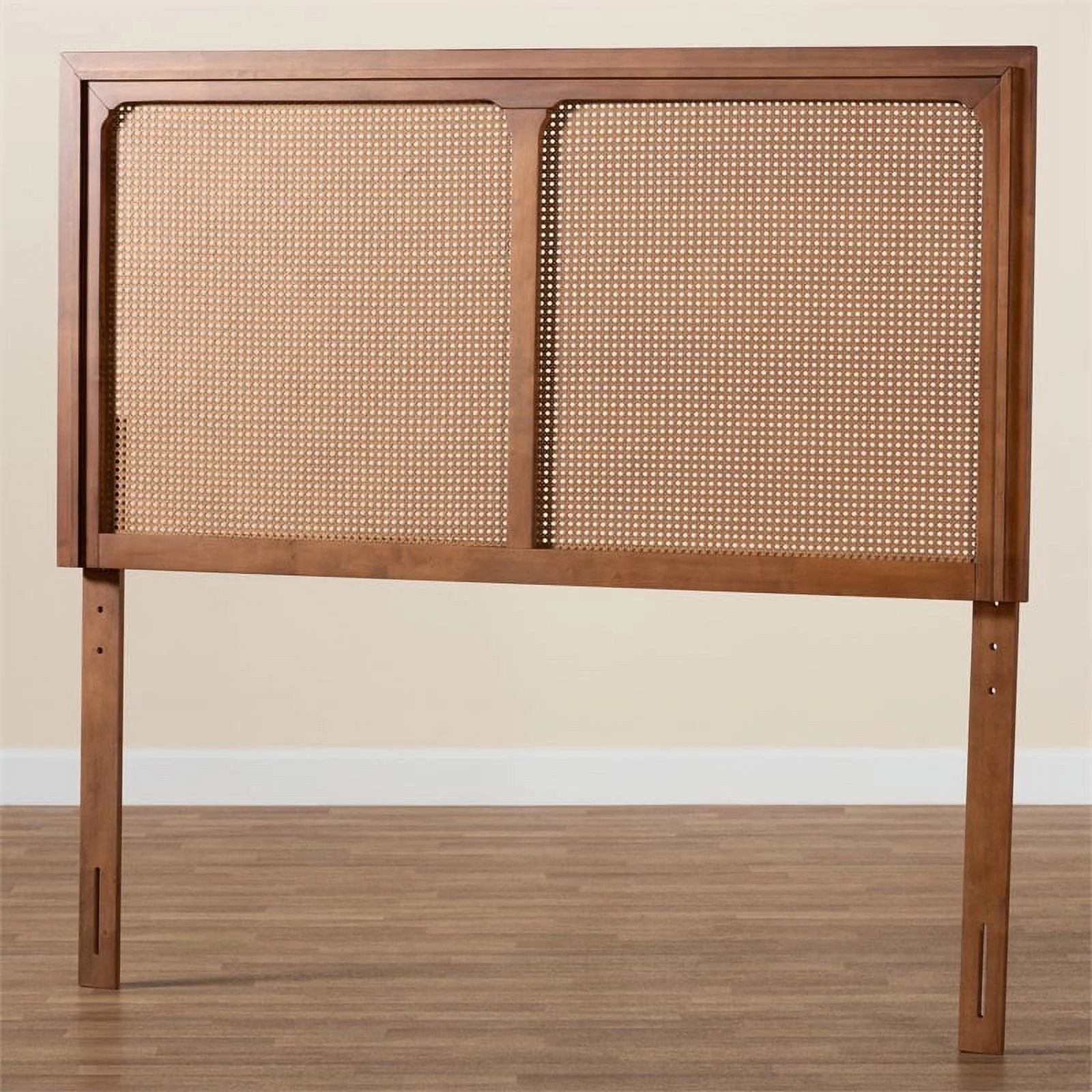 Baxton Studio Prewitt Wood & Rattan Queen Size Headboard in Ash Walnut