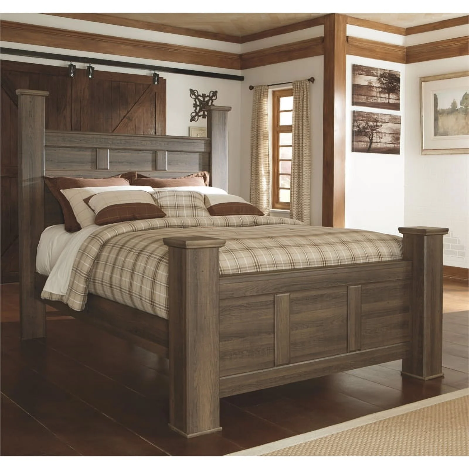 Pemberly Row Ash Walnut Finished Wood Queen Size Headboard with Rattan