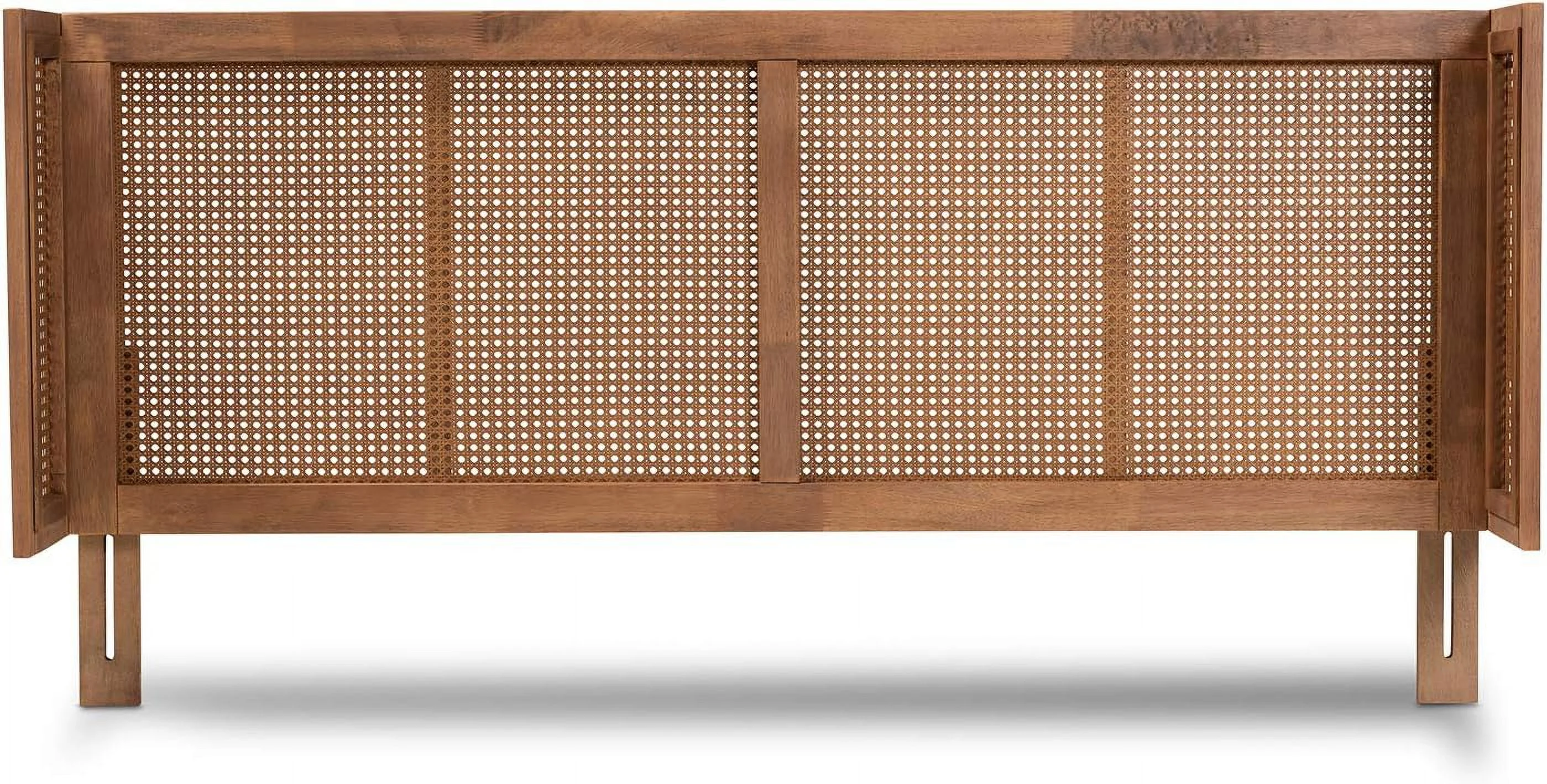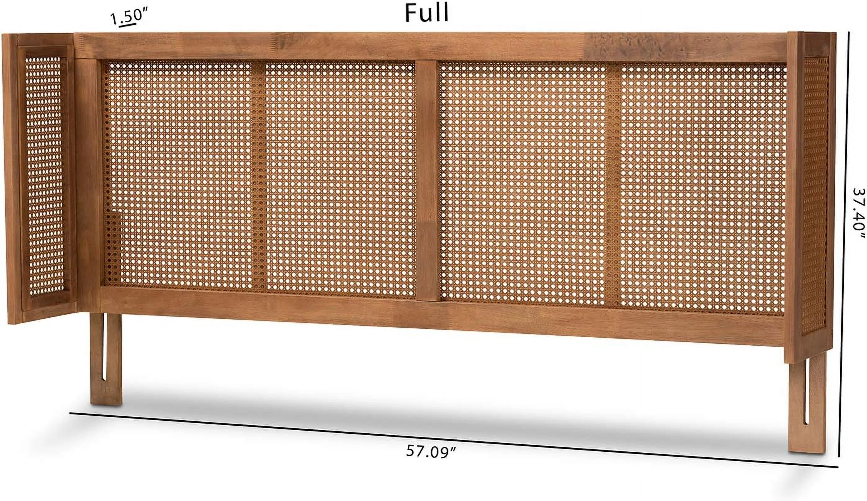 Rina -Century Modern Wanut Finished Wood And Synthetic Rattan Full Size Wrap-Around Headboard