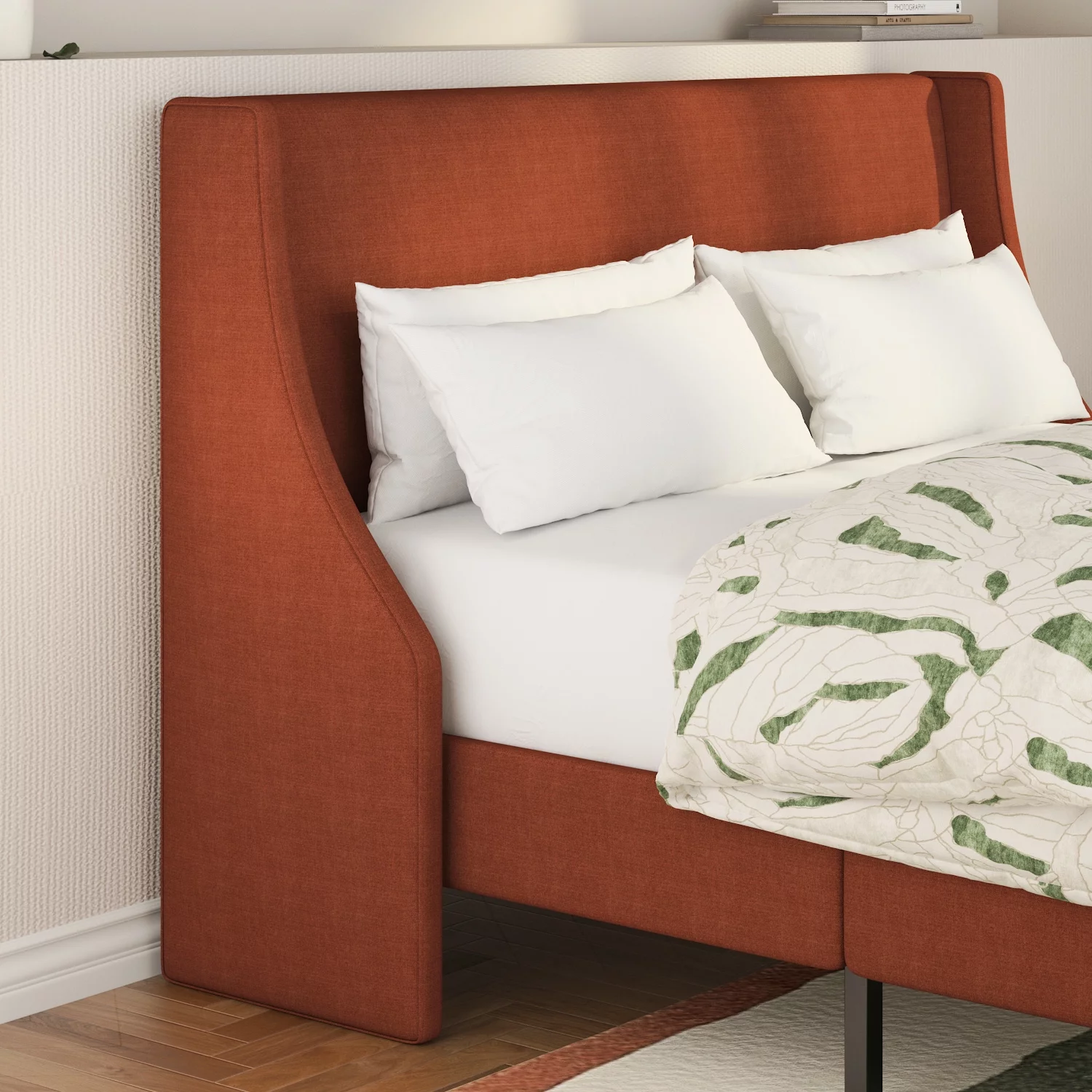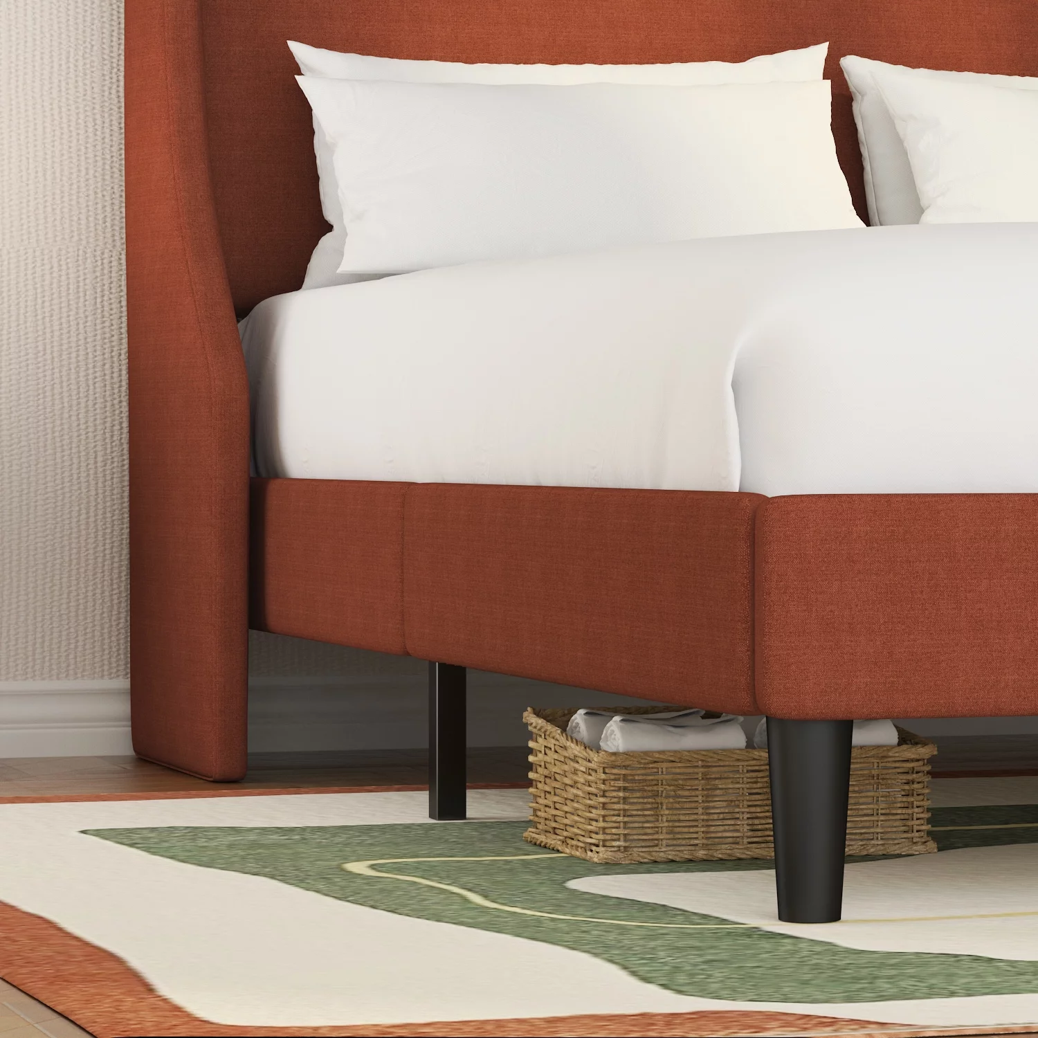 SHA CERLIN Queen Size Upholstered Platform Bed Frame with Wingback Headboard, Burnt Orange, Adults
