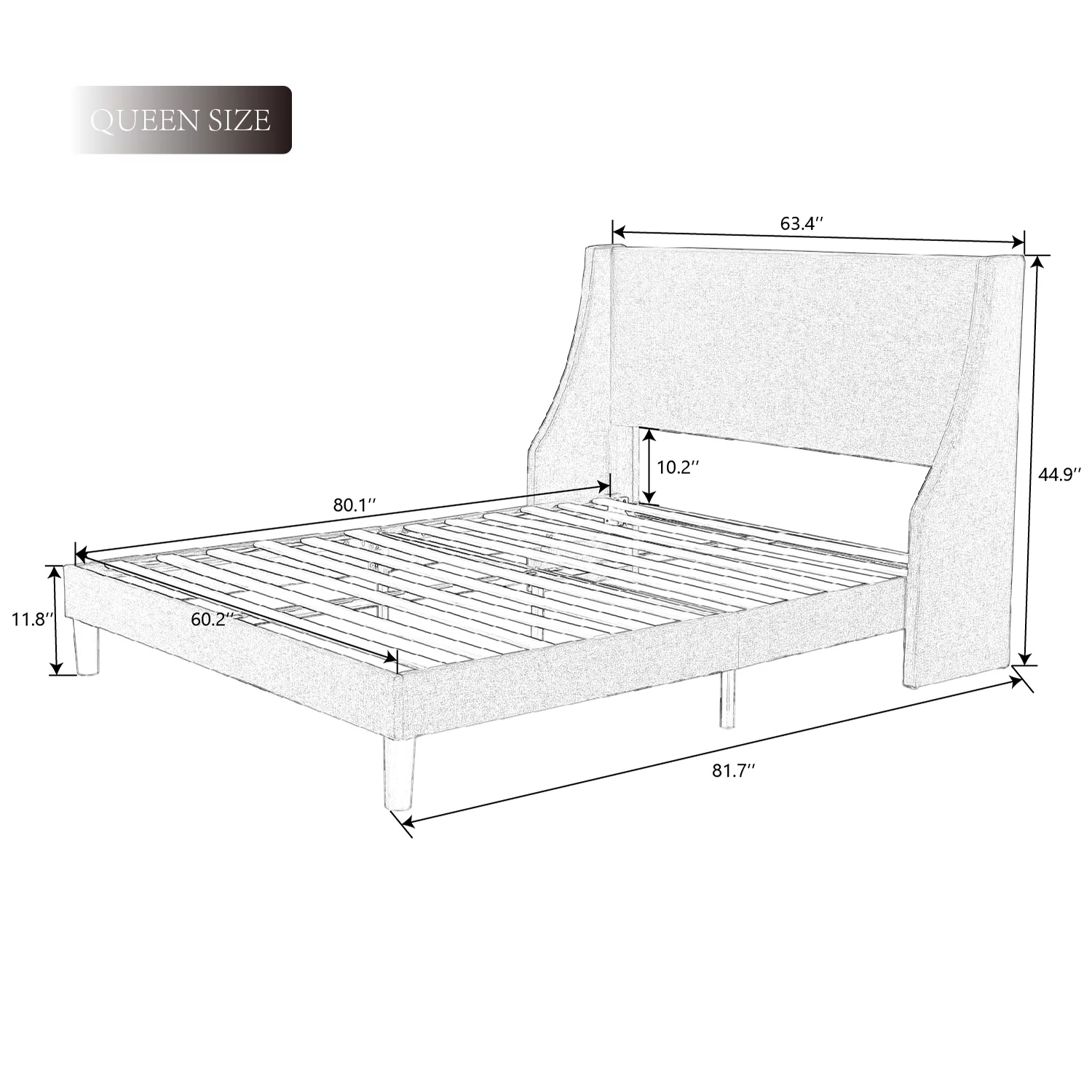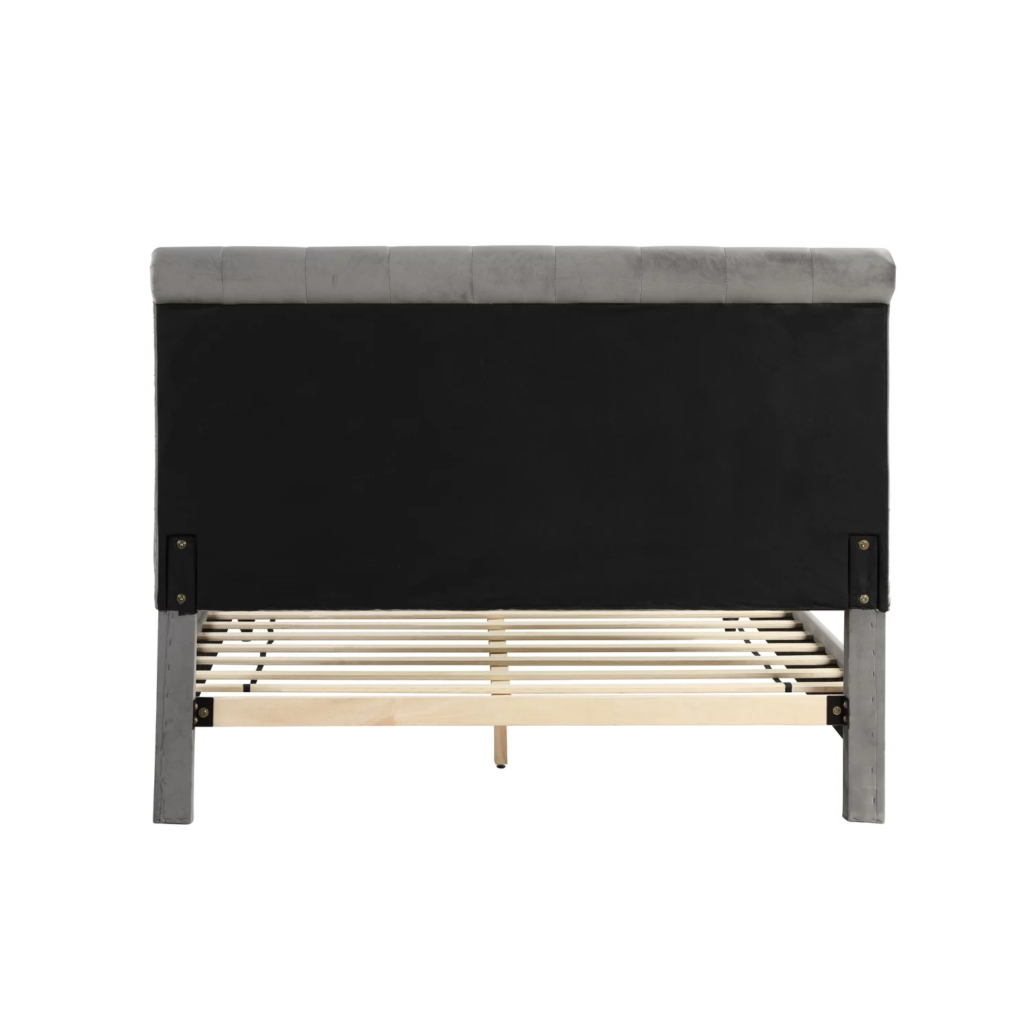 Velvet Upholstery Tufted Headboard Giya Wingback Queen Size Bed, Chrome, Nailed Gray & Nickel