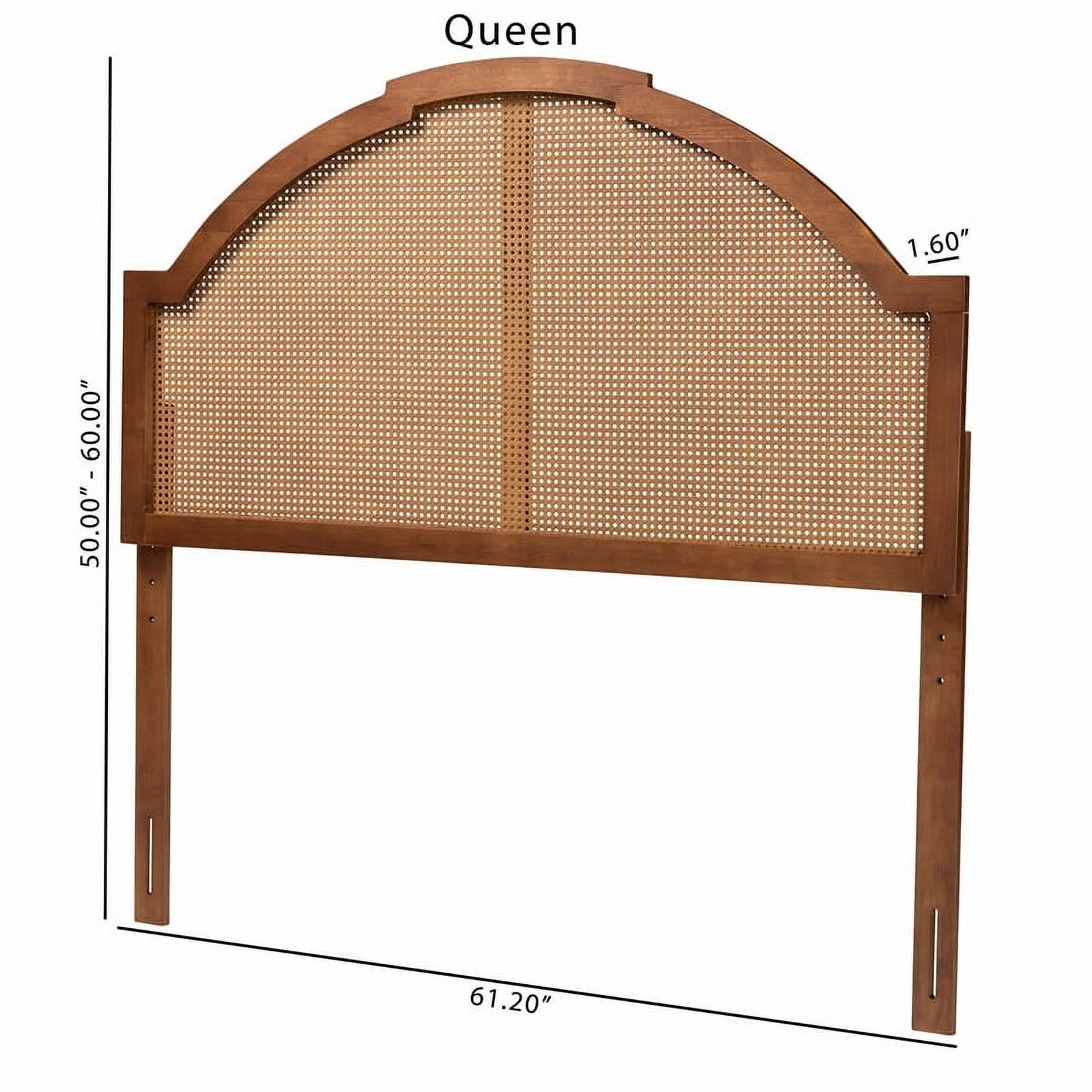 HomeStock Coastal Cool Classic And Traditional Ash Walnut Finished Wood And Synthetic Rattan Queen Size Arched Headboard