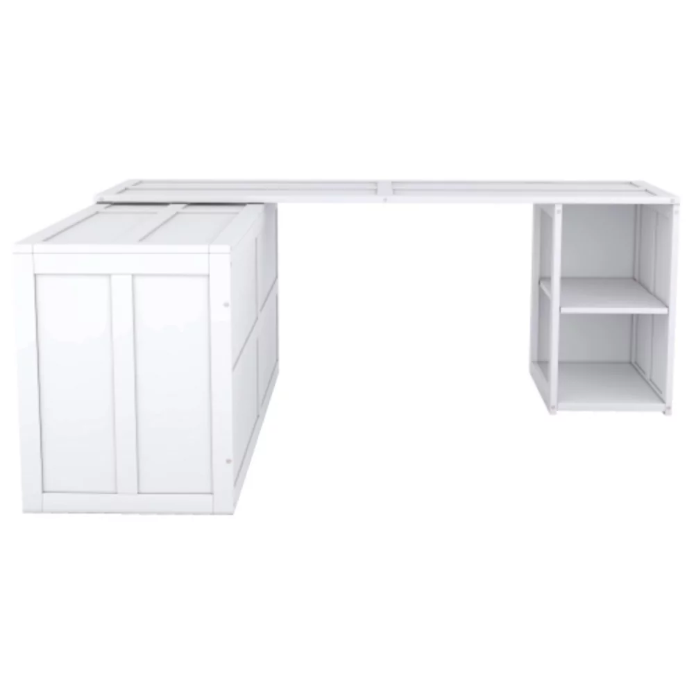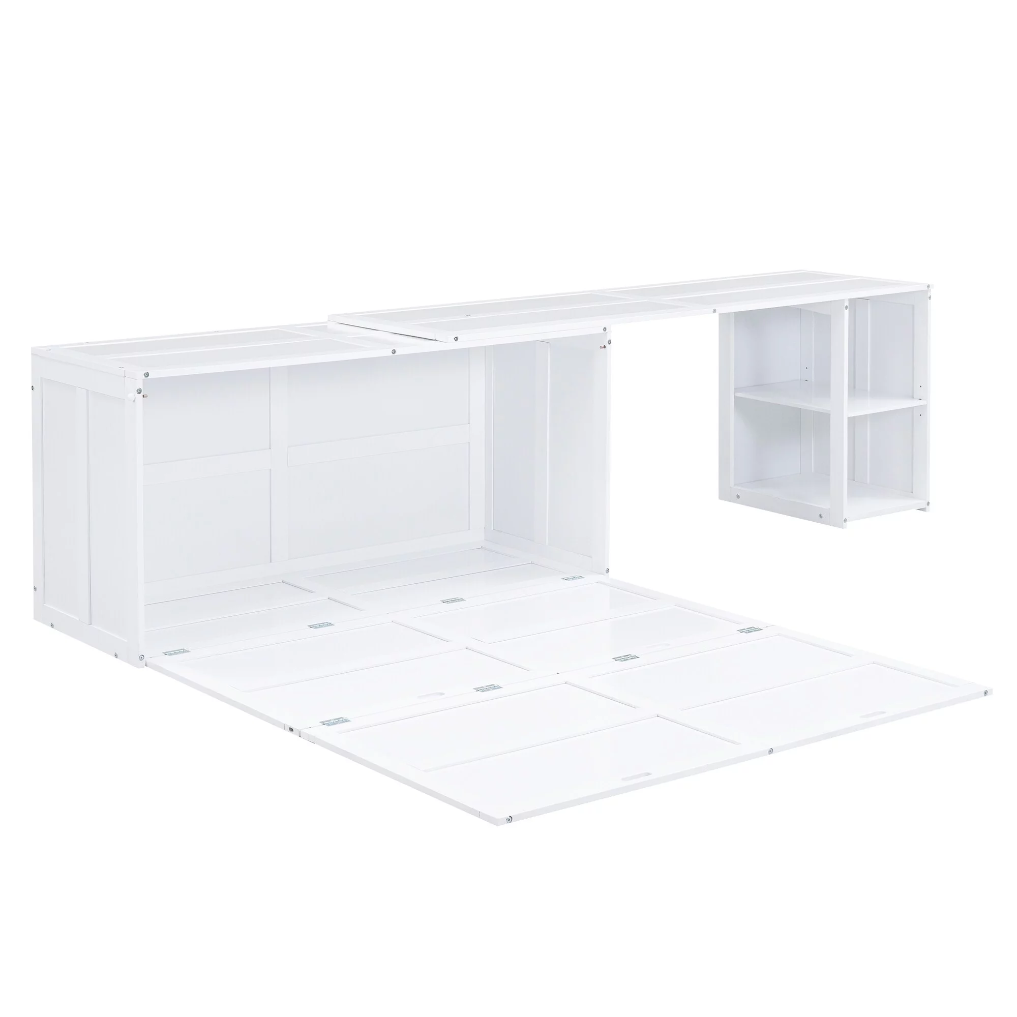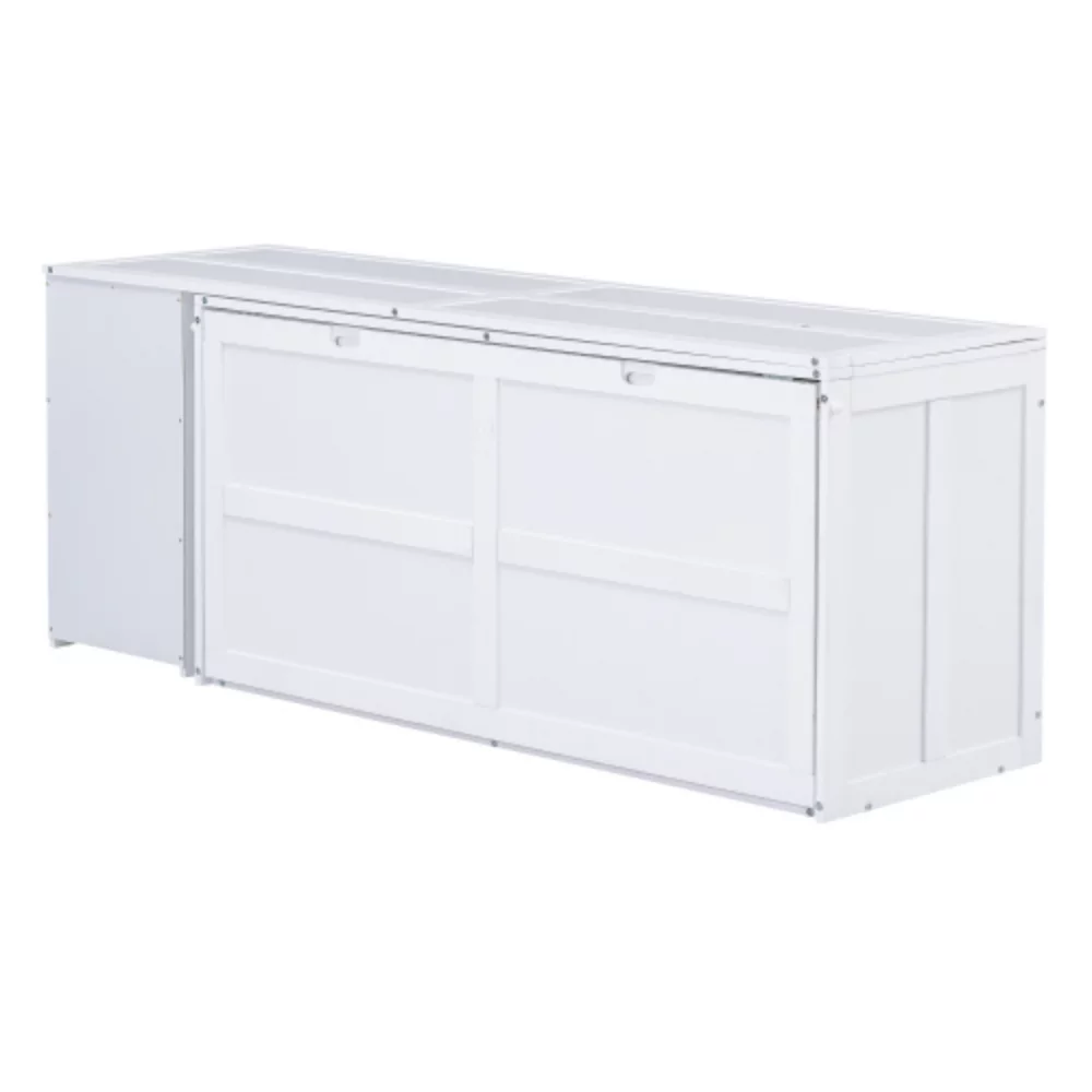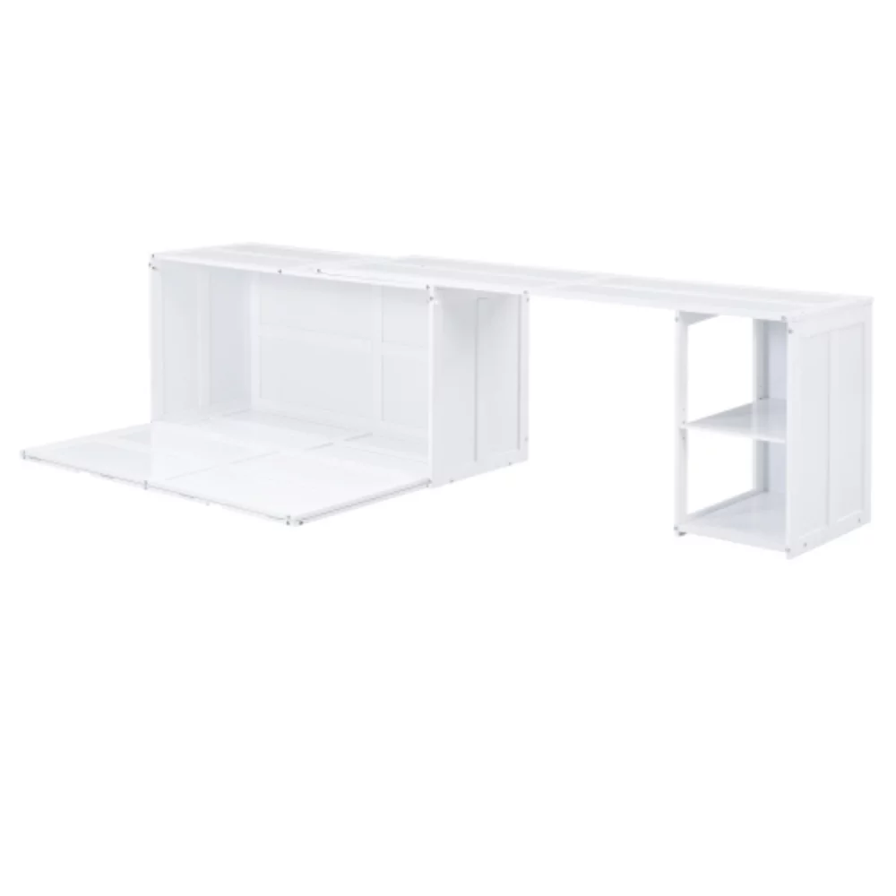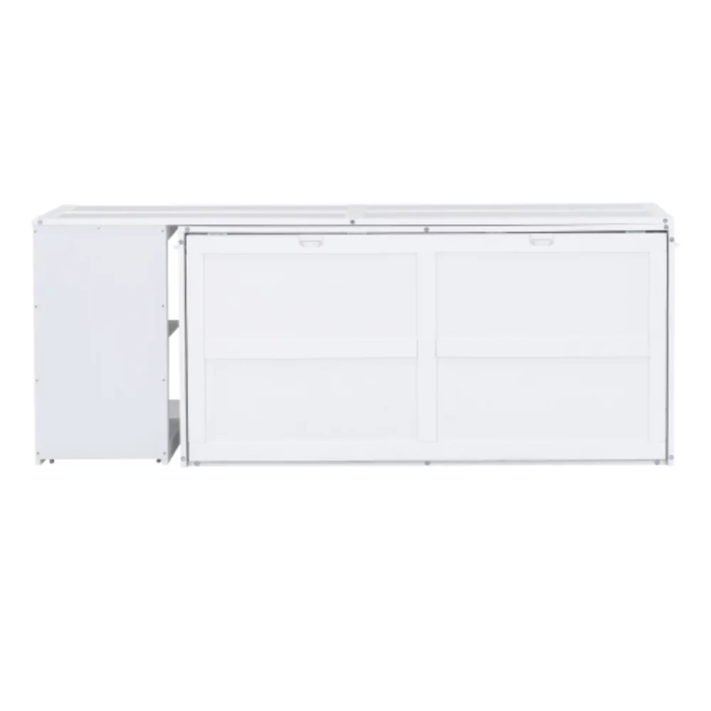 Queen-Size Murphy Bed Chest with Rotable Desk and Shelves Convertible Design White