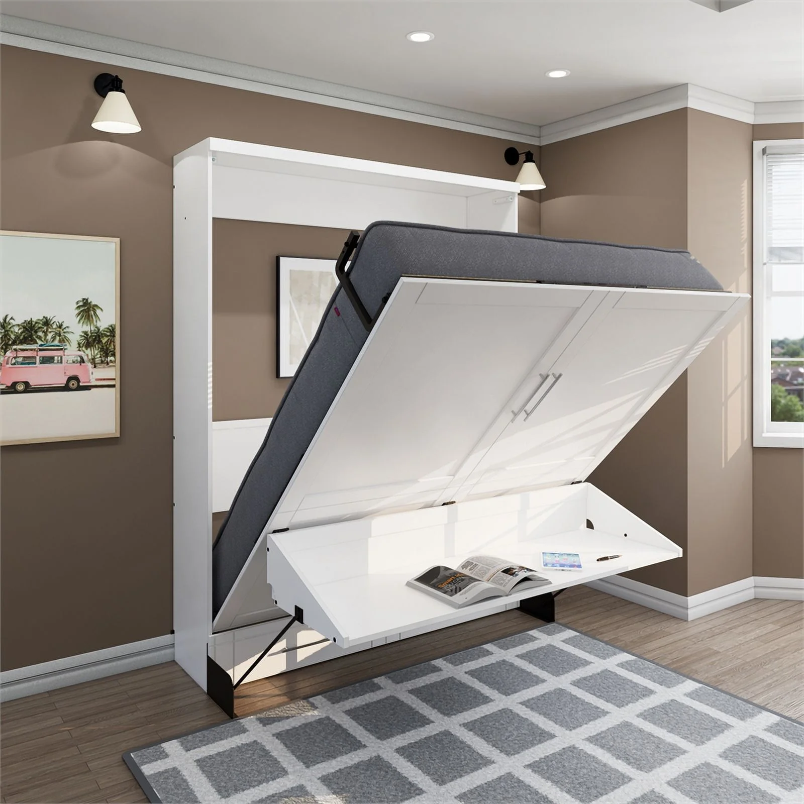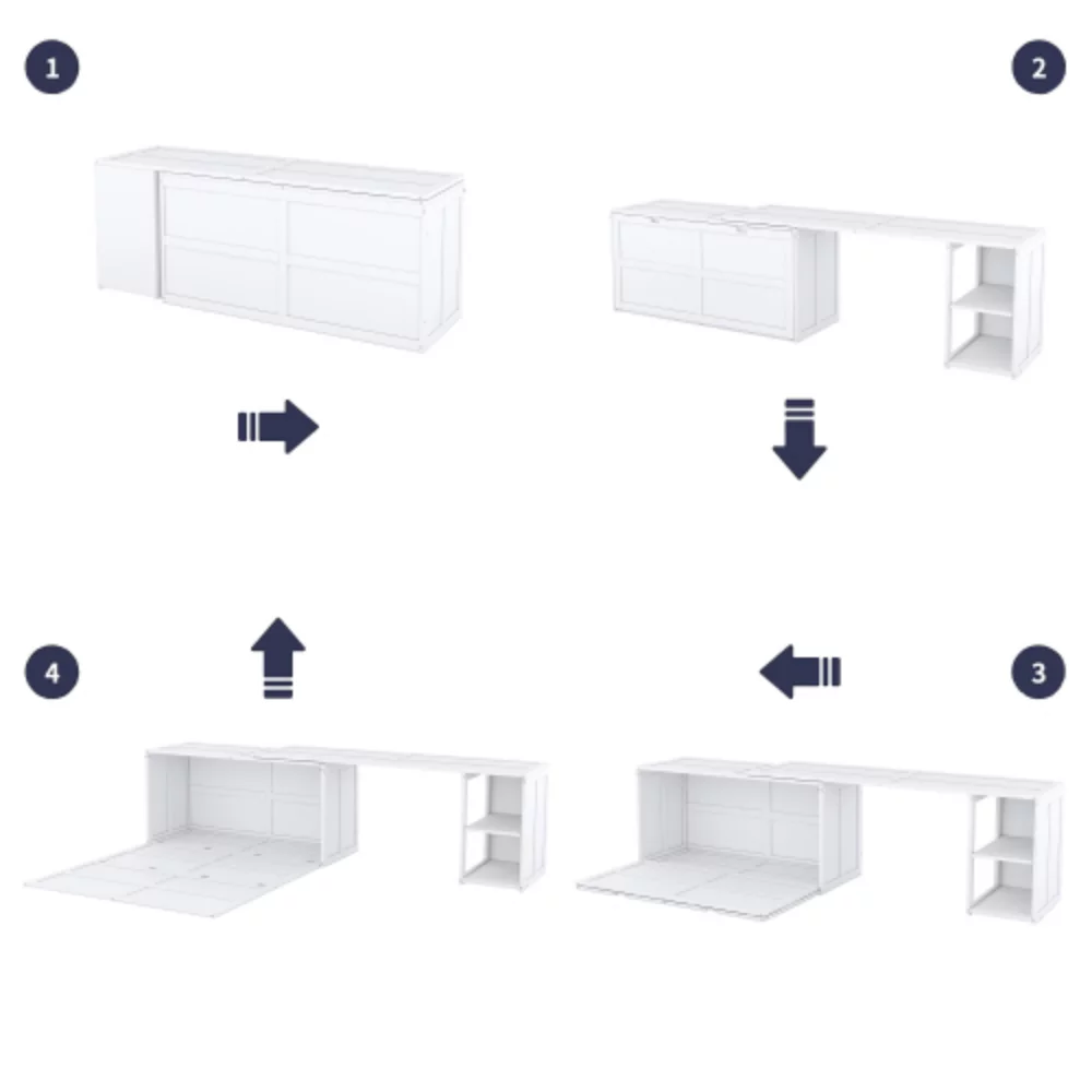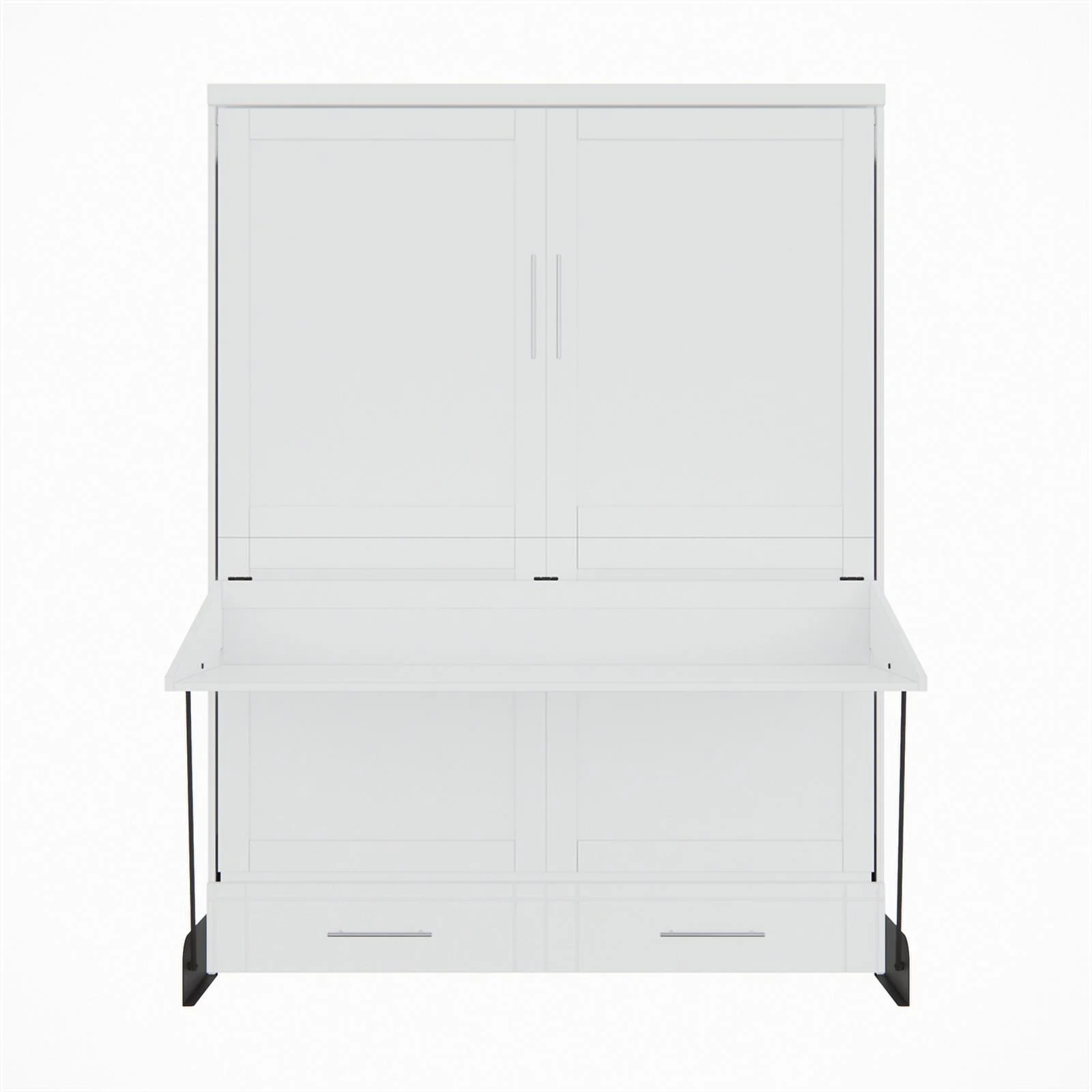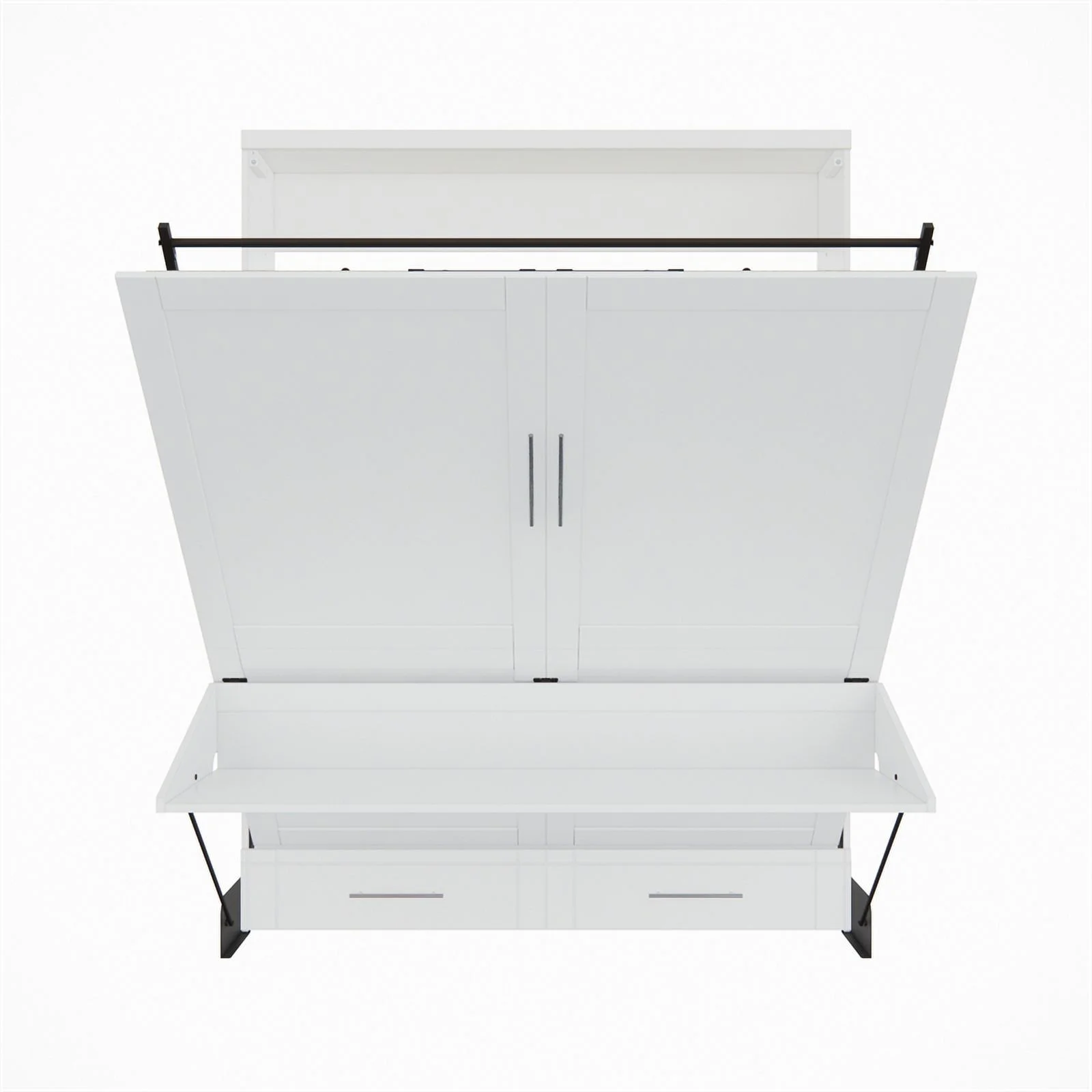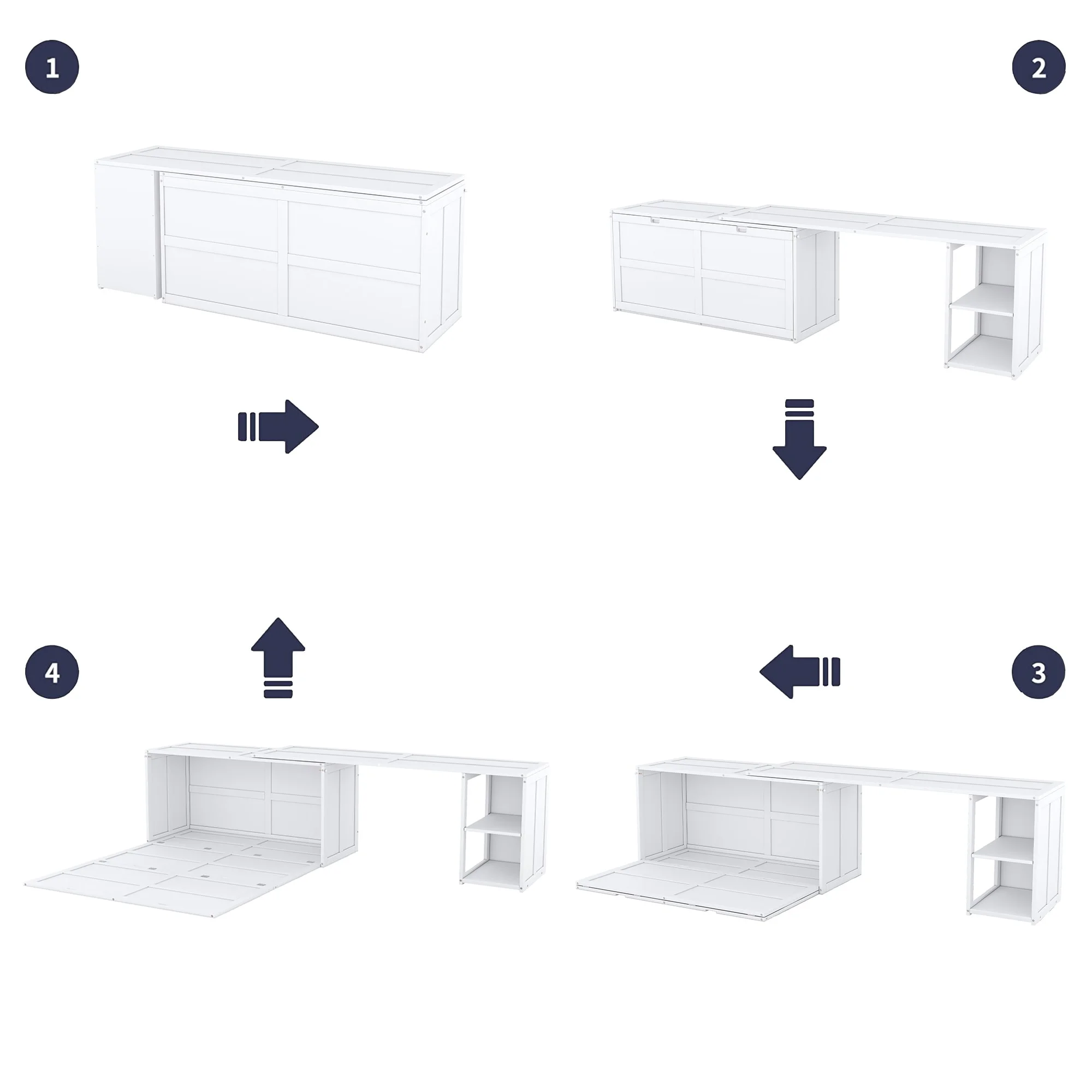 Queen-Size Murphy Bed Chest with Rotable Desk and Shelves Convertible Design White