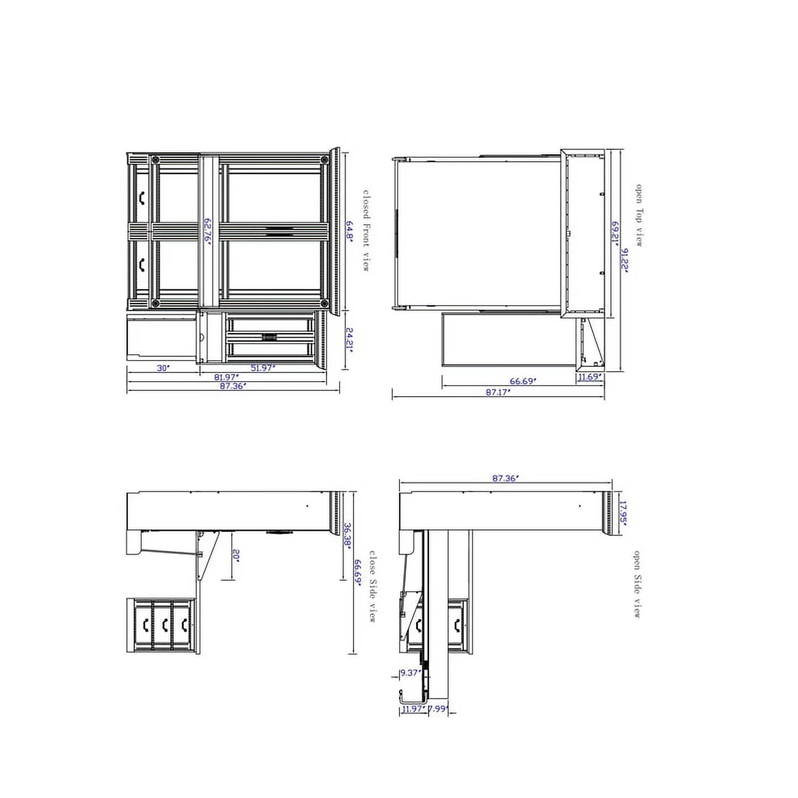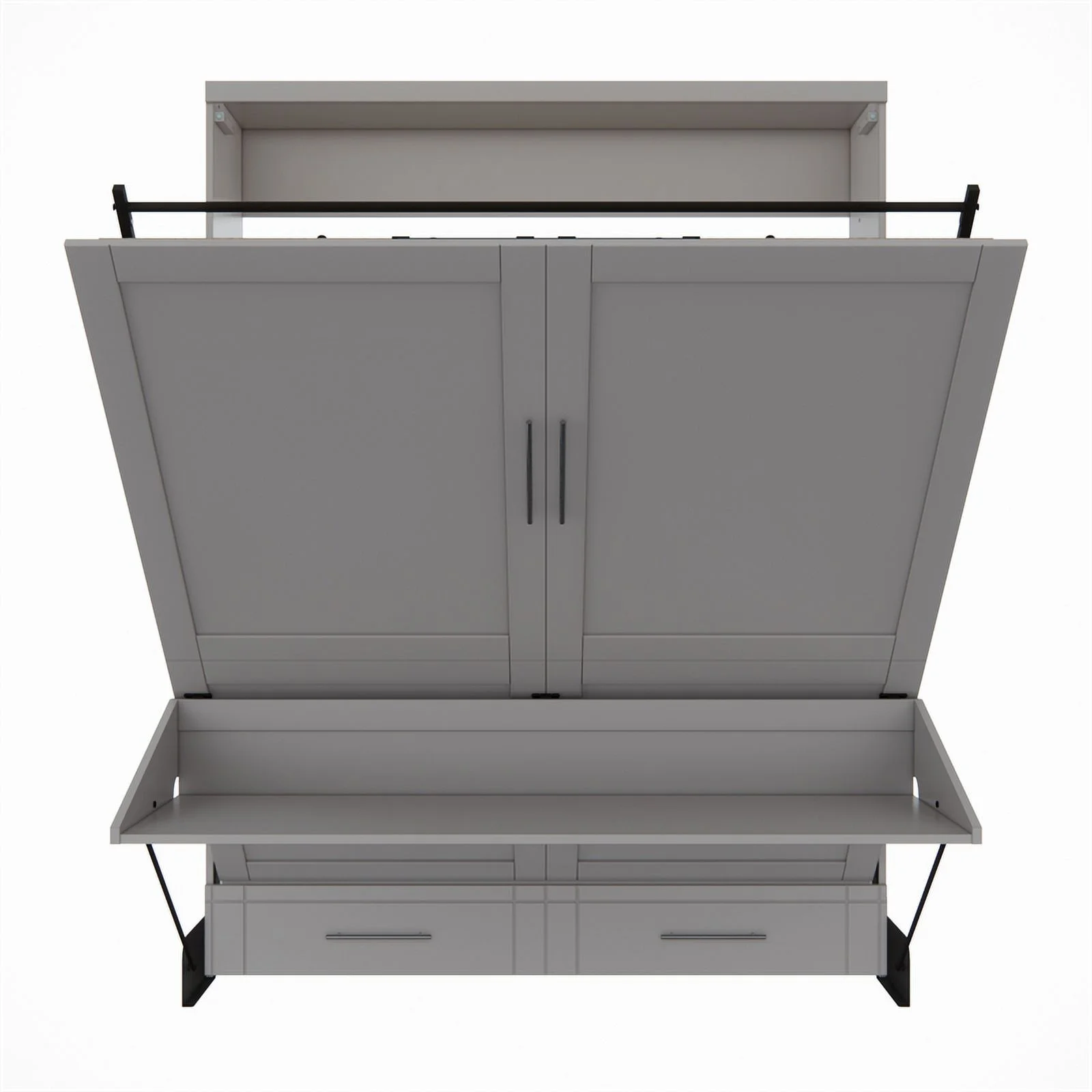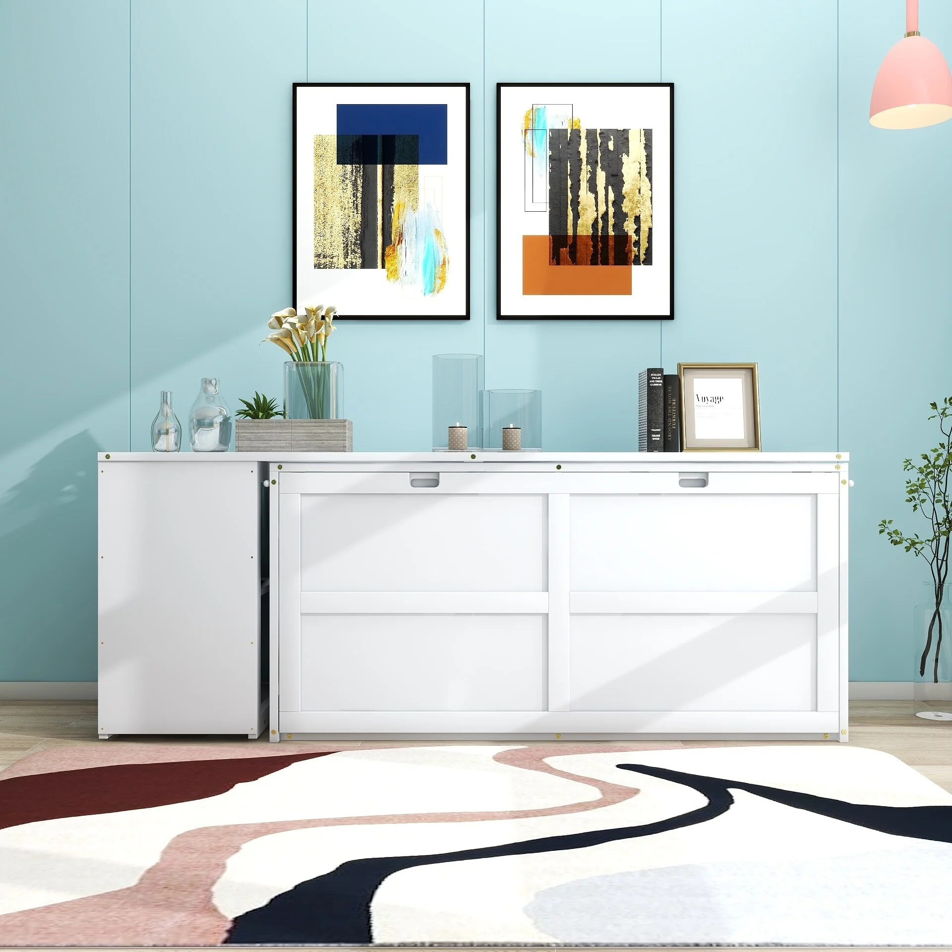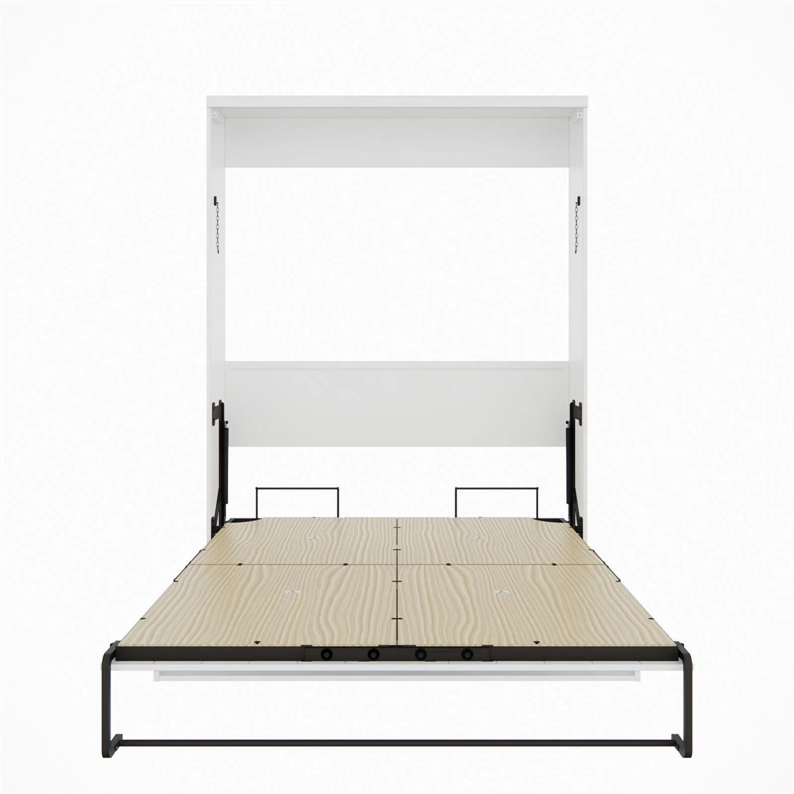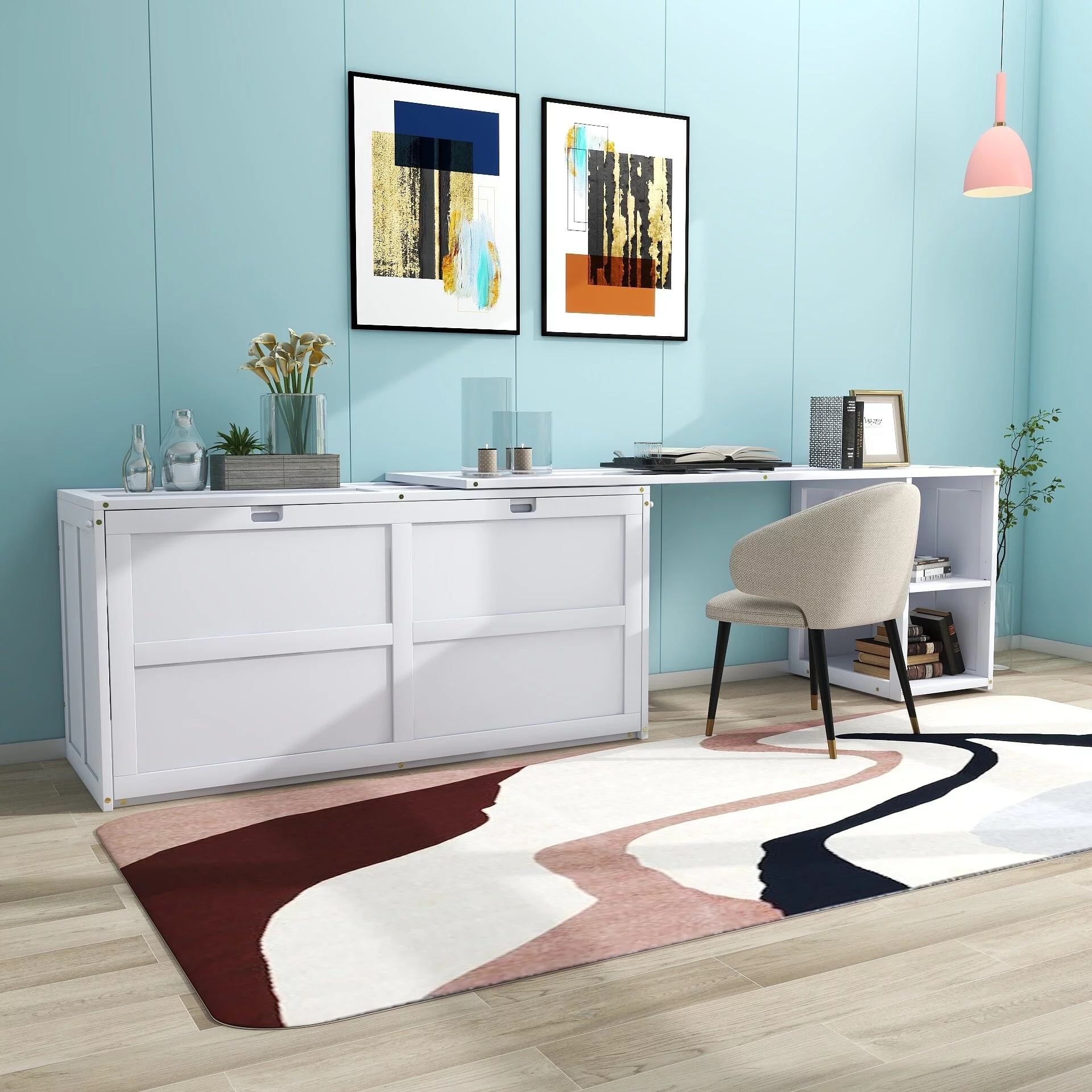 Queen-Size Murphy Bed Chest with Rotable Desk and Shelves Convertible Design White
