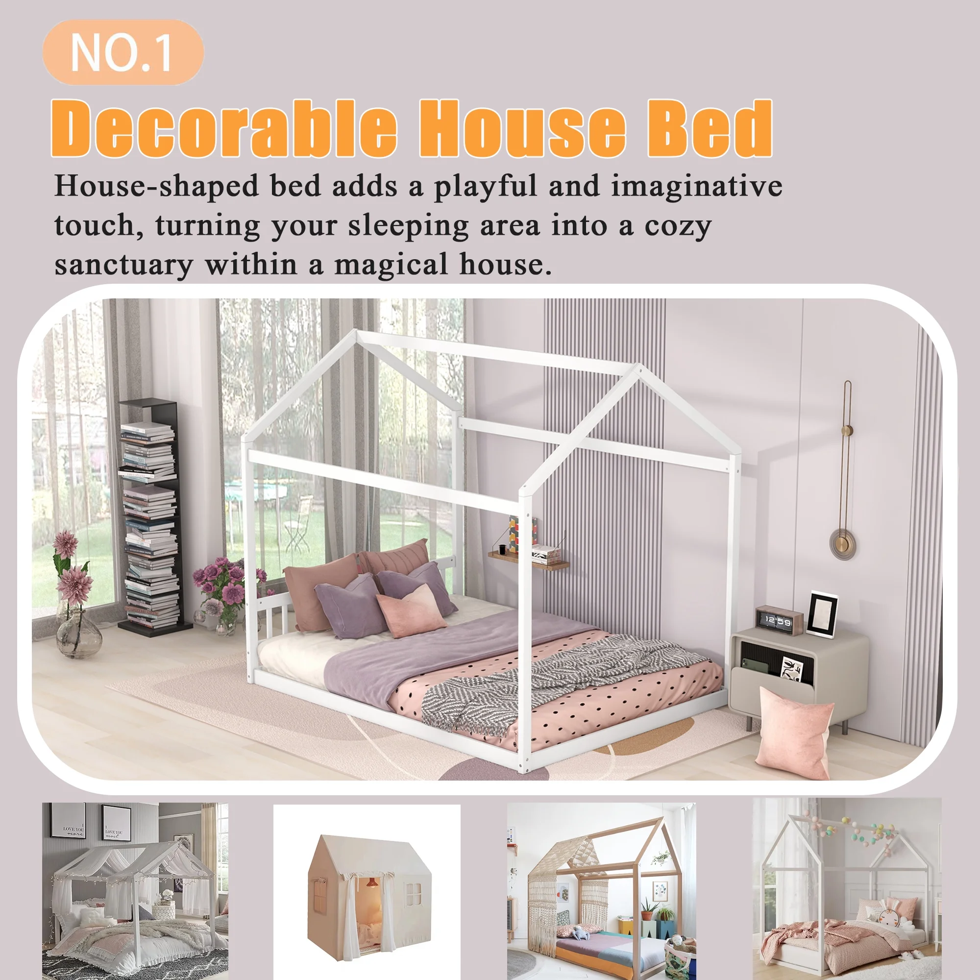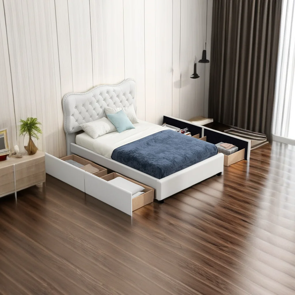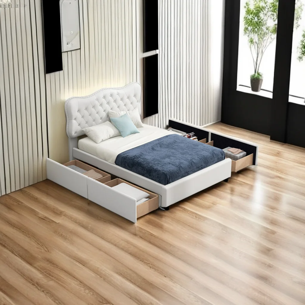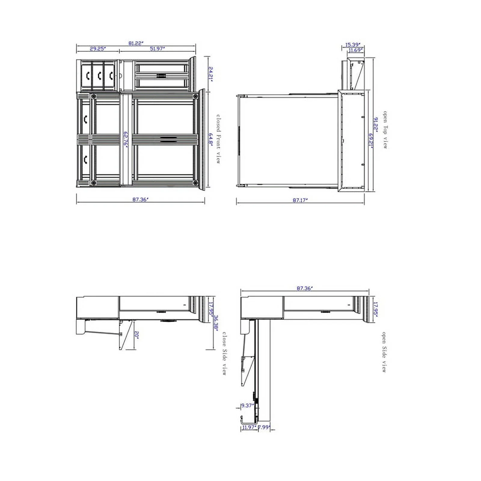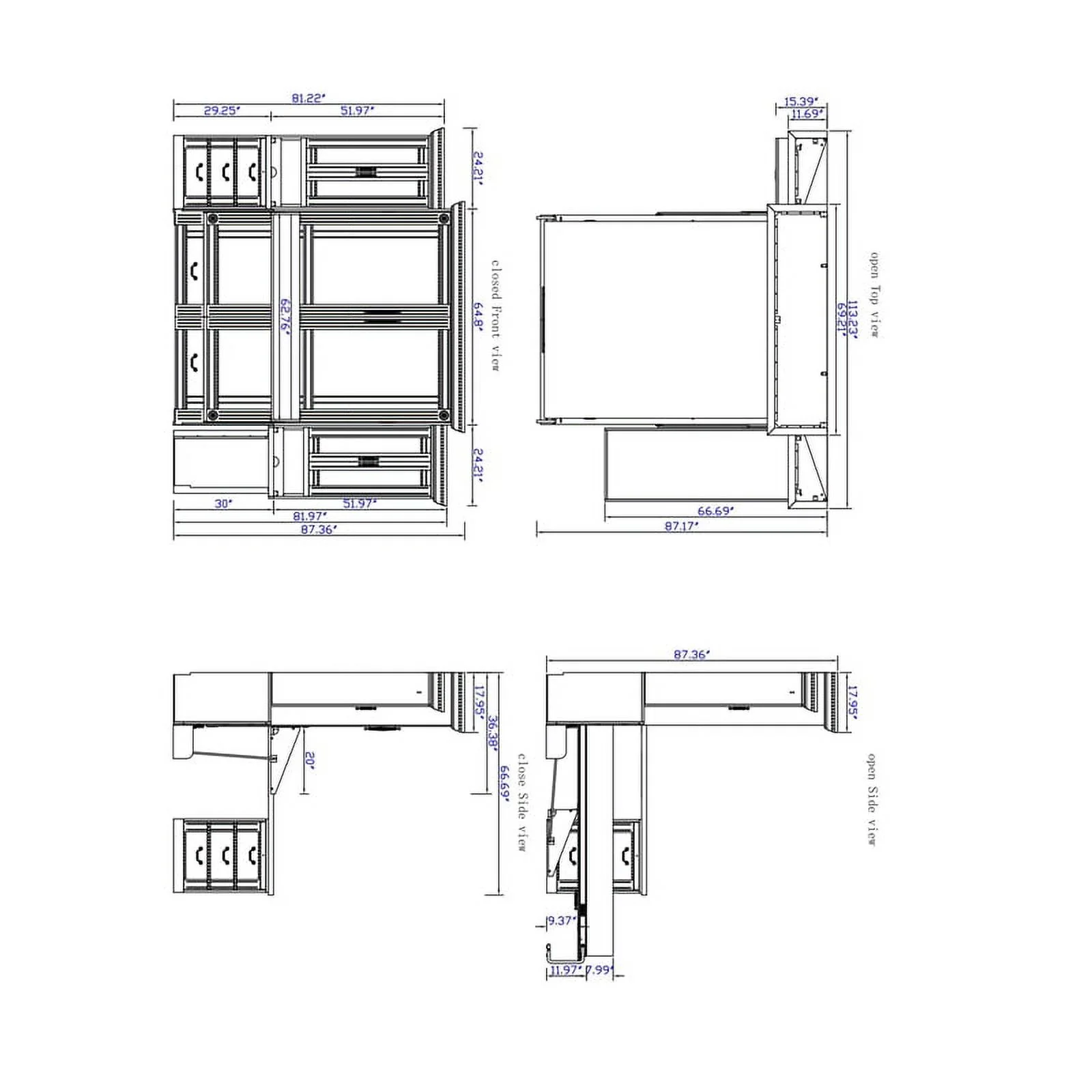 Queen-Size Murphy Bed Chest with Rotable Desk and Shelves Convertible Design White