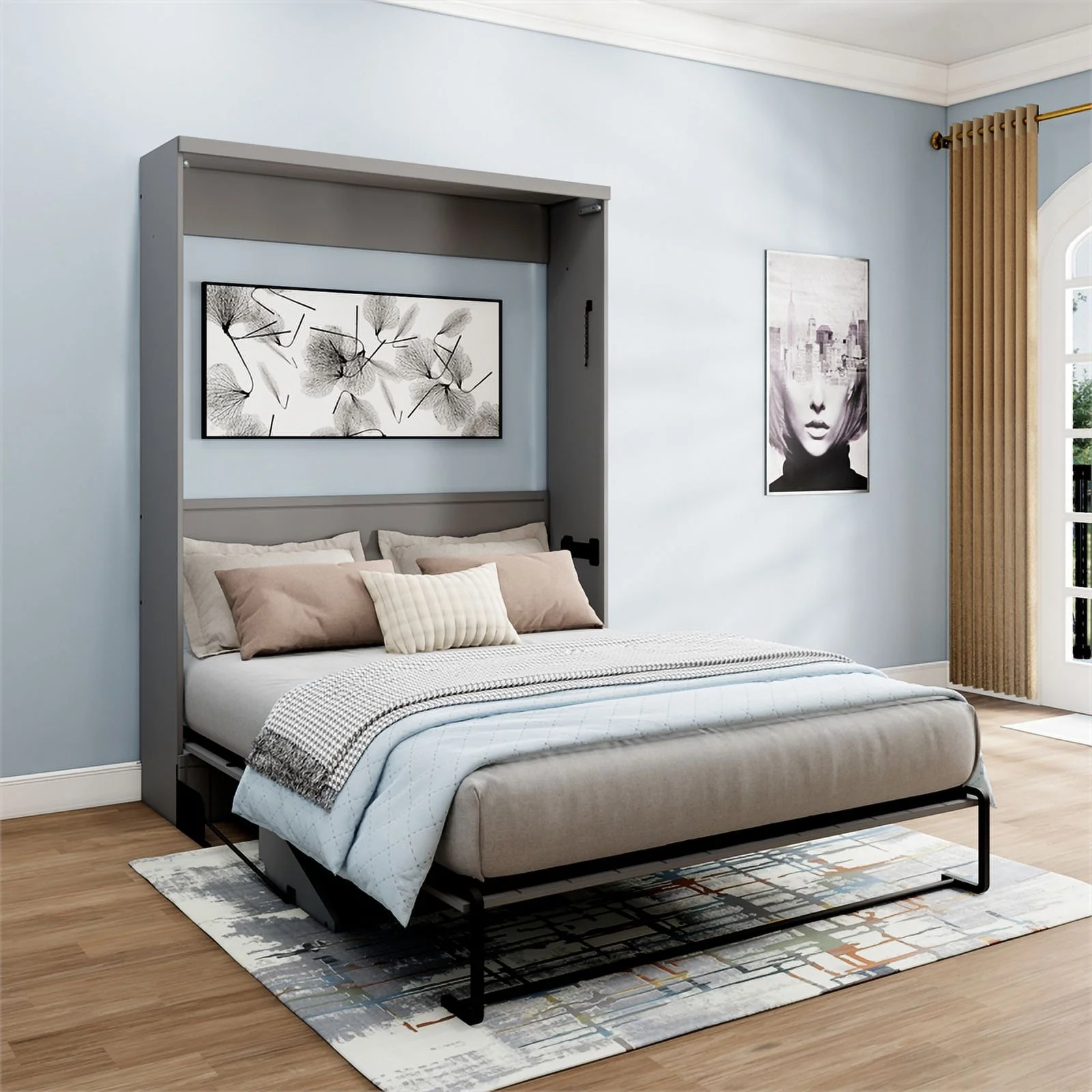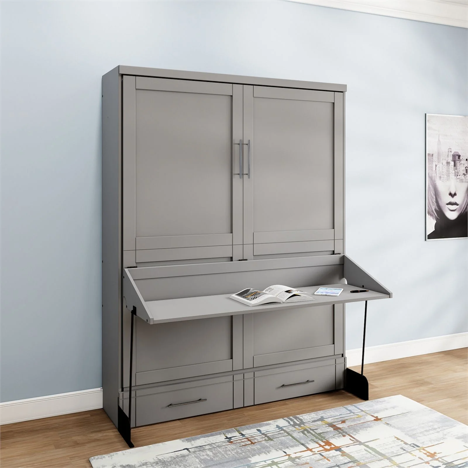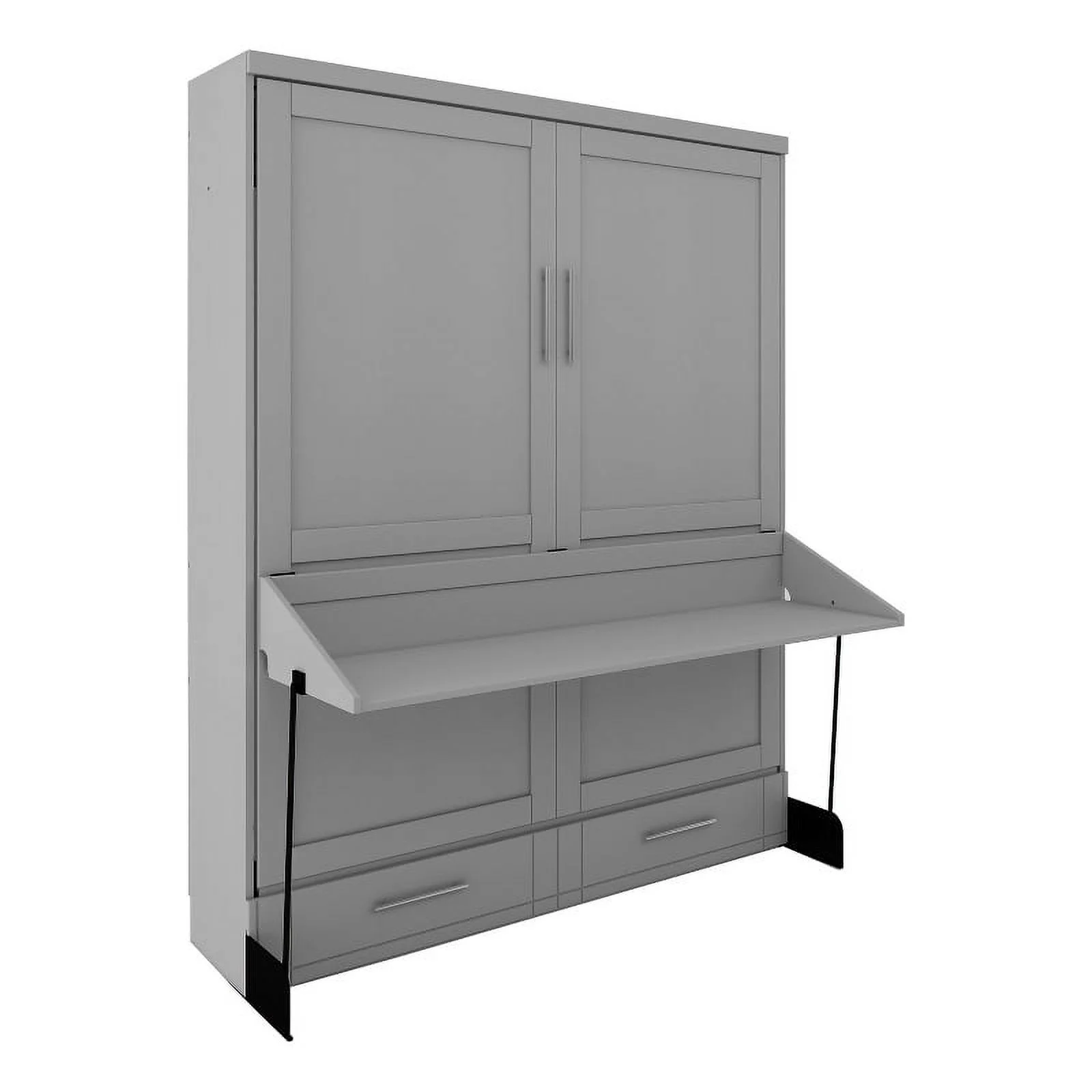 RoomAndLoft Queen Wood Murphy Wall Desk Bed & Shelf Storage in Brown