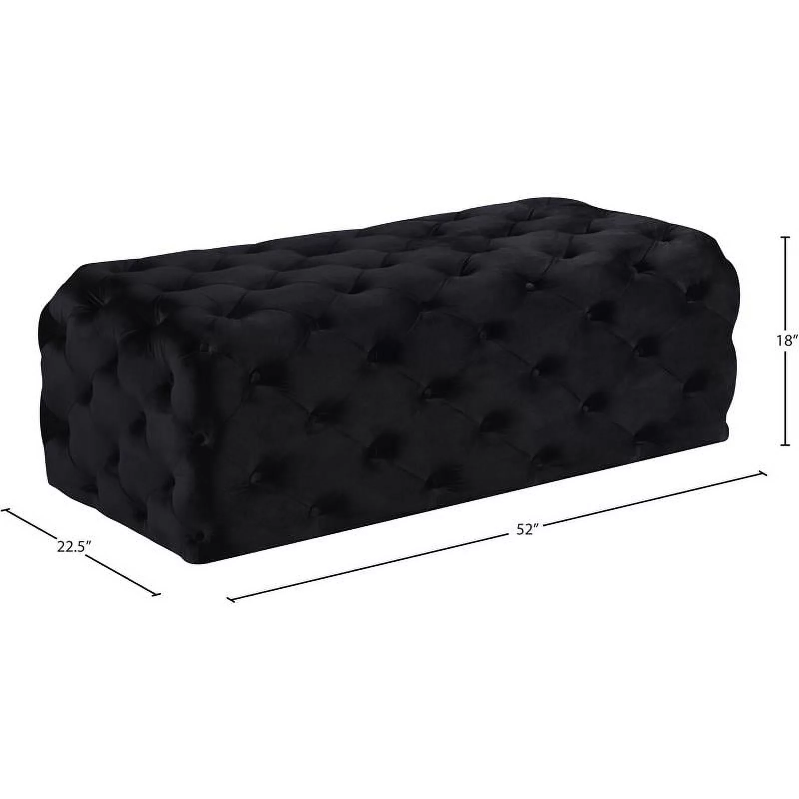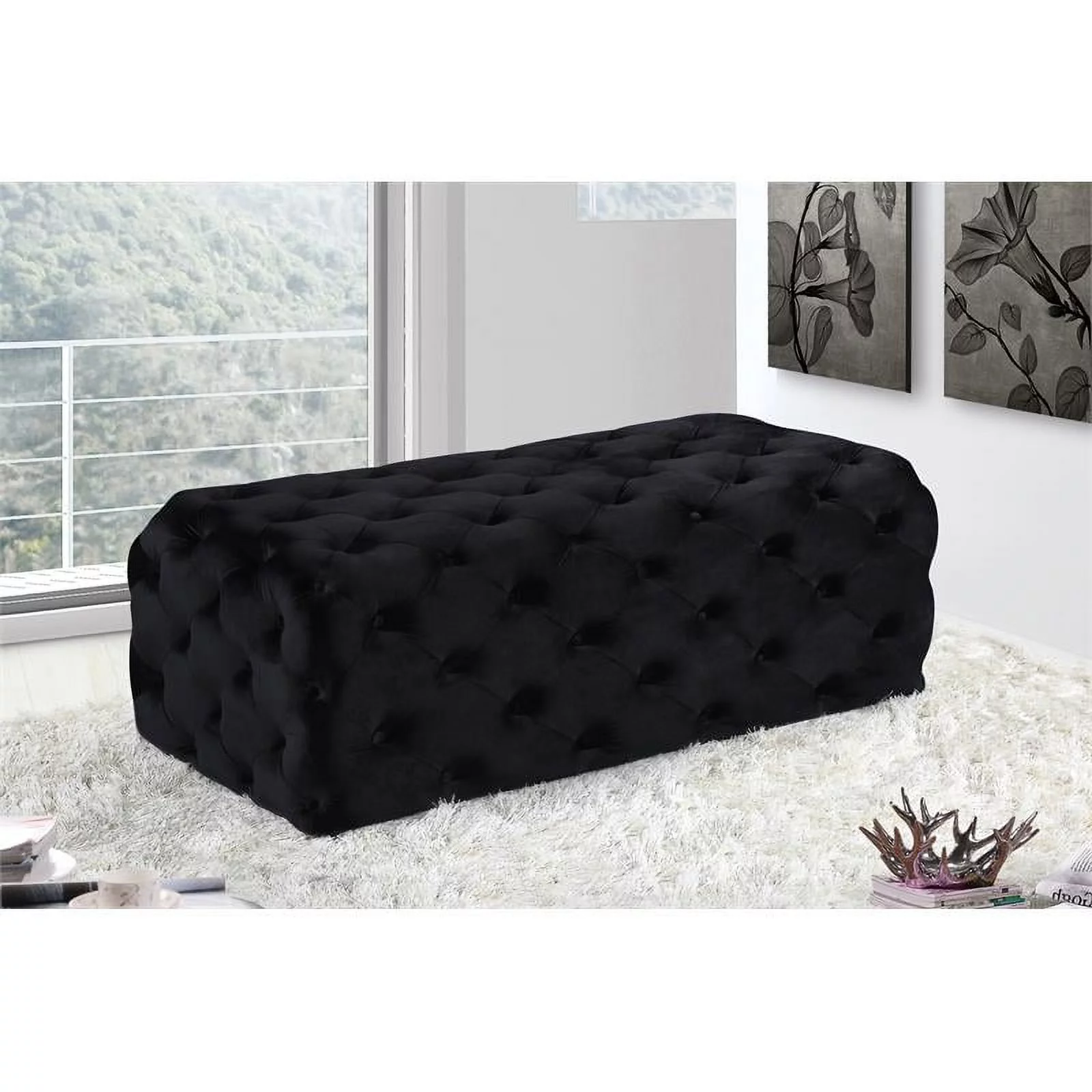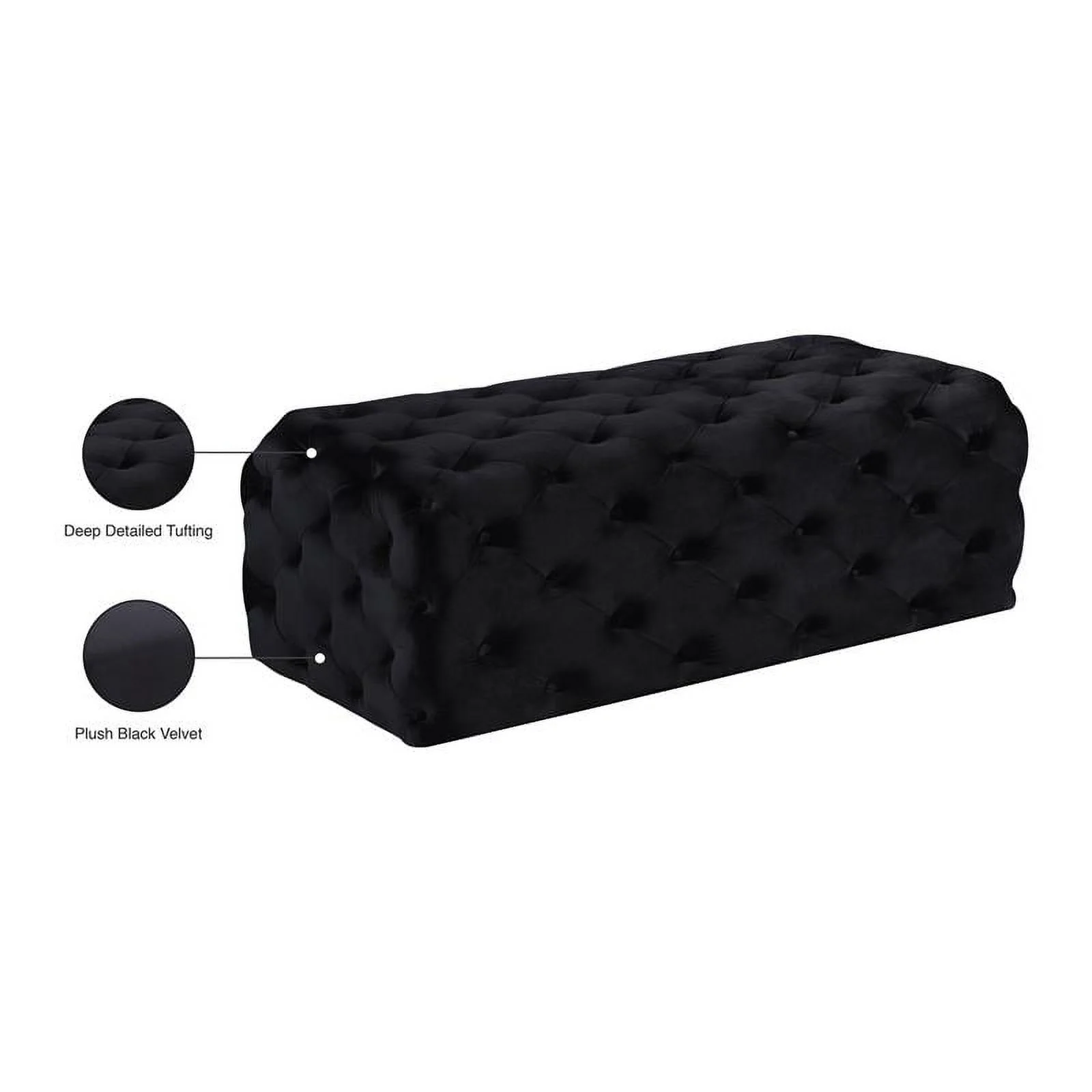 Home Square 2-Piece Set with Velvet Queen Bed and Ottoman in Black