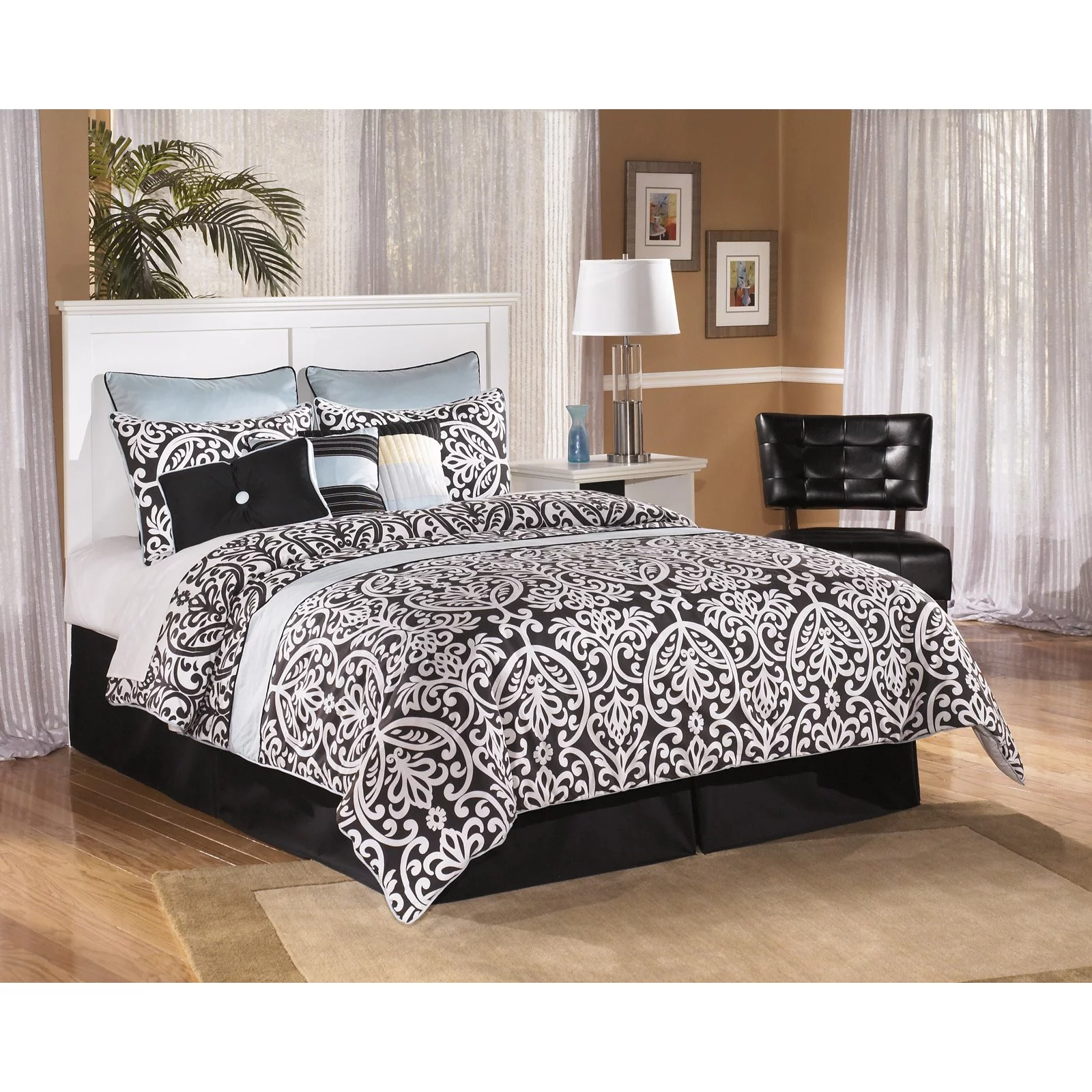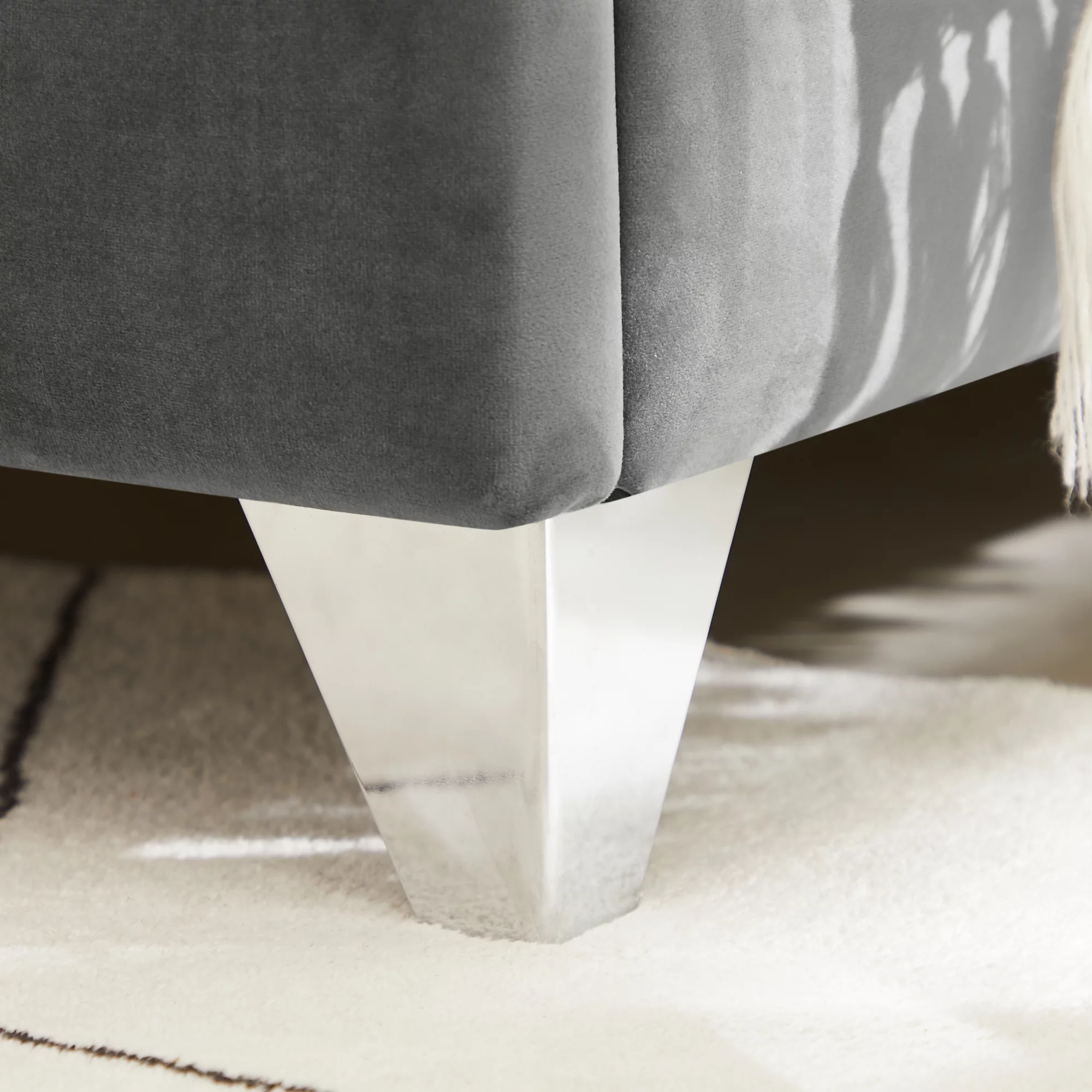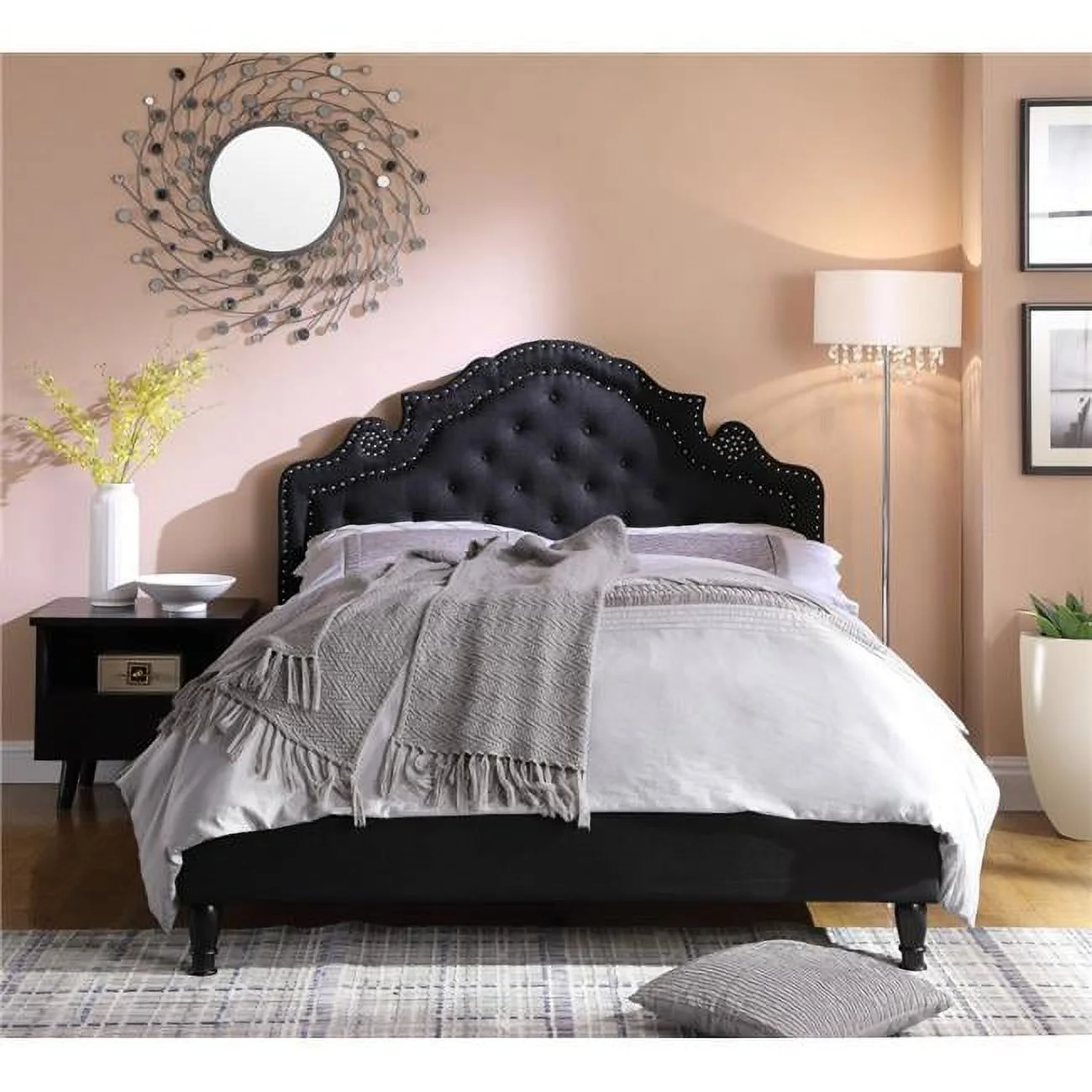 Home Square 2-Piece Set with Velvet Queen Bed and Ottoman in Black
