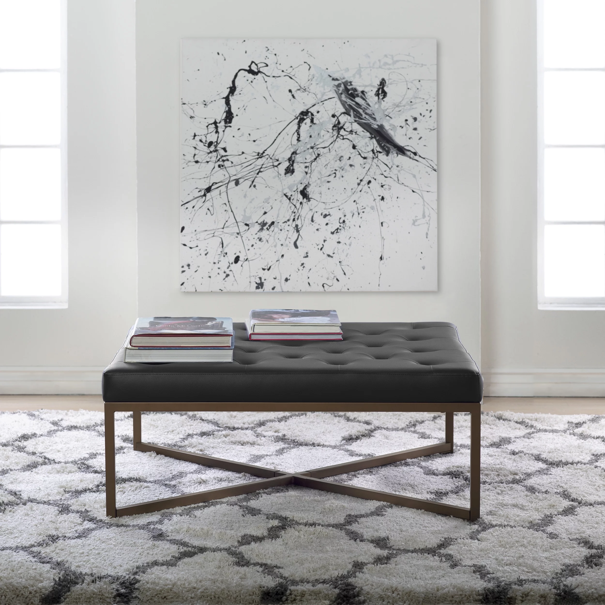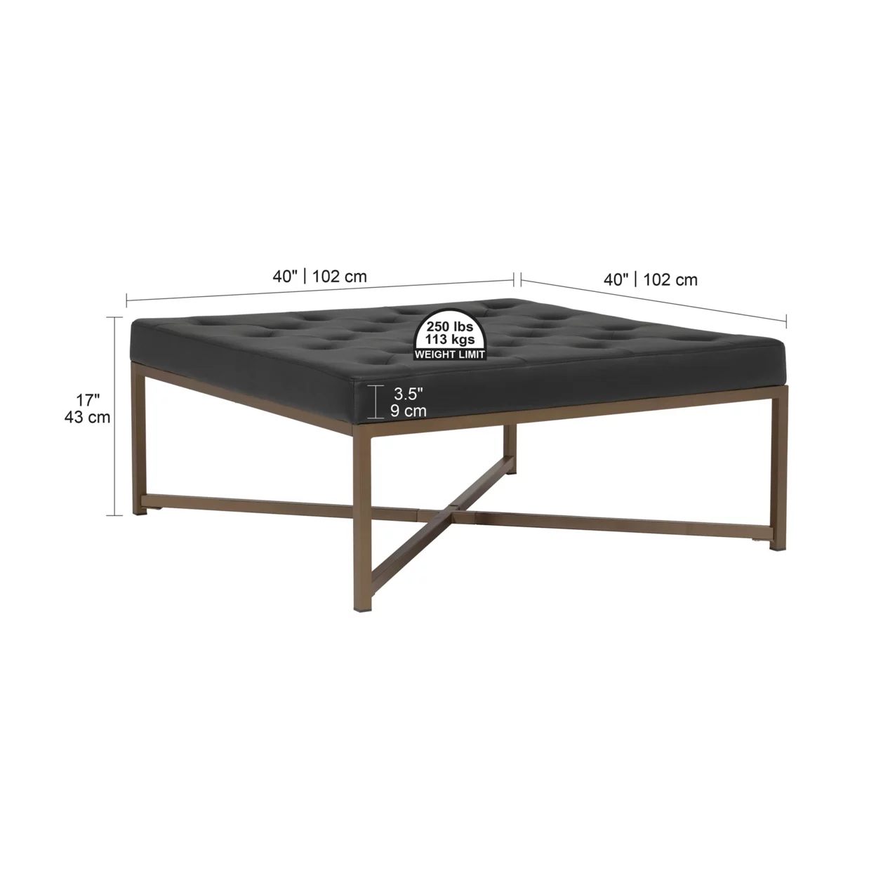 Studio Designs Home 70212 Camber Modern Large Cocktail Tufted Square Ottoman with Metal Frame and Blended Leather