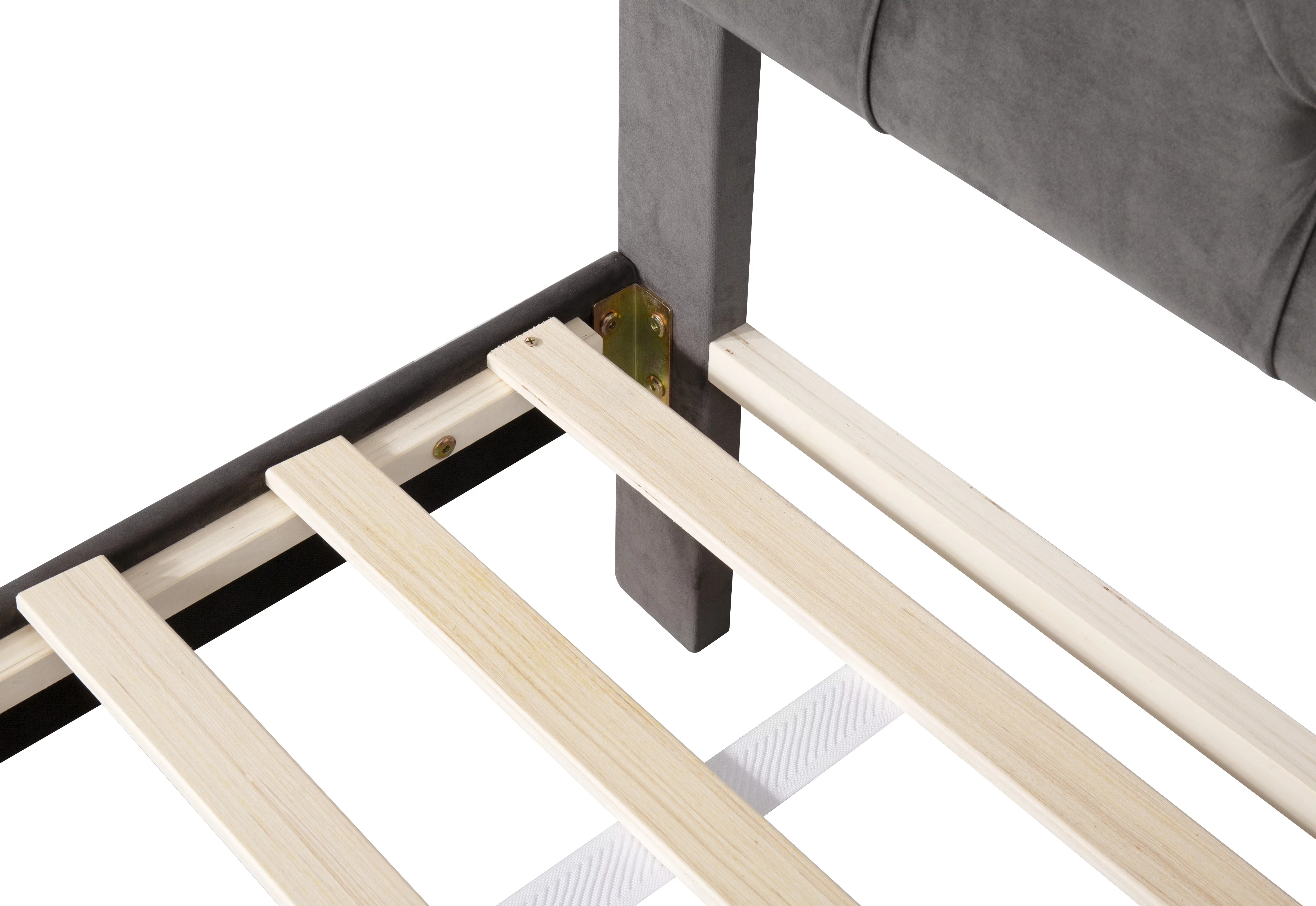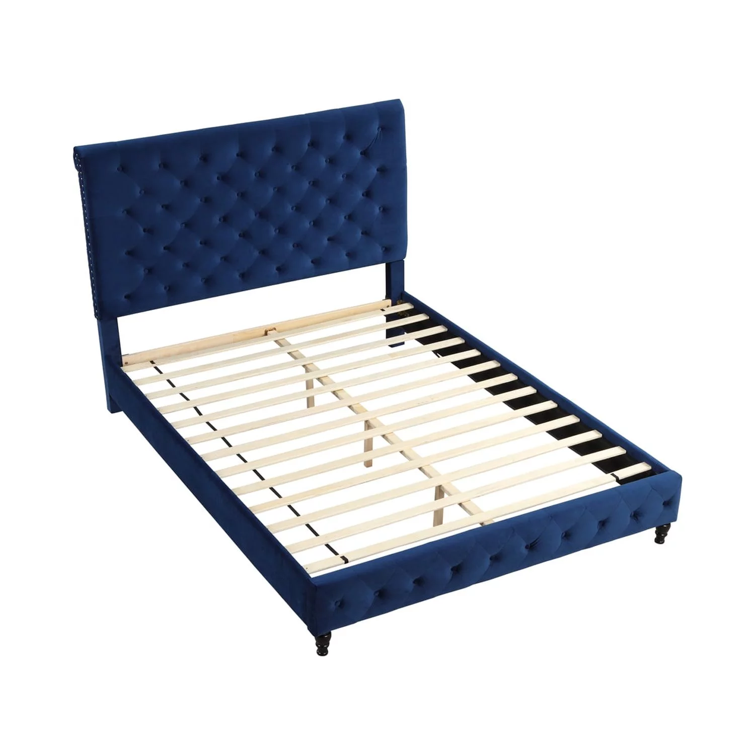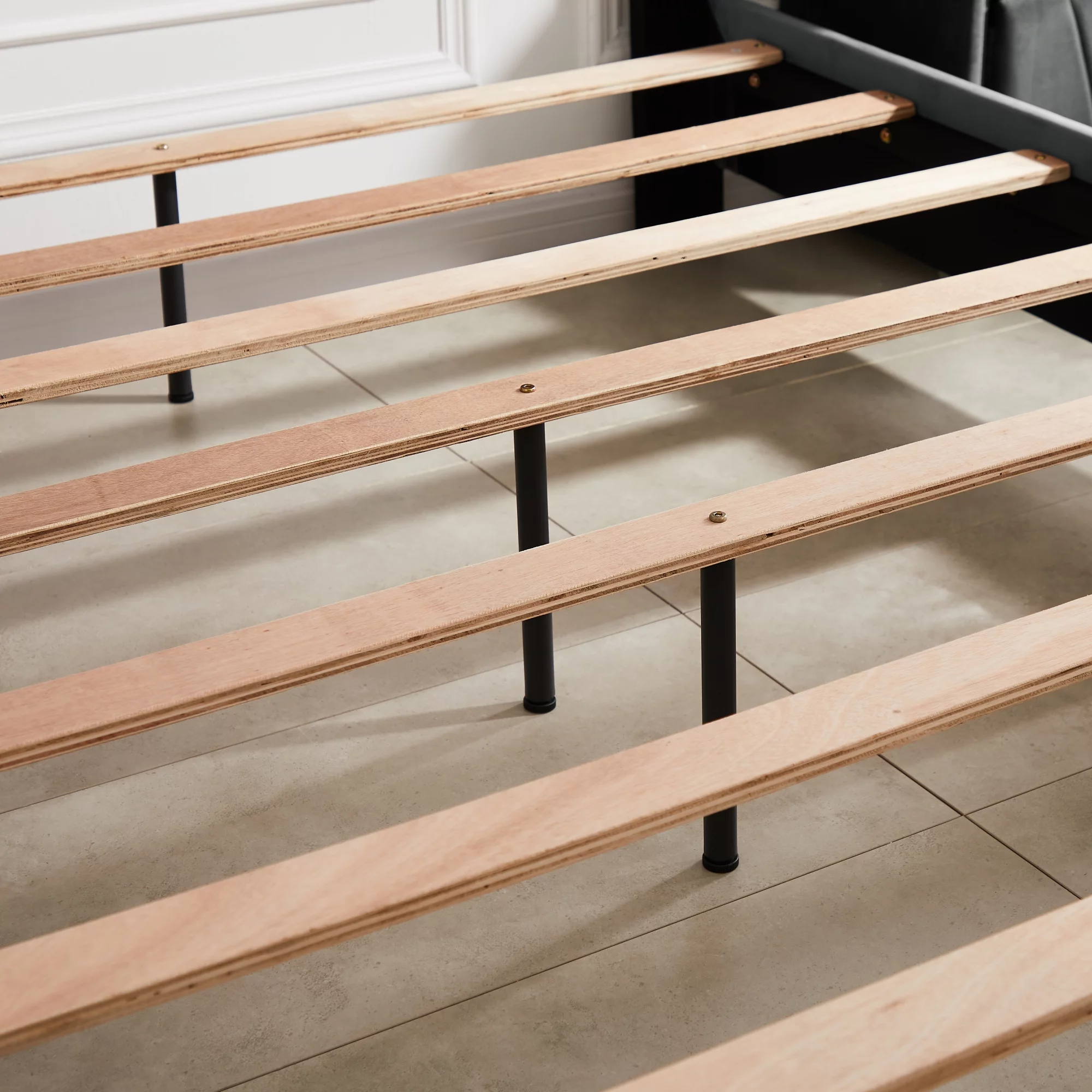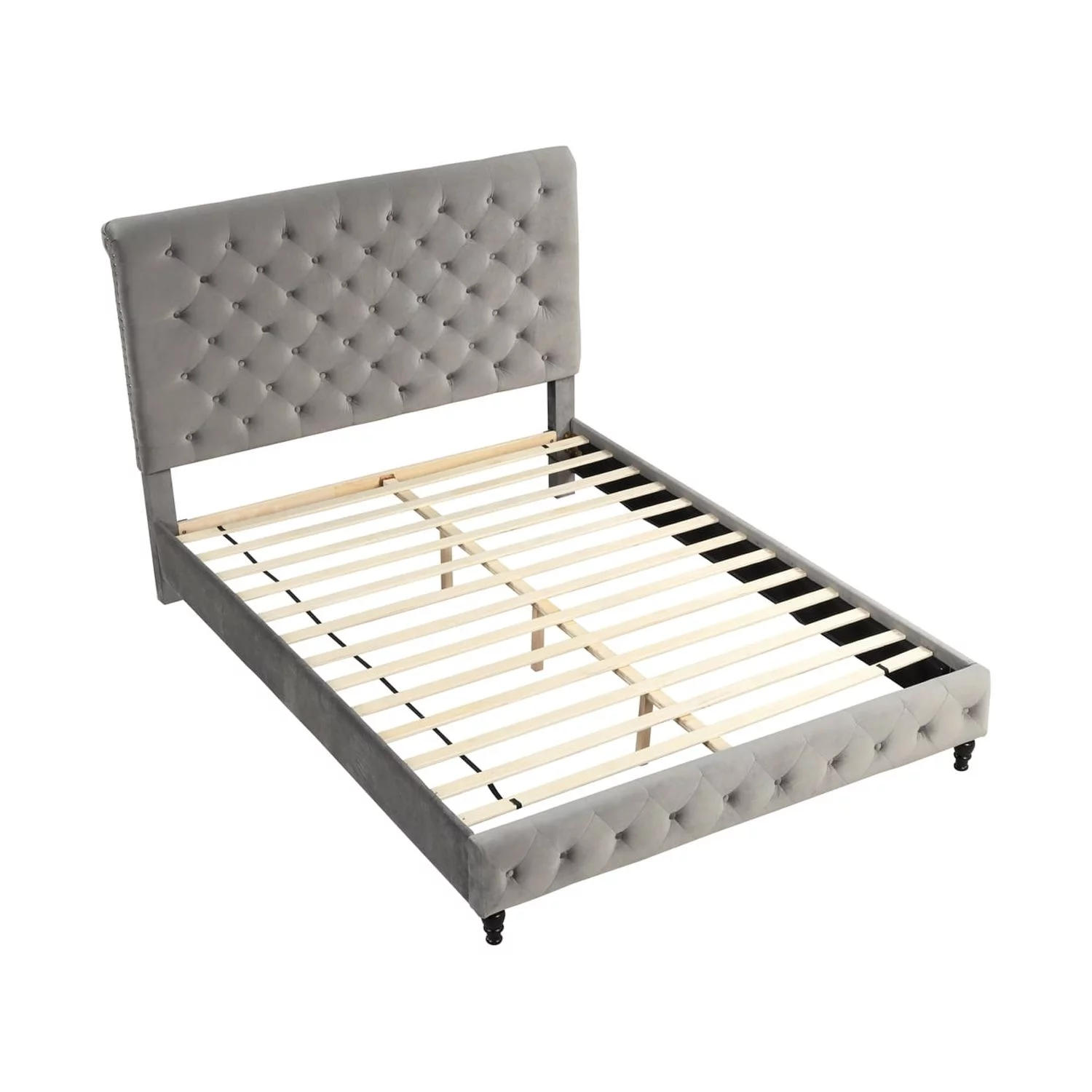 B108 Queen bed with one nightstand, Beautiful line stripe cushion headboard , strong wooden slats + metal legs with Electroplate
