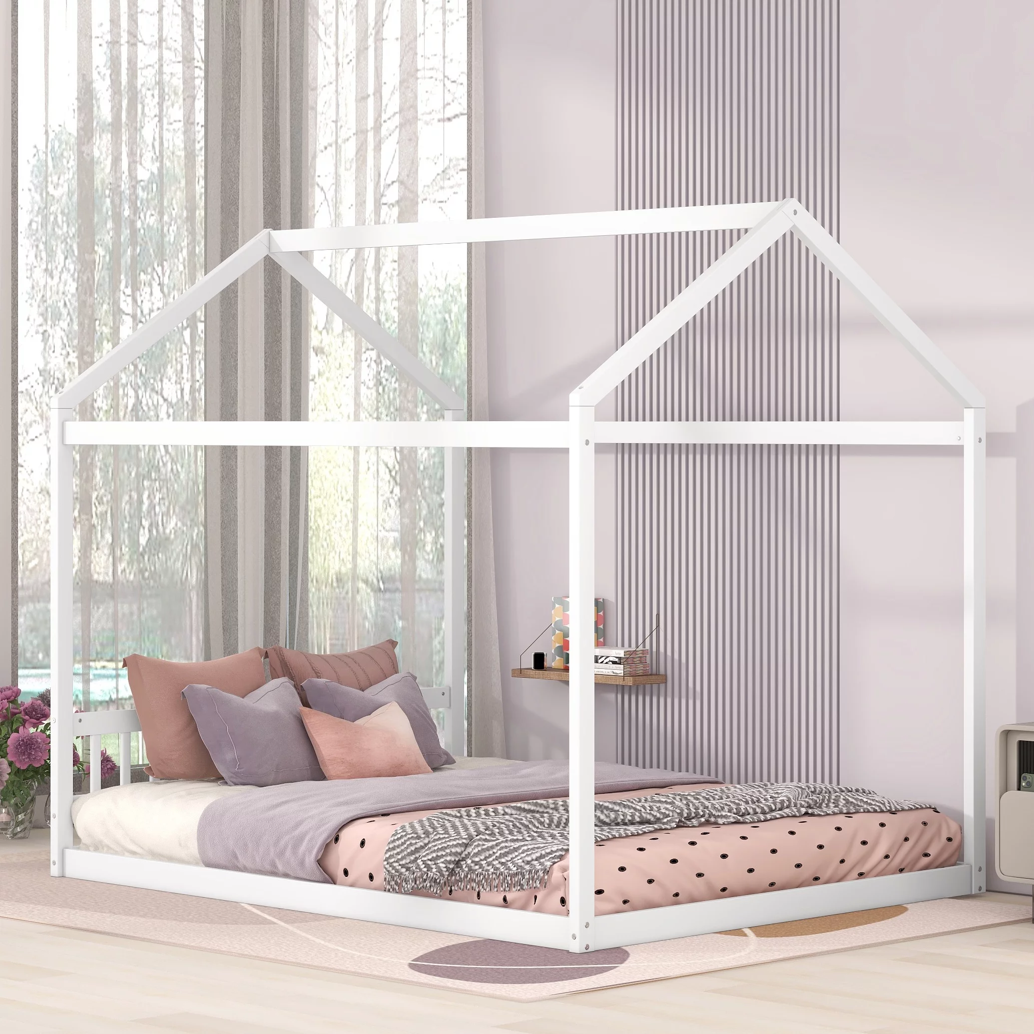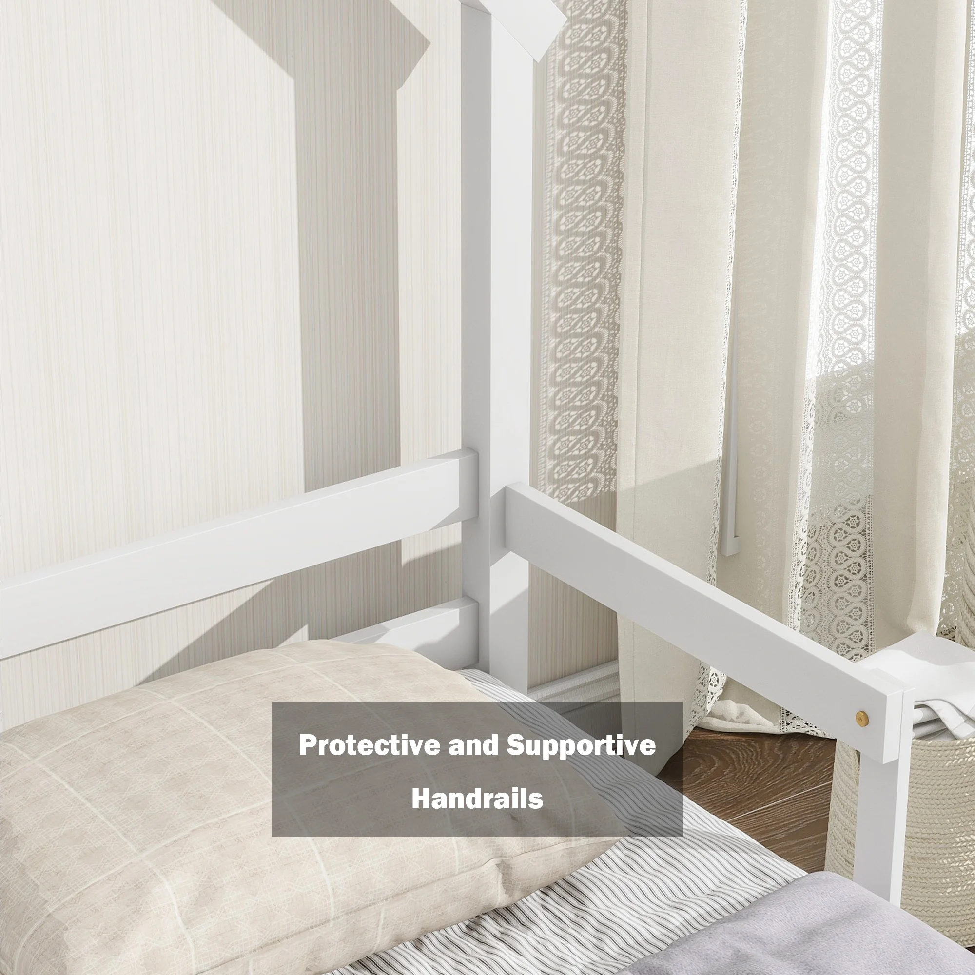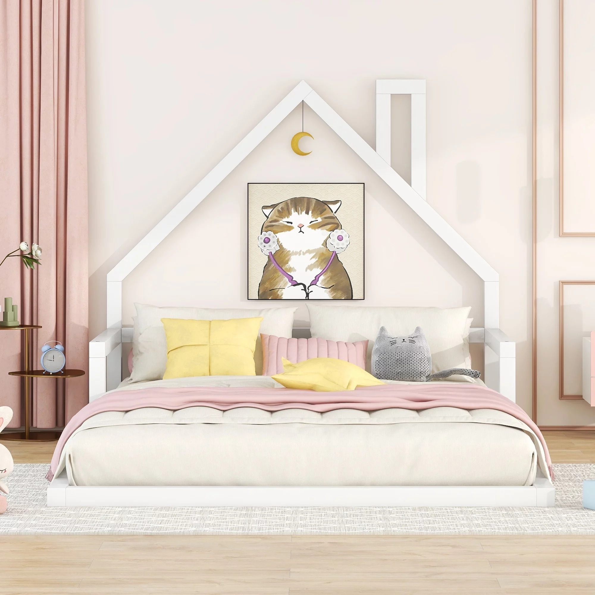 Pemberly Row Queen Contemporary Solid Wood Murphy Deskbed in White