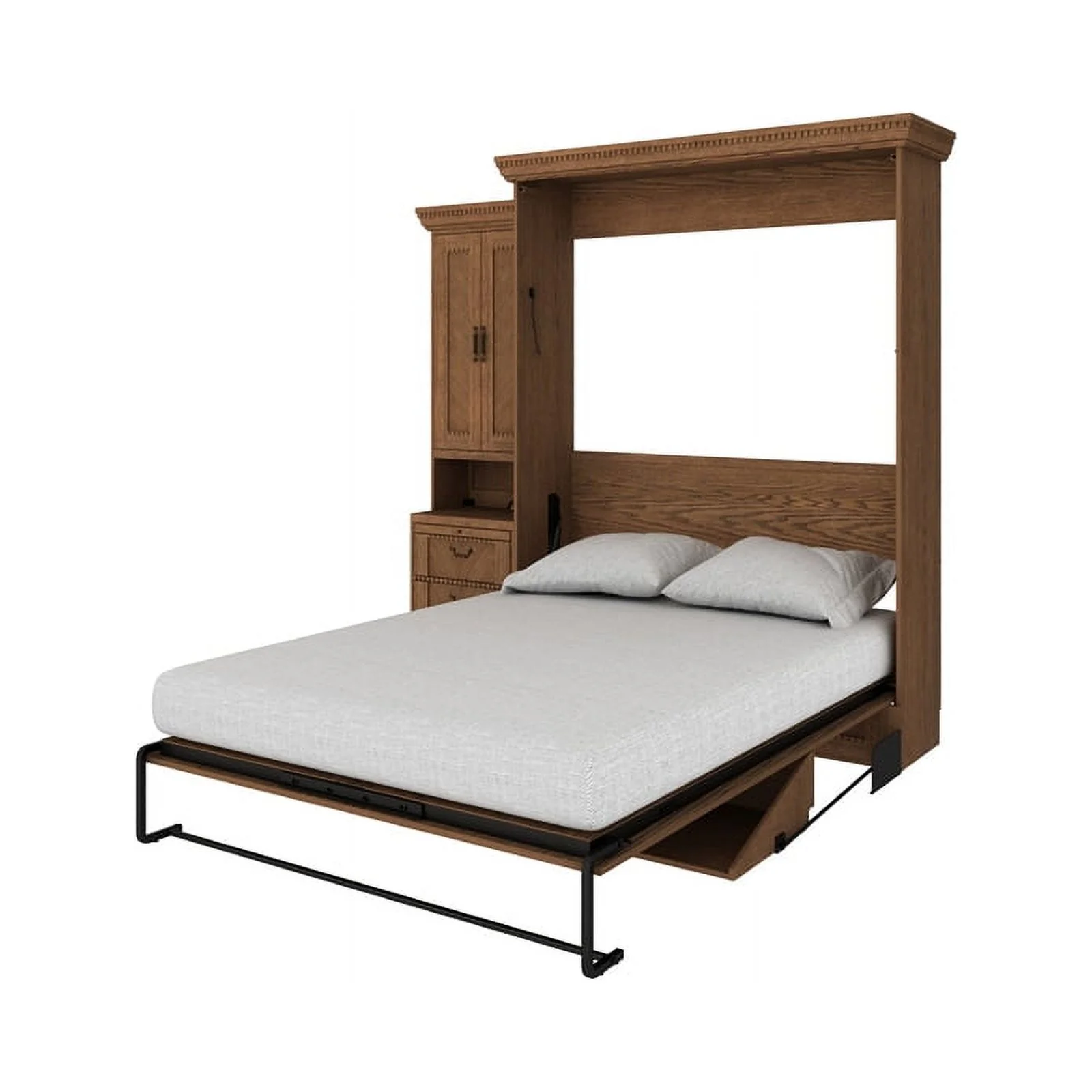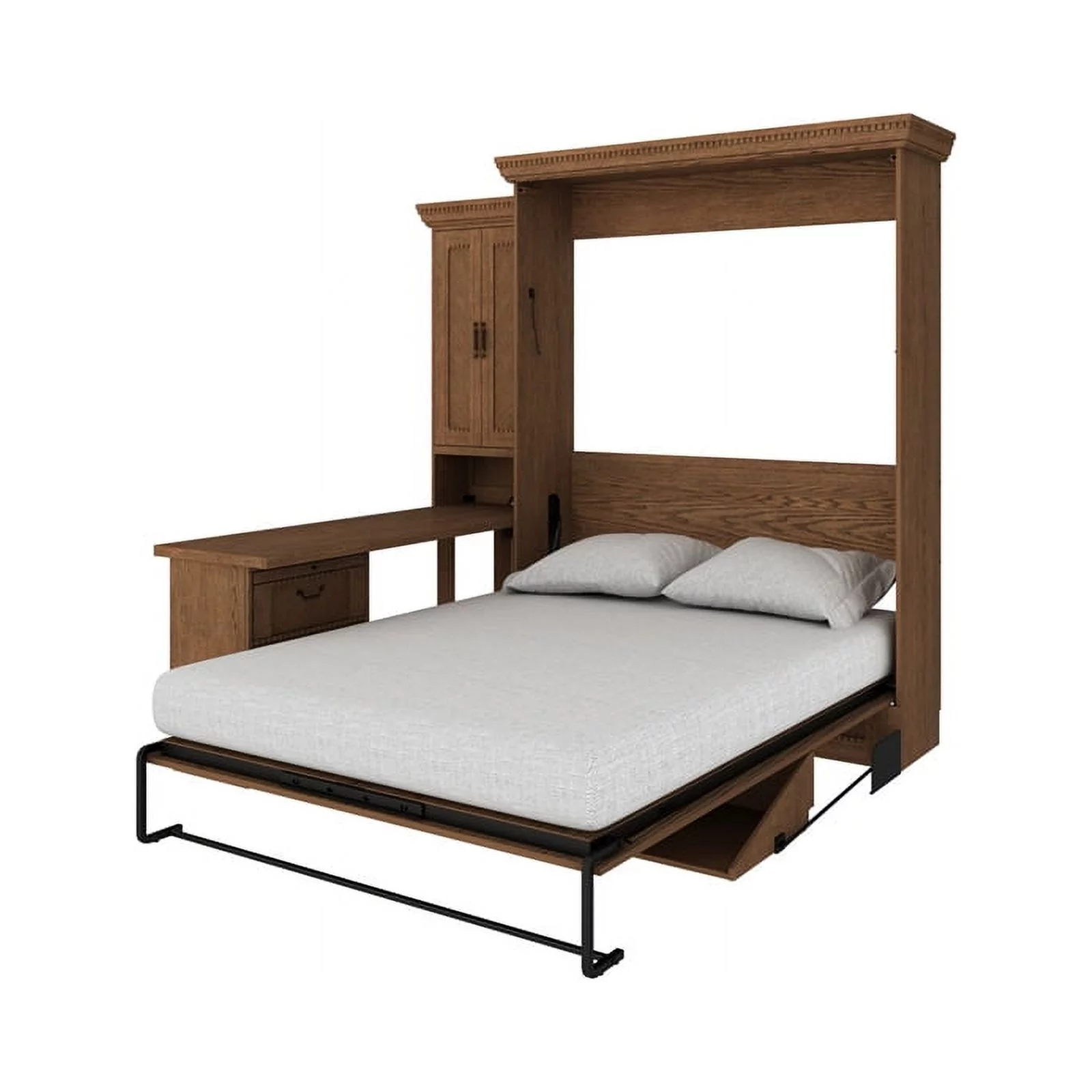 RoomAndLoft Queen Wood Murphy Wall Desk Bed & 2 Shelf Storage Units in Brown