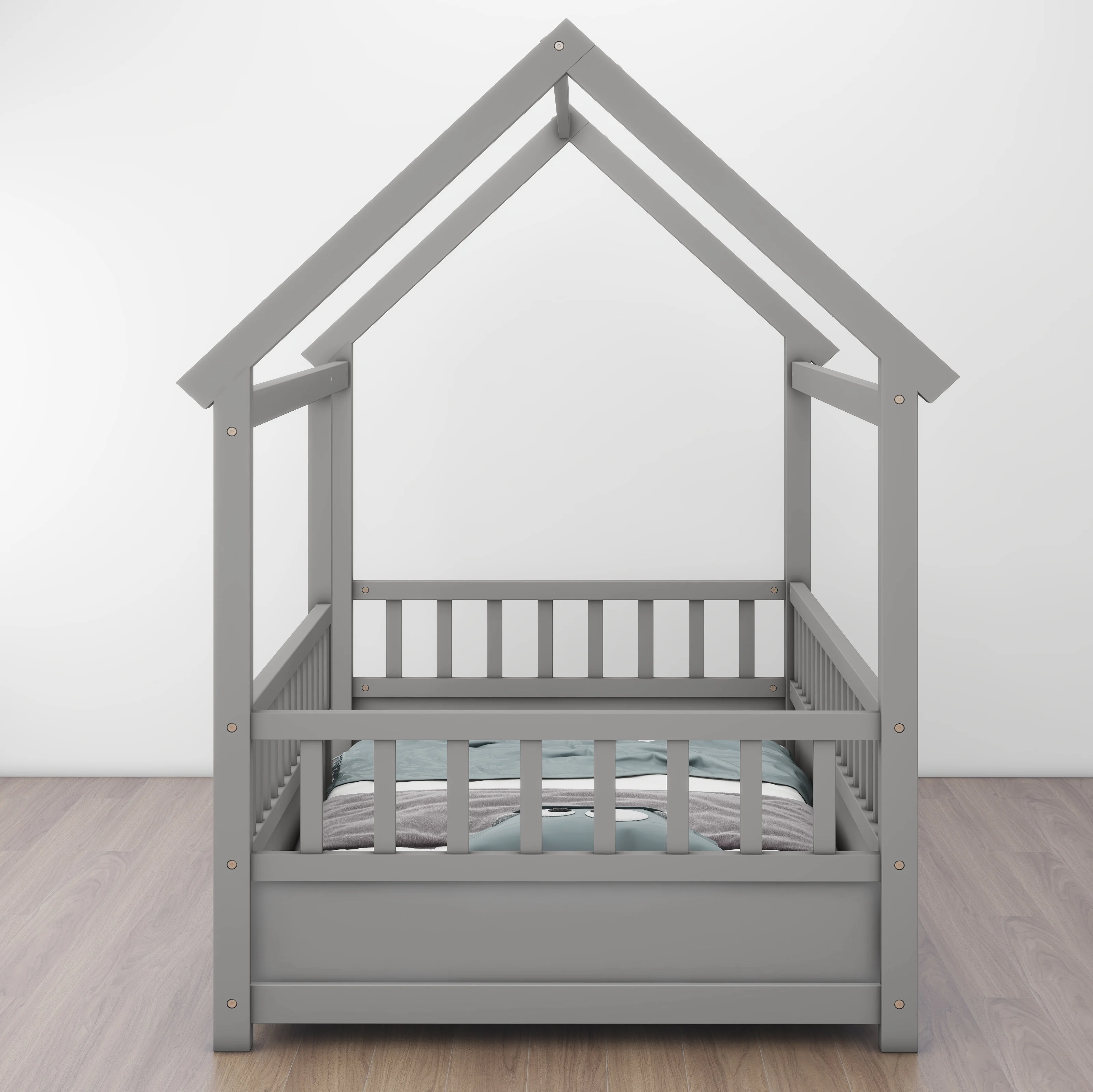 Livspace Twin over Full/Twin Bunk Bed, Convertible Bottom Bed, Storage Shelves and Drawers, Gray