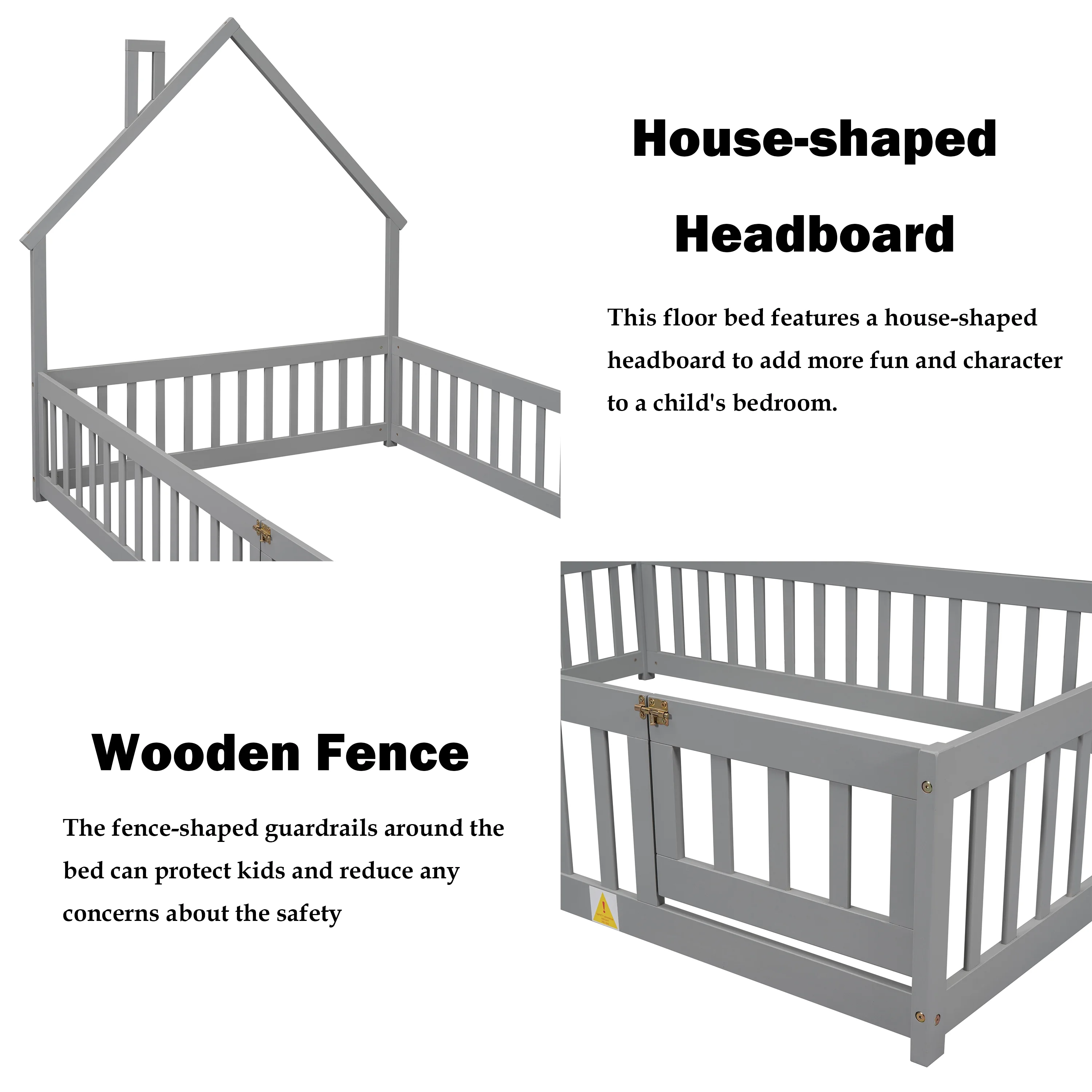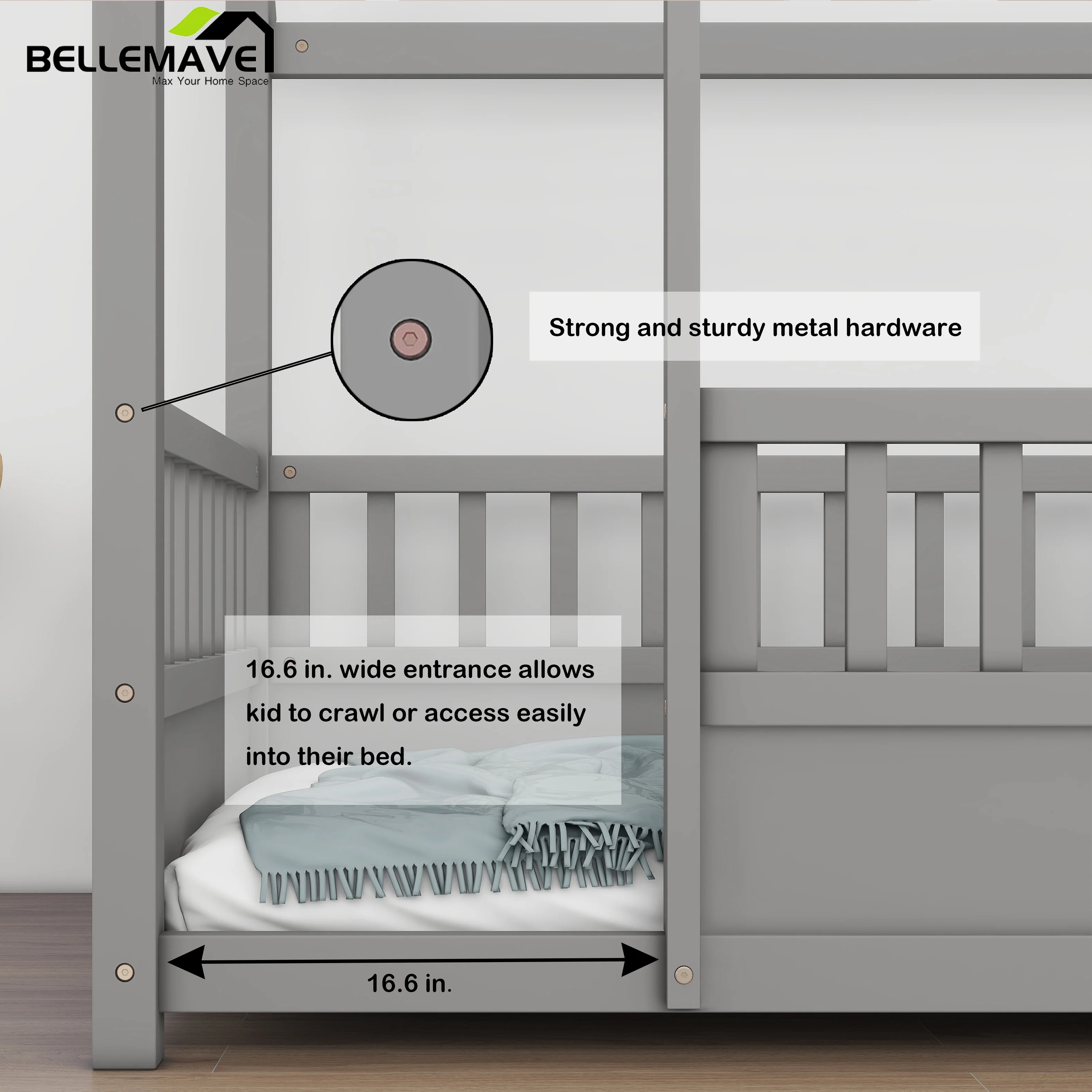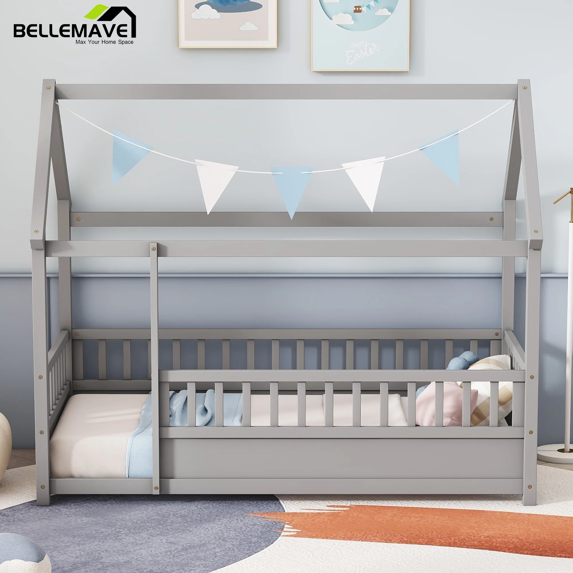 Leadzm Twin over Full/Twin Bunk Bed, Convertible Bottom Bed, Storage Shelves and Drawers, Gray