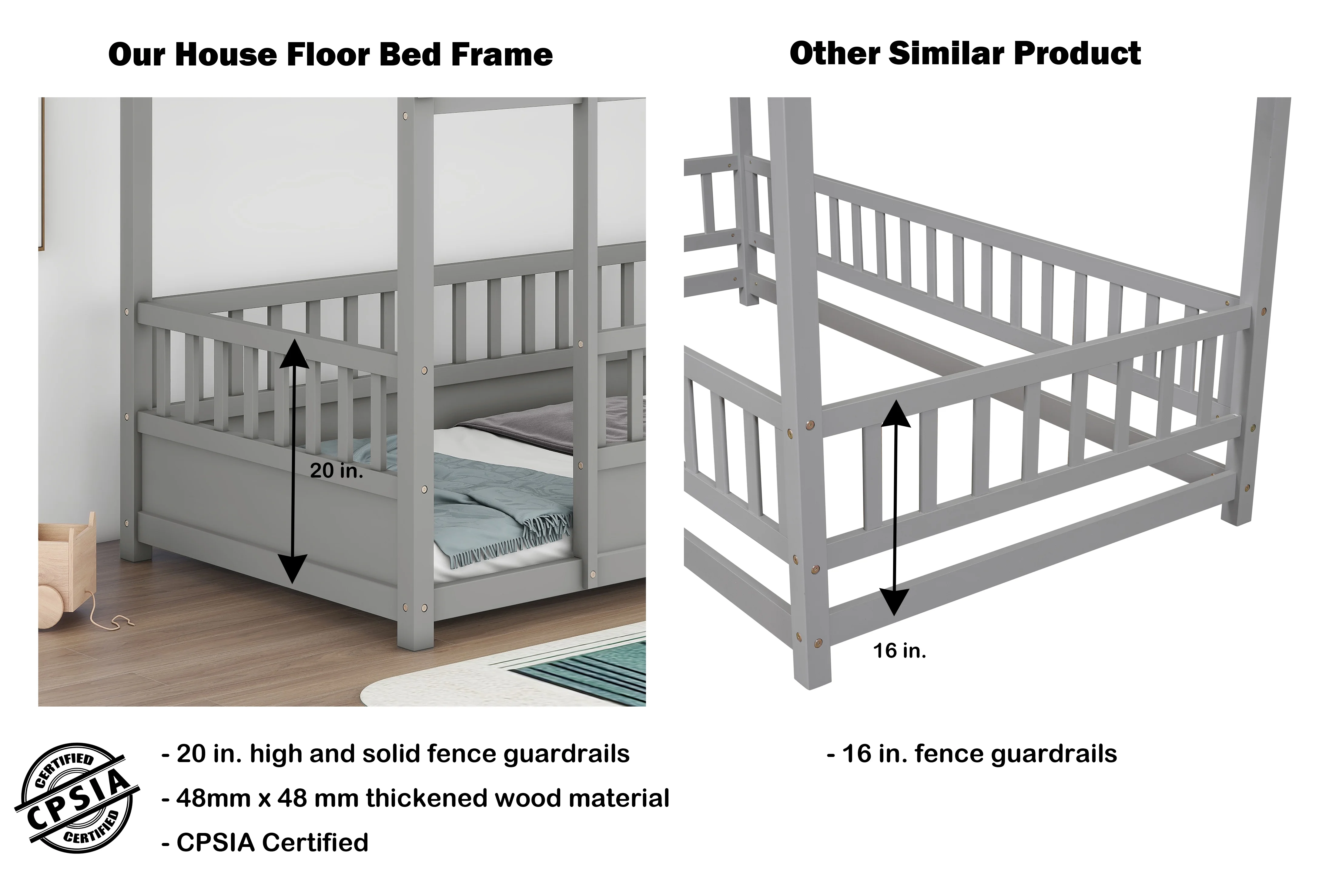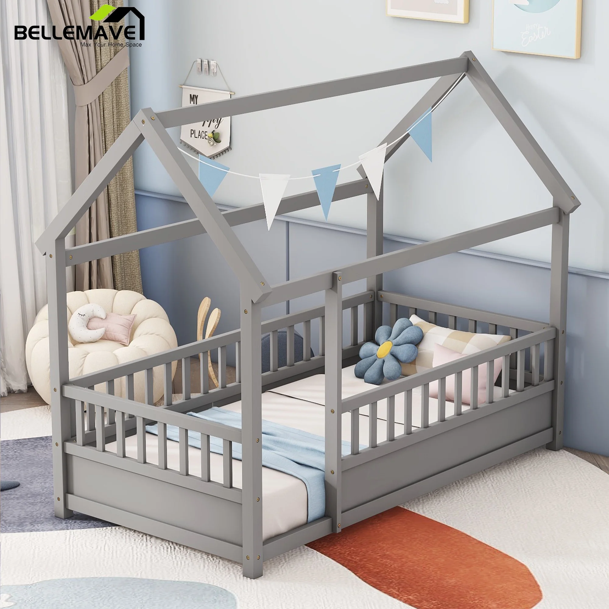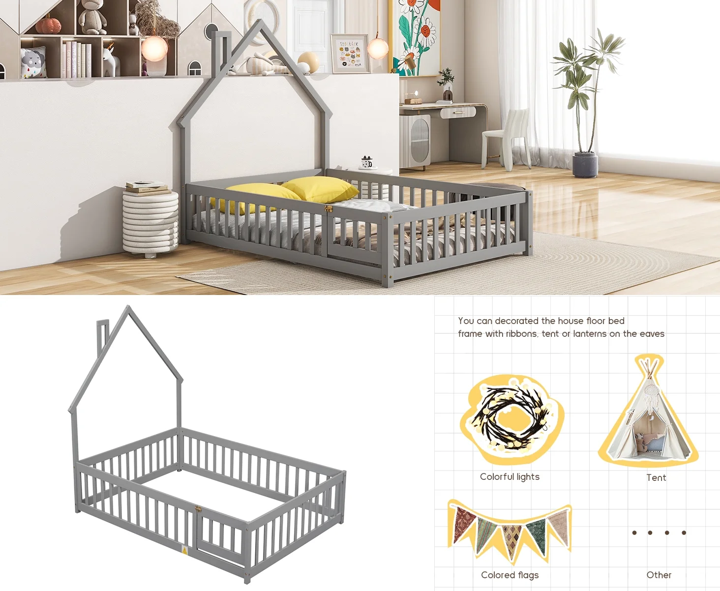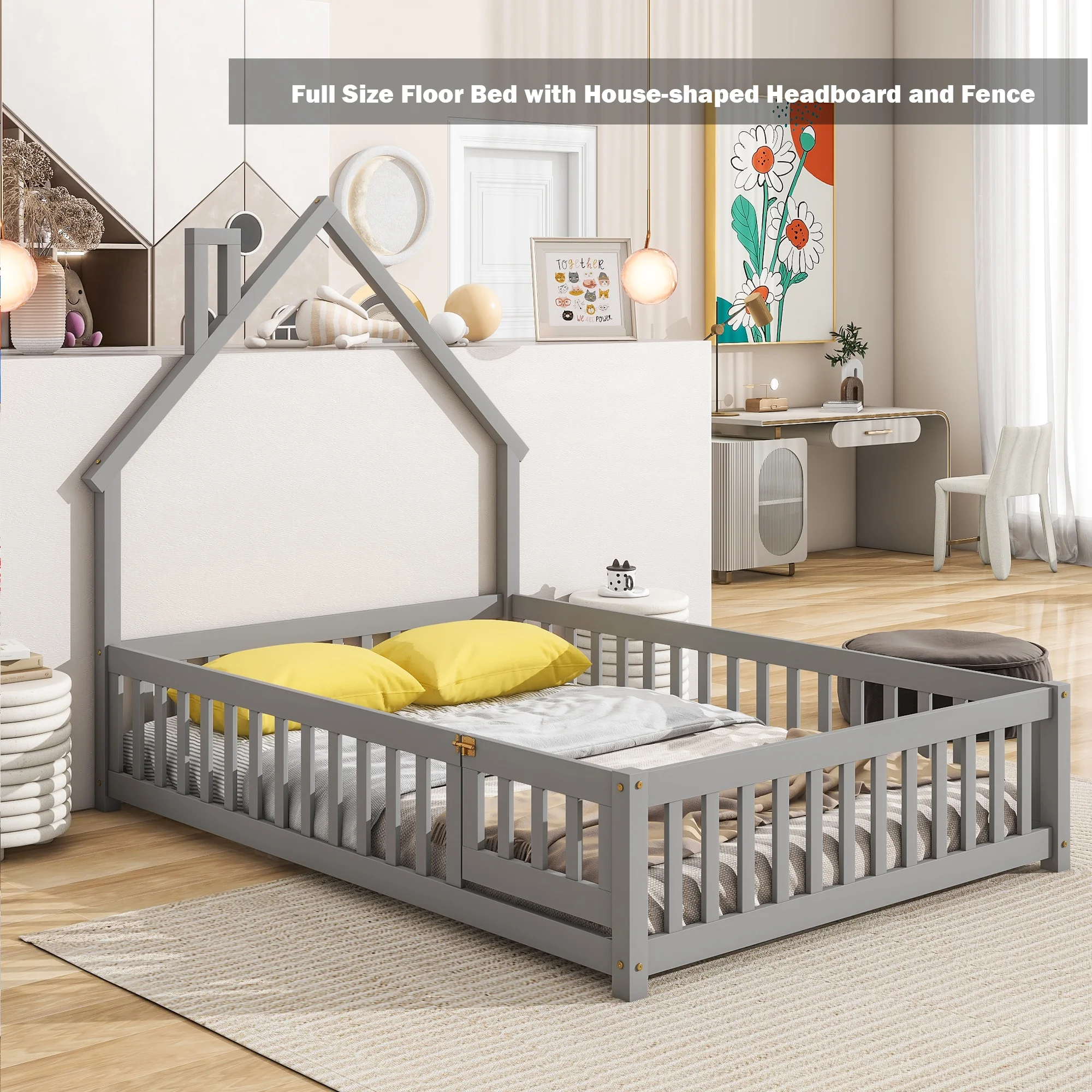 Leadzm Twin over Full/Twin Bunk Bed, Convertible Bottom Bed, Storage Shelves and Drawers, Gray