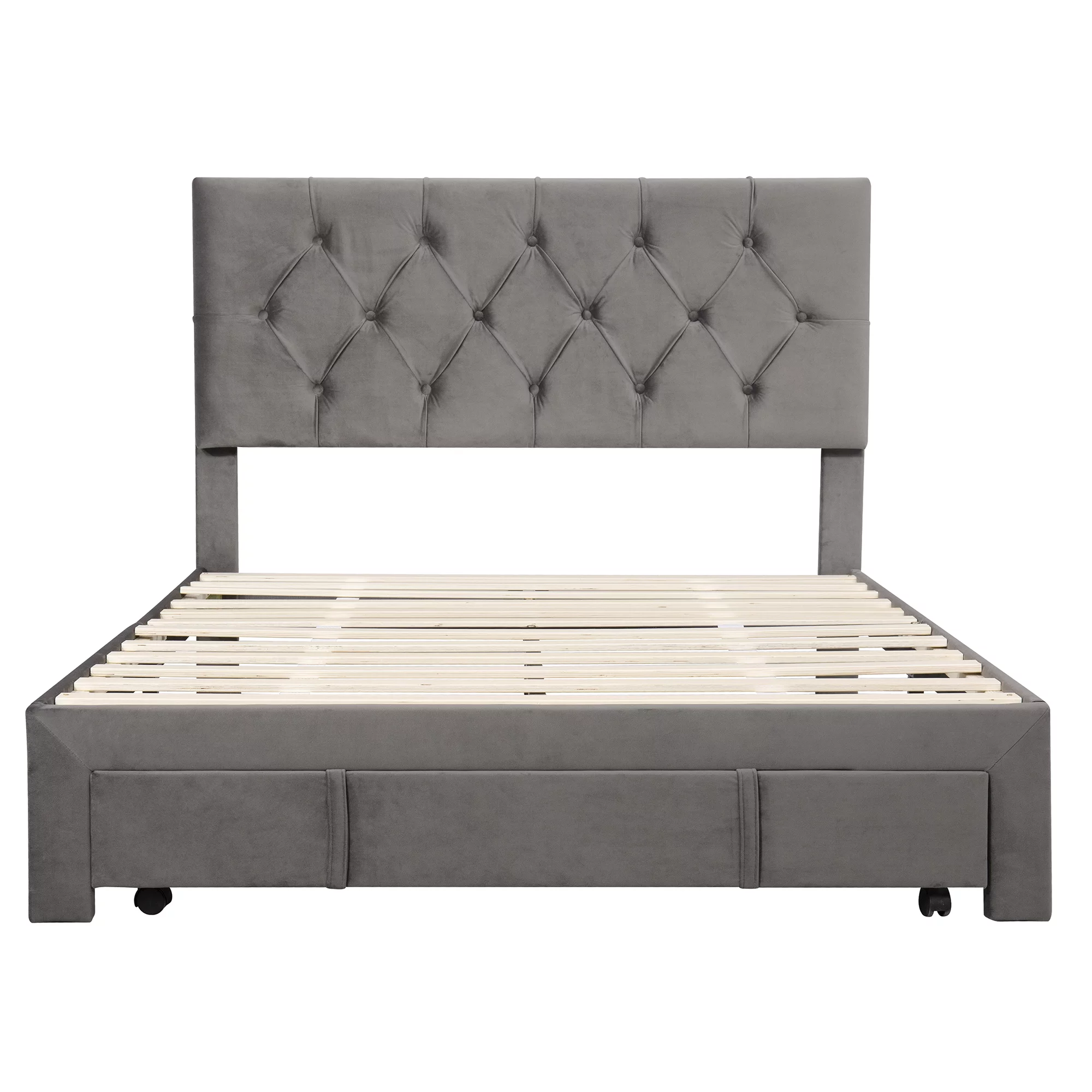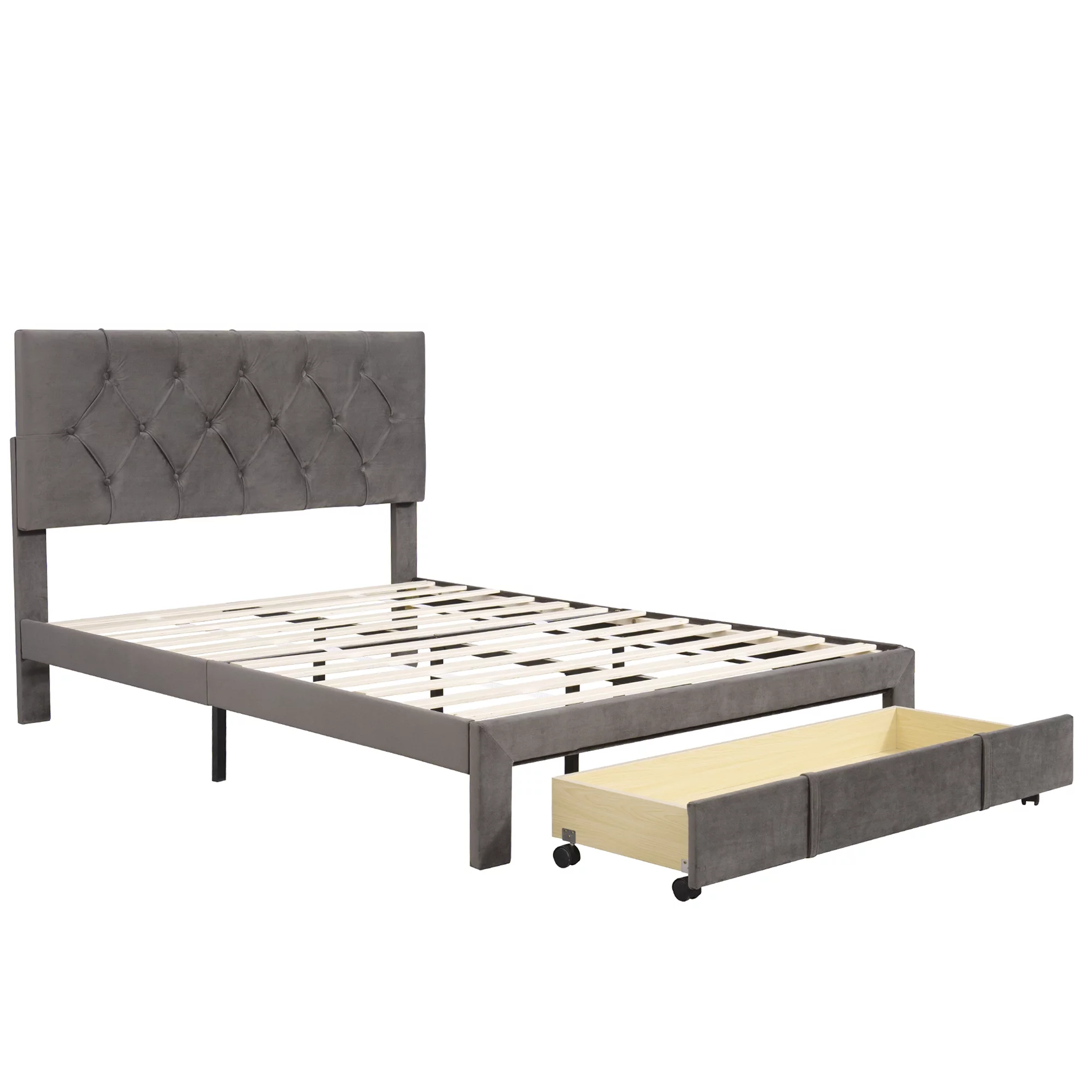 ikayaa Full Size Storage Bed Upholstered Platform Bed with a Big Drawer - Grey