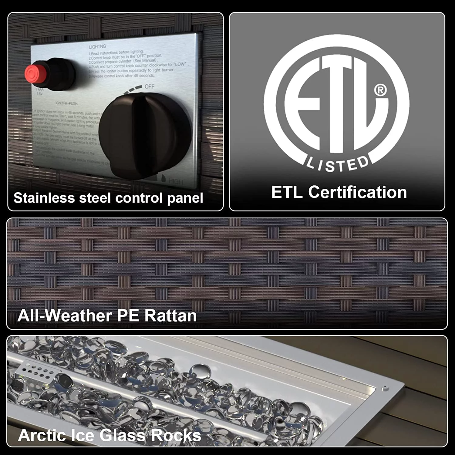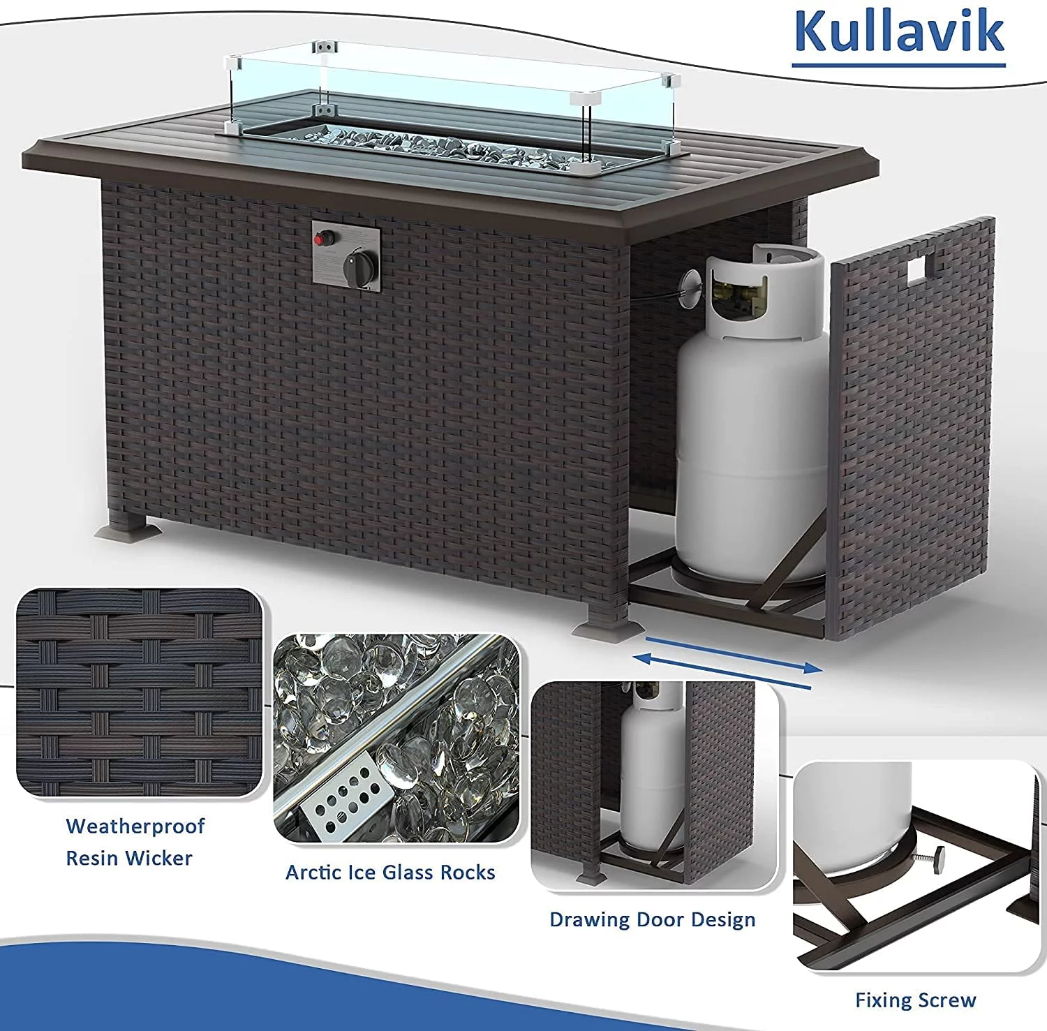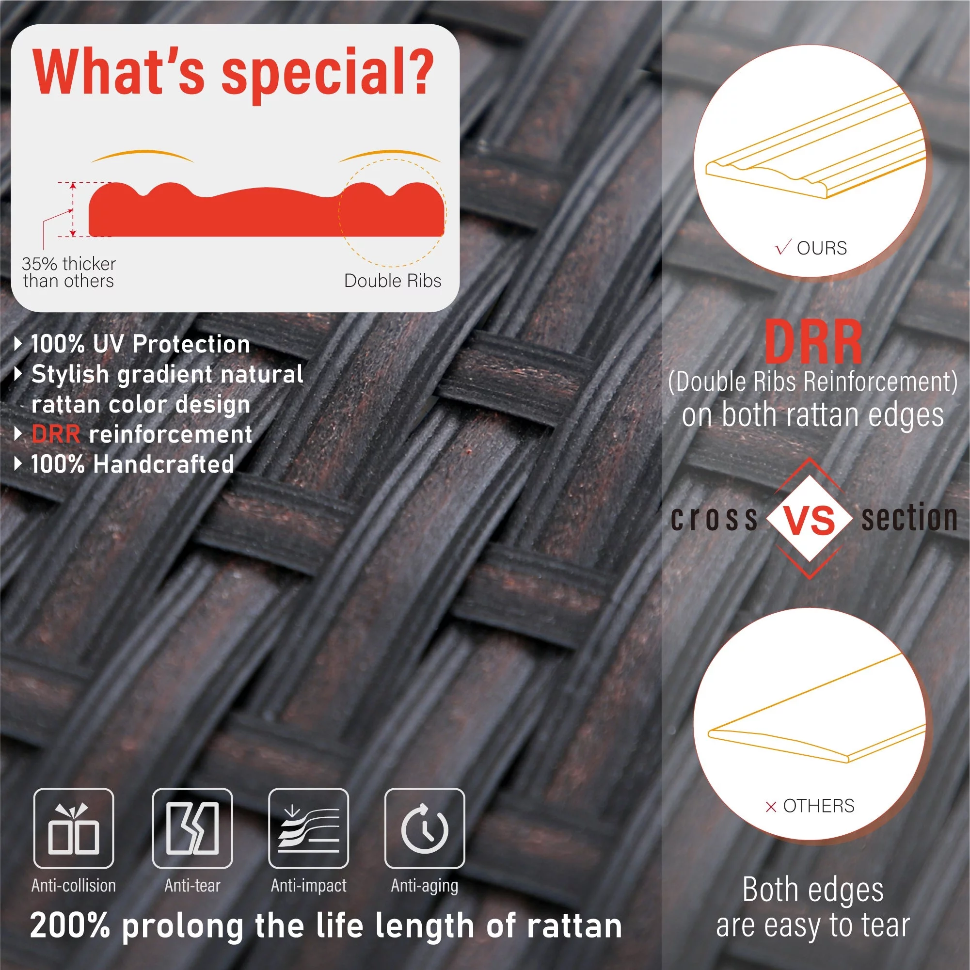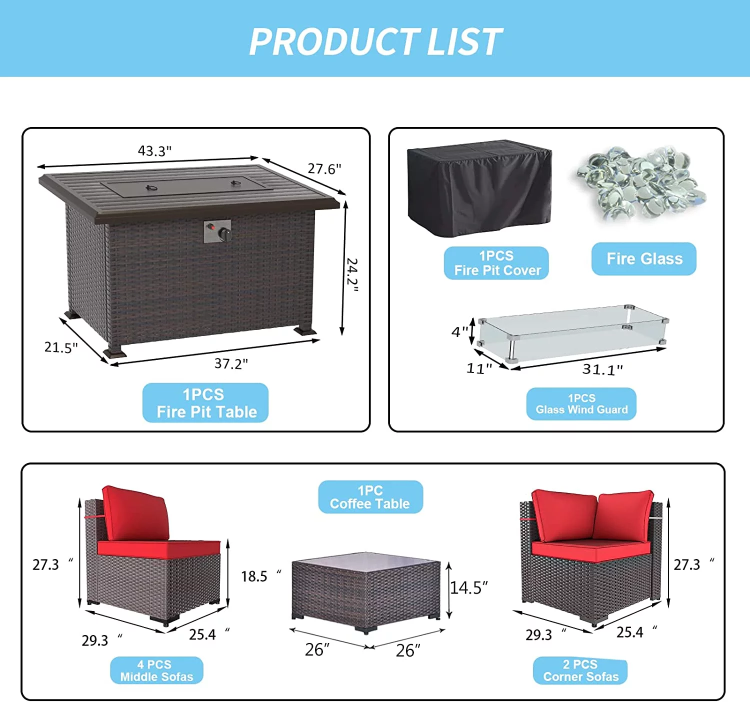 Gotland Outdoor Patio Furniture Set 8 Pieces Rattan Wicker Sectional Sofa with 43.3" Gas Fire Pit Table,Red
