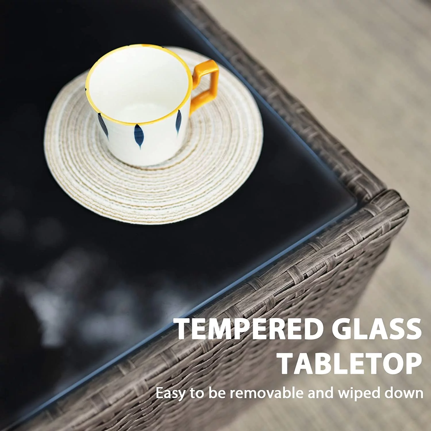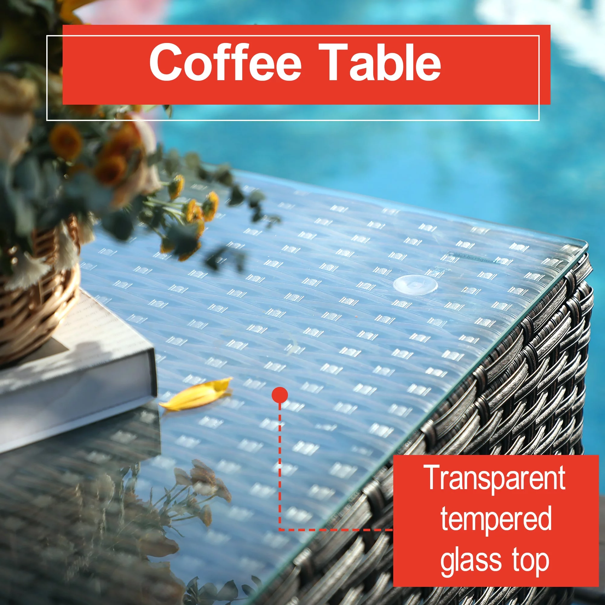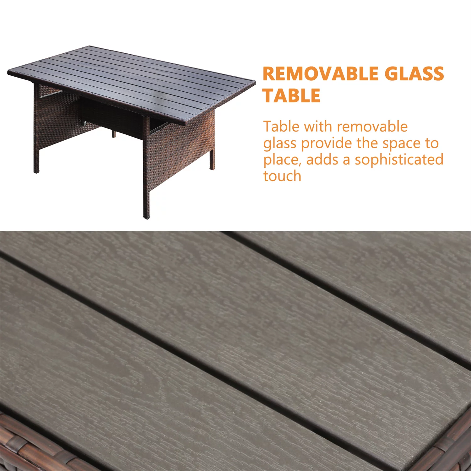 OC Orange-Casual 5-Piece Outdoor Sectional Sofa Set with Glass Coffee Table Grey Rattan & Dark Grey Cushion