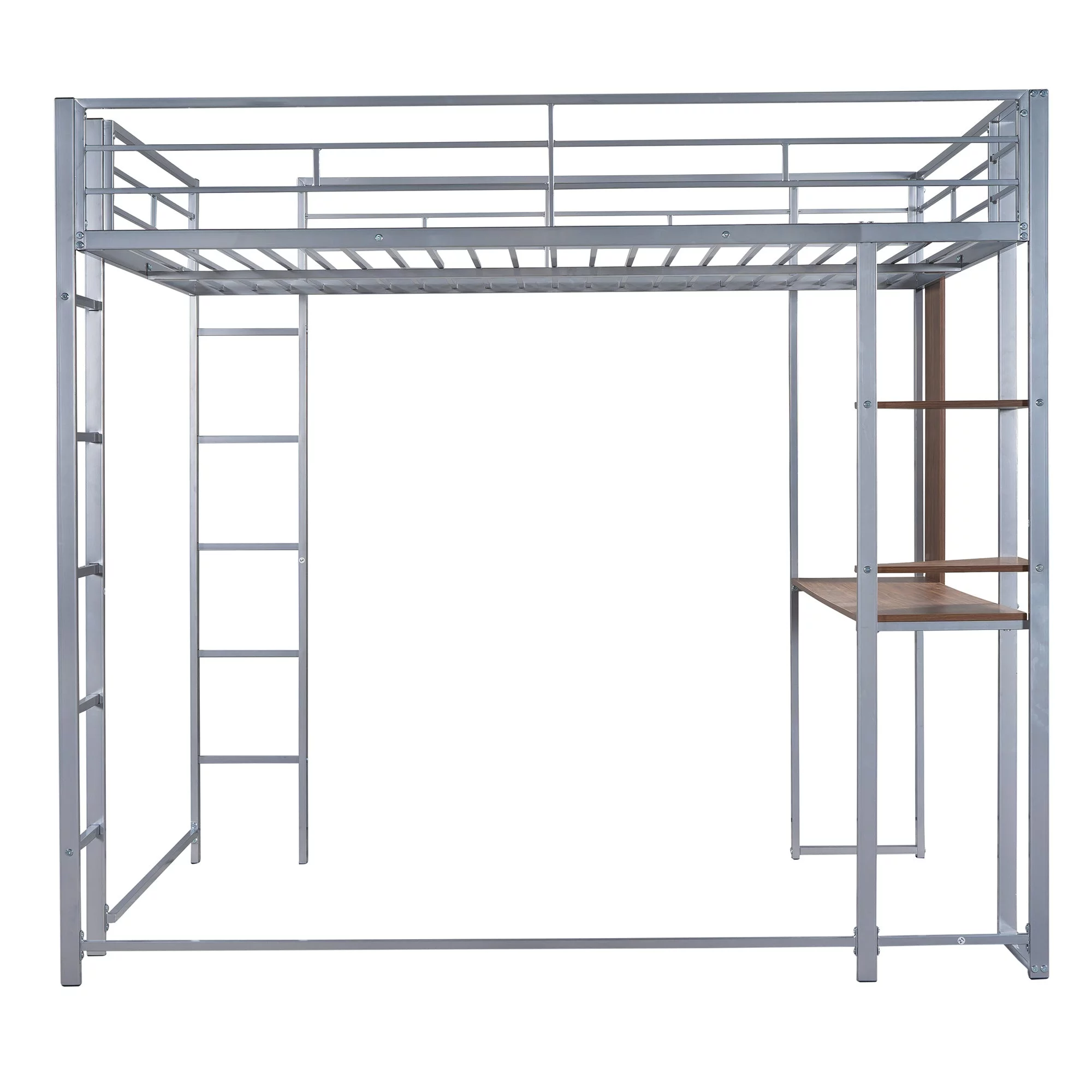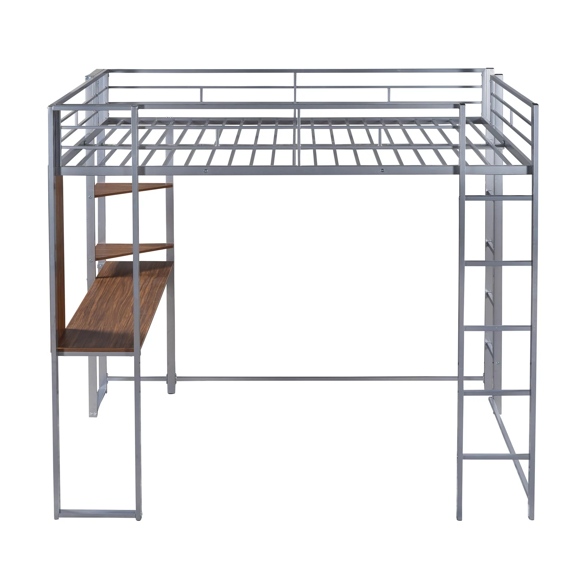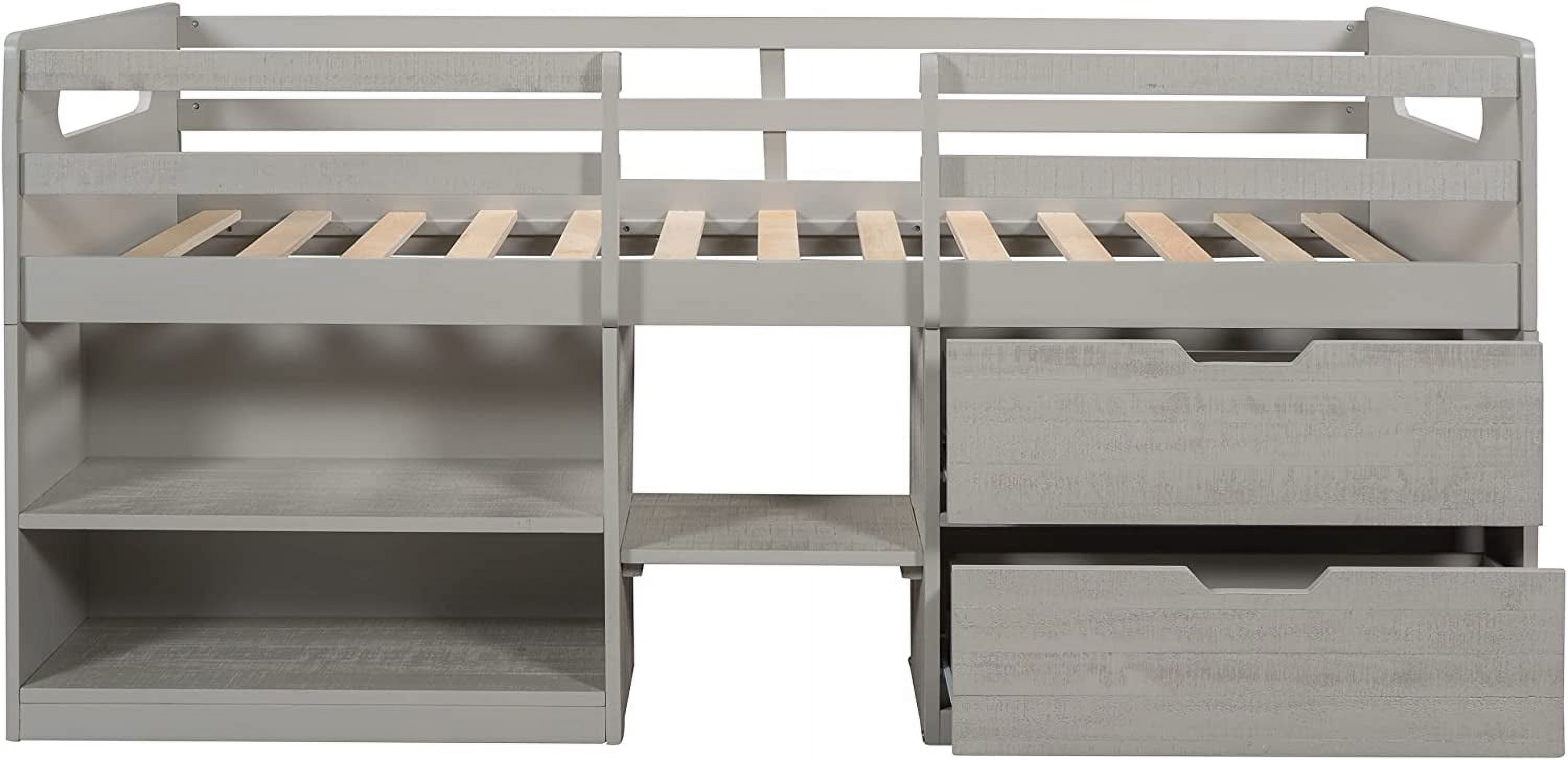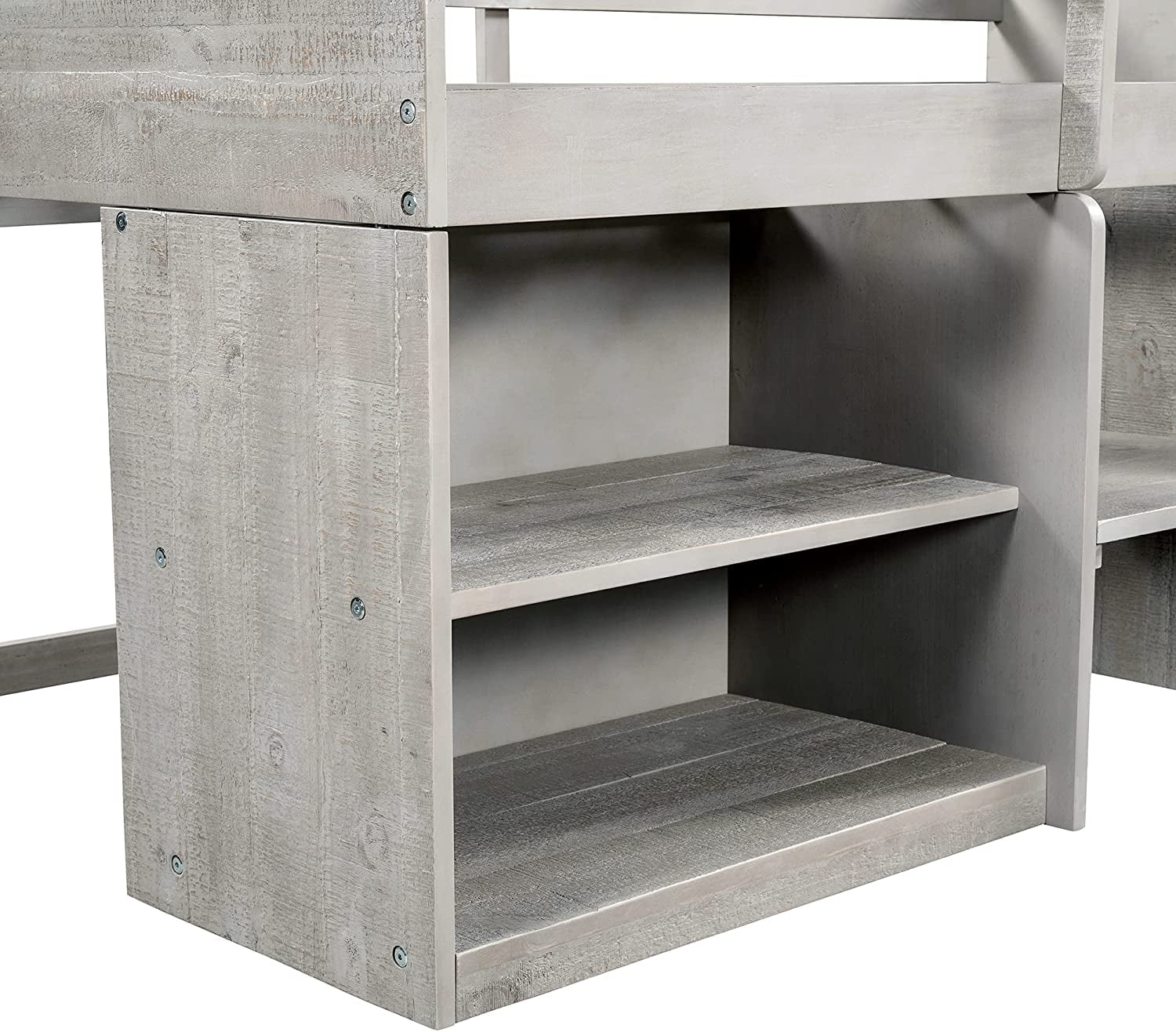 Full Size Loft Bed With Desk Ad Shelves, Solid Wood Loft Bed Frame With Storage For Kids Tees Adults, Wood Slats Support (Gray)