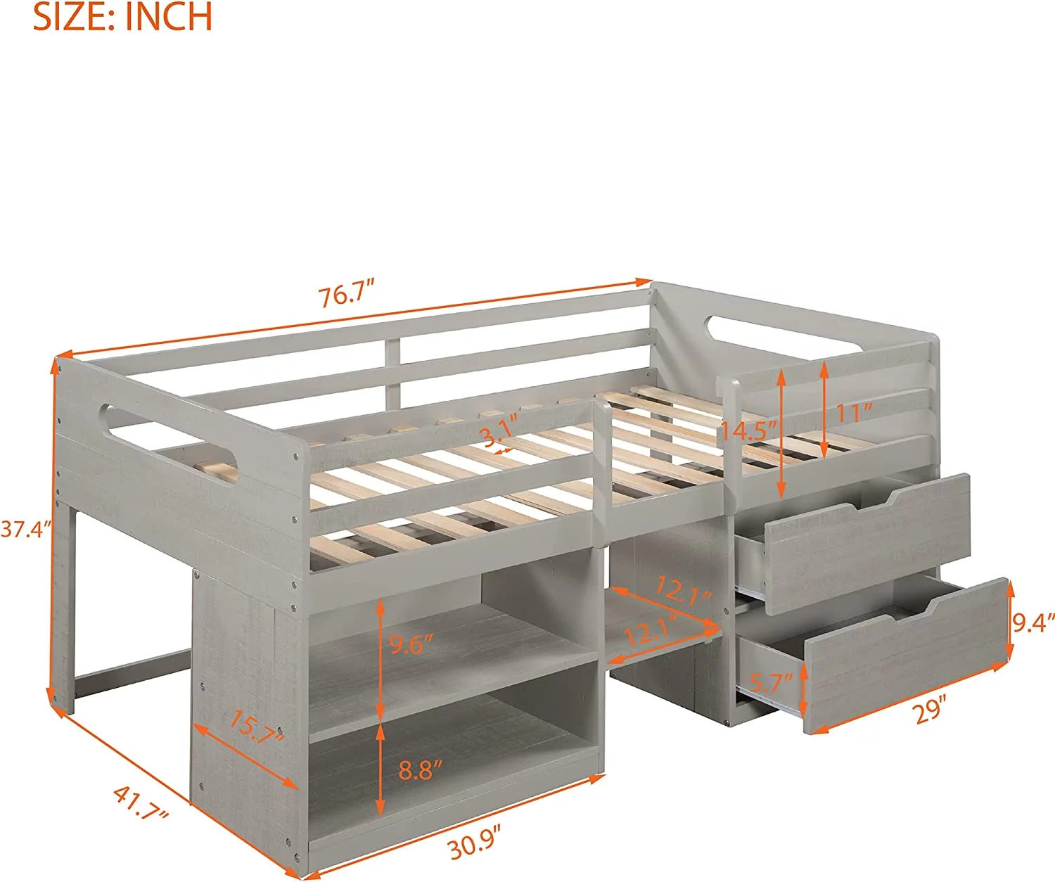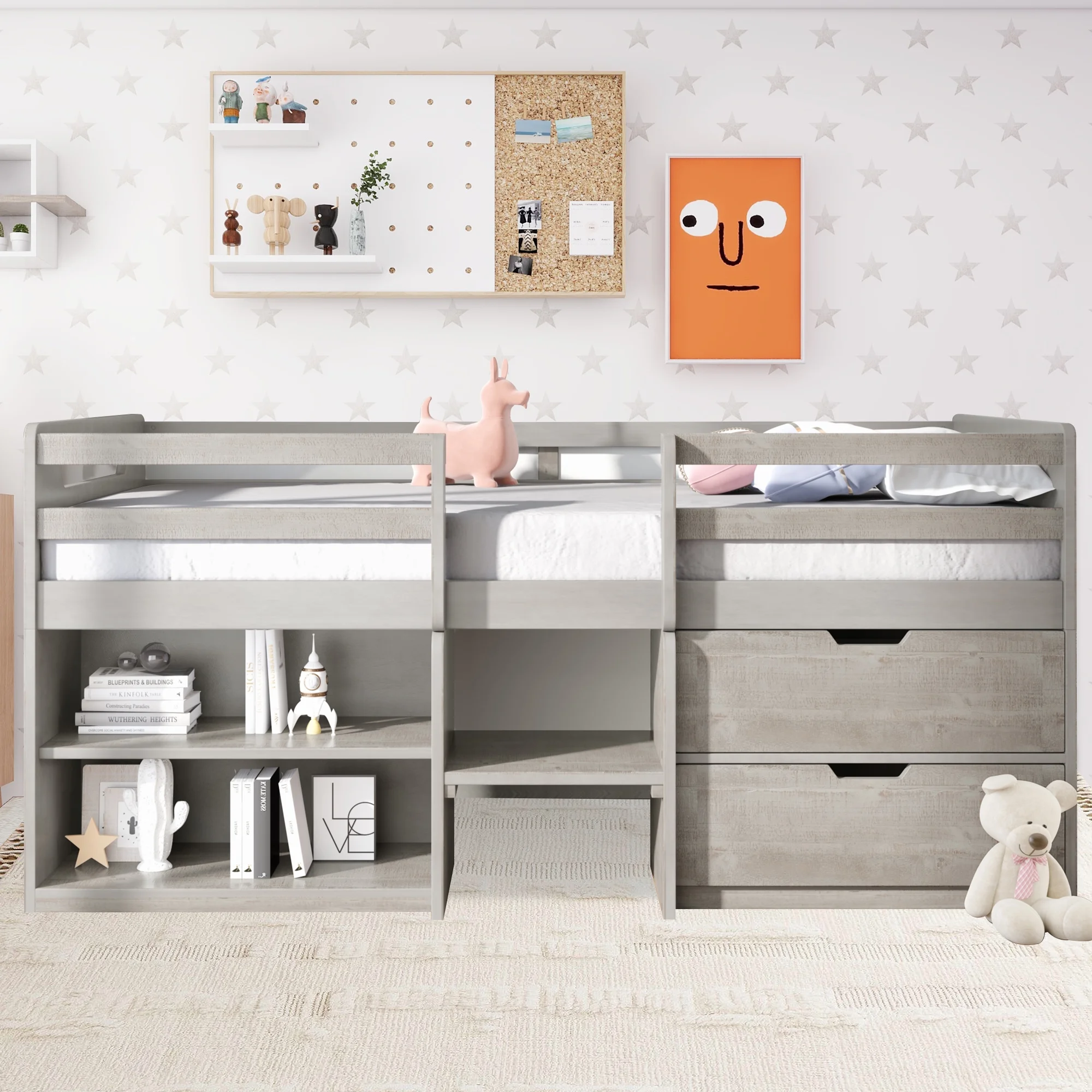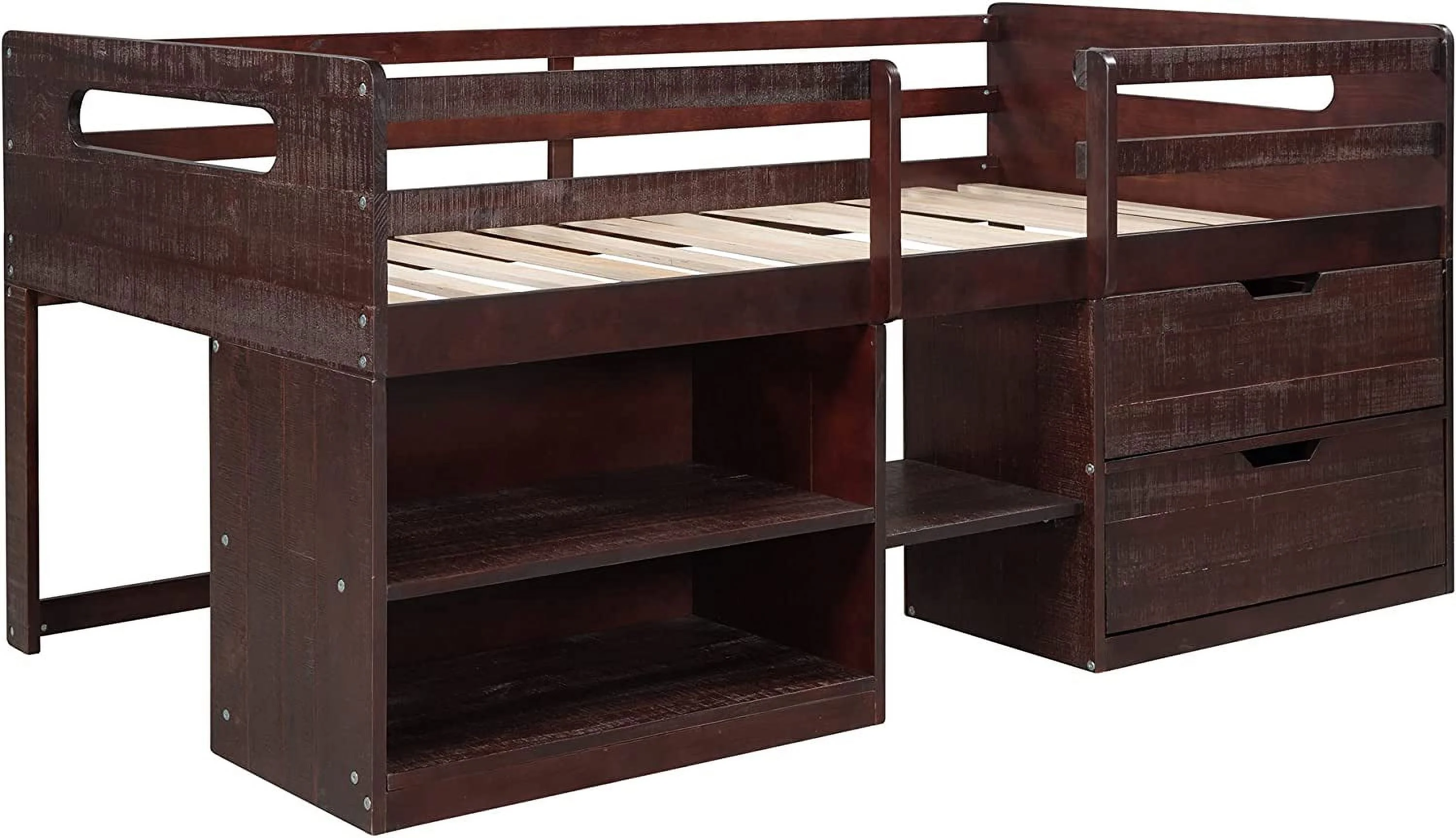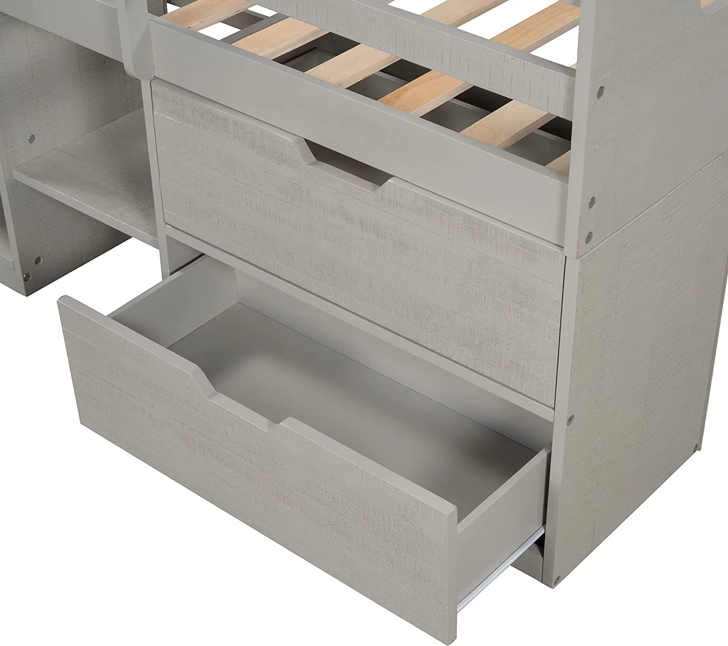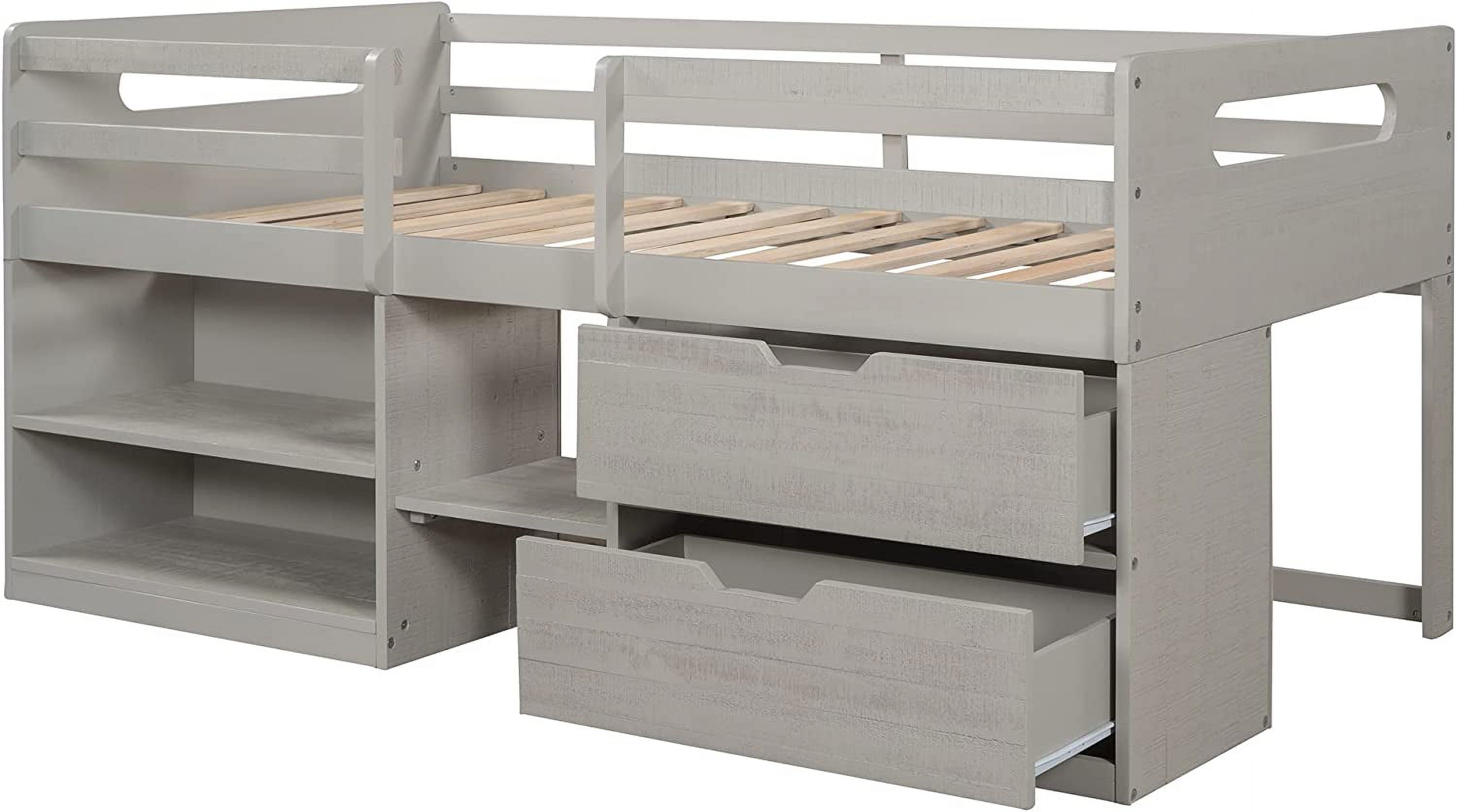 Full Size Loft Bed With Desk Ad Shelves, Solid Wood Loft Bed Frame With Storage For Kids Tees Adults, Wood Slats Support (Gray)