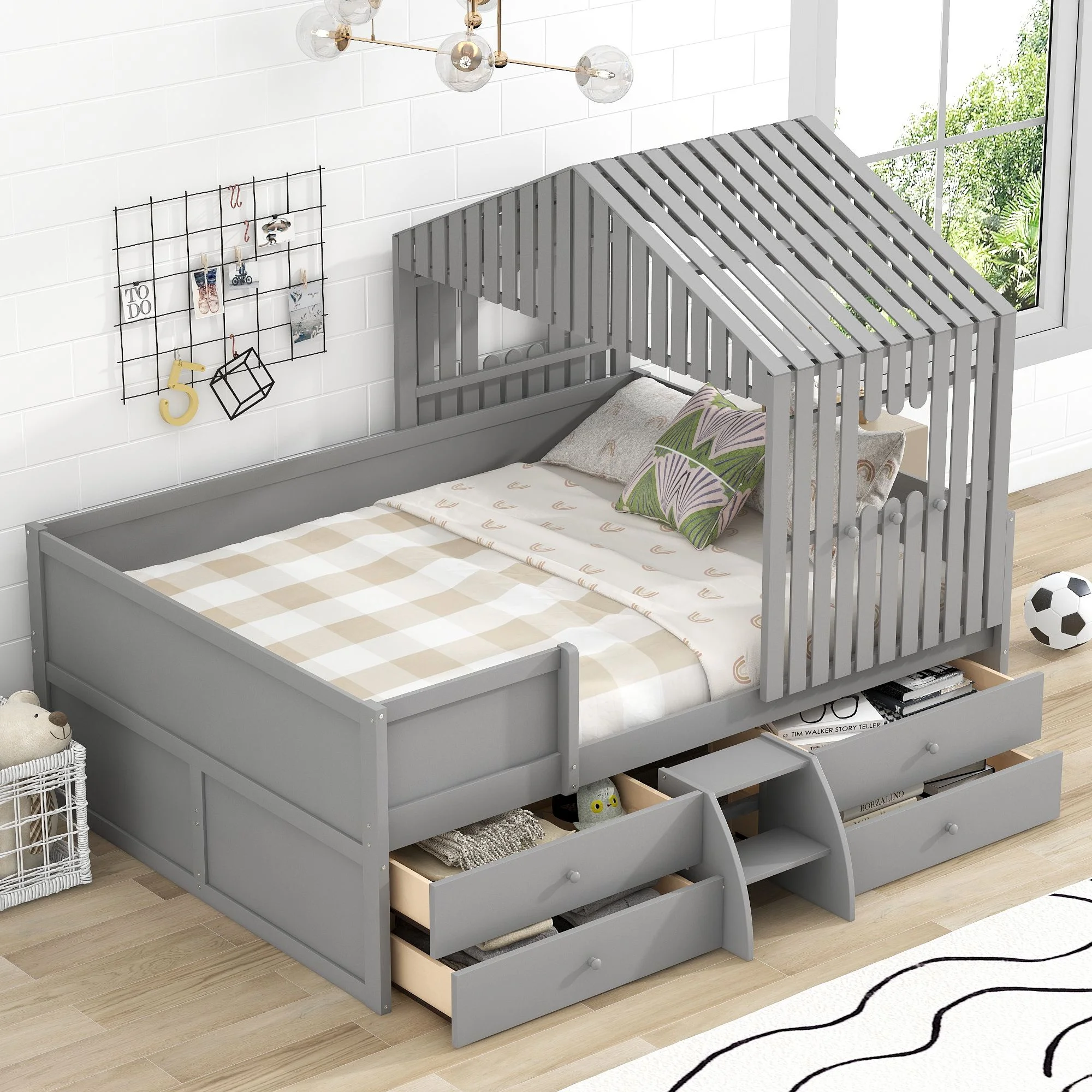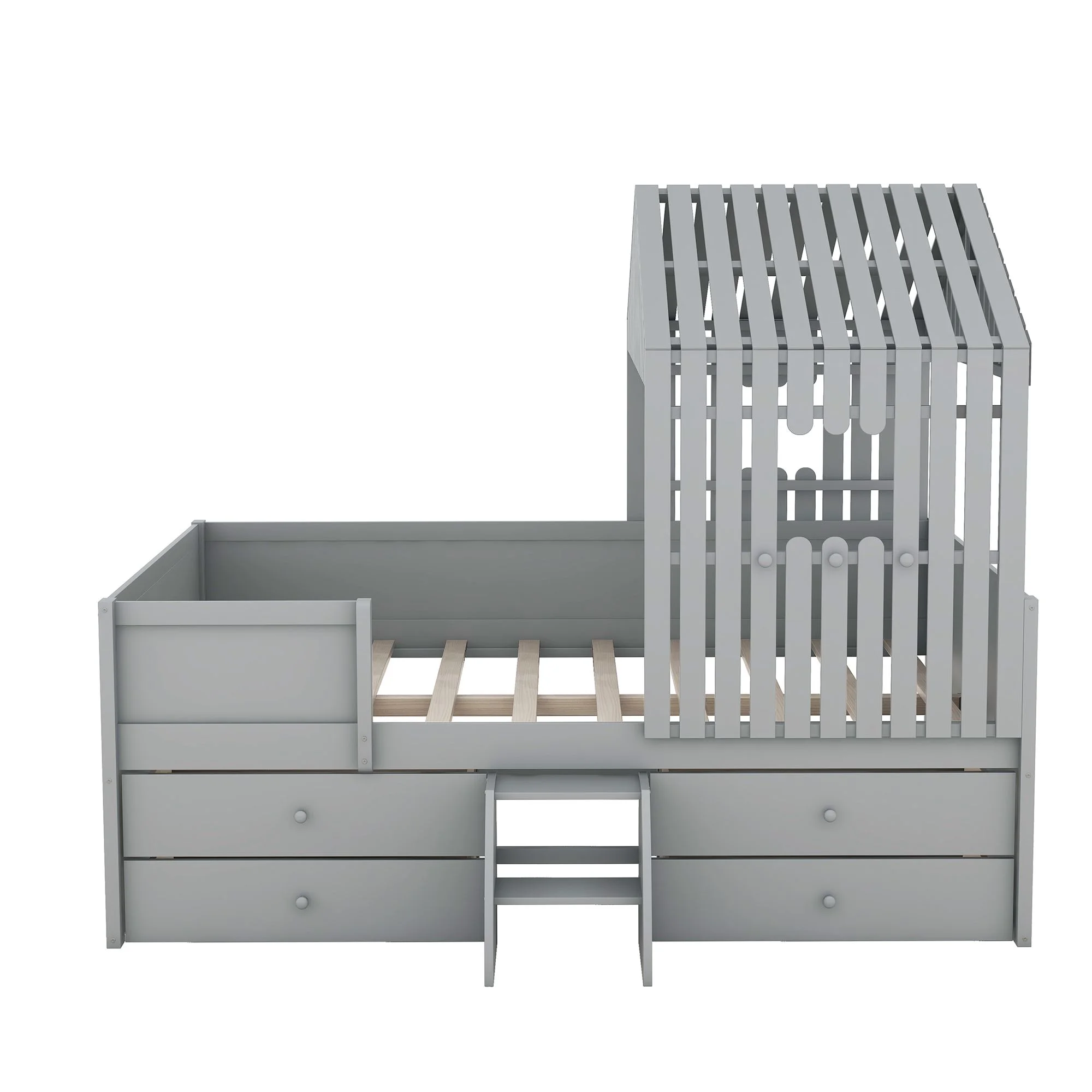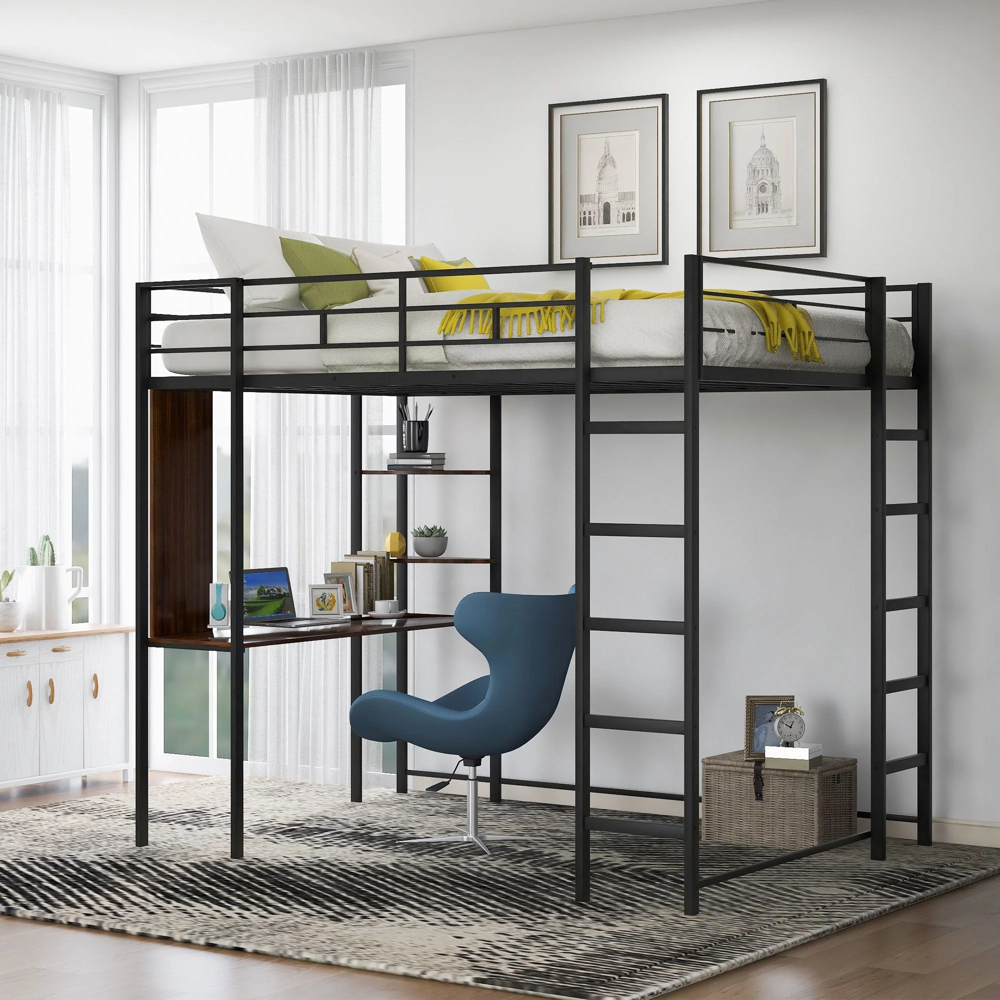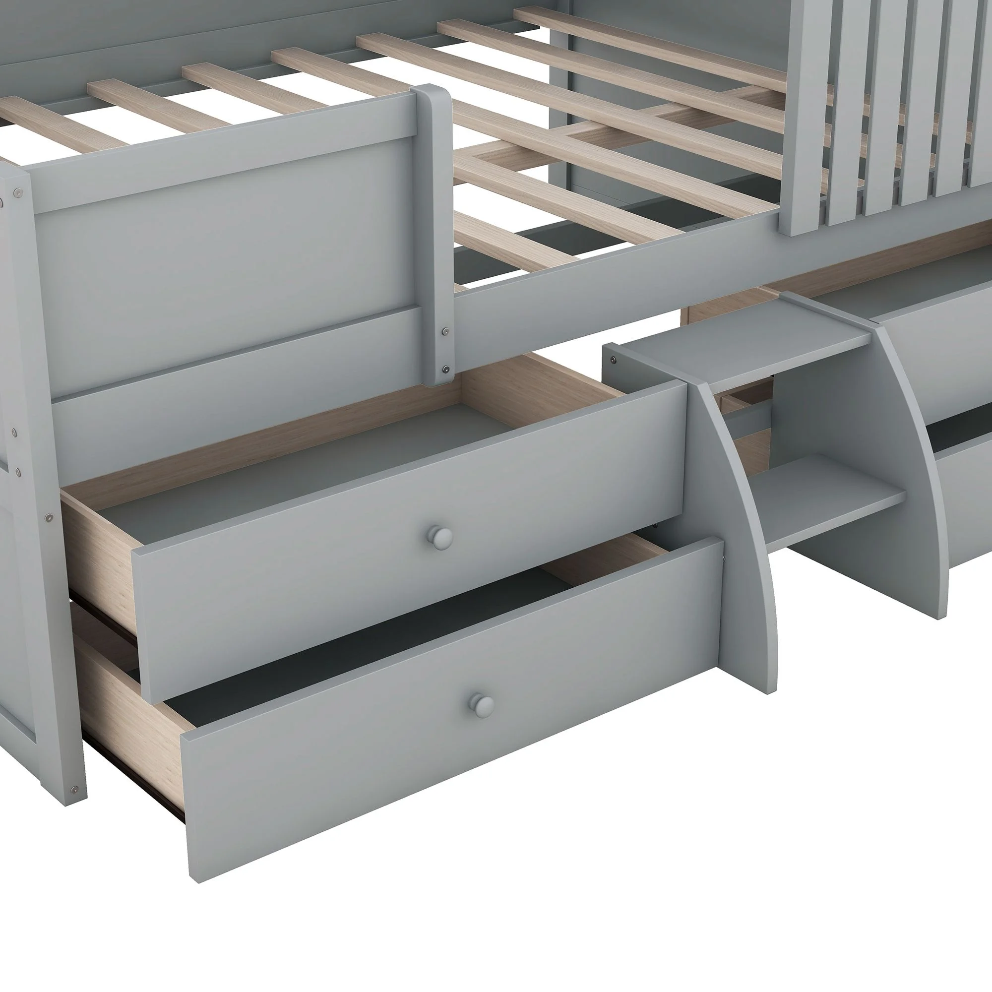 Full Size Loft Bed With Desk Ad Shelves, Solid Wood Loft Bed Frame With Storage For Kids Tees Adults, Wood Slats Support (Gray)