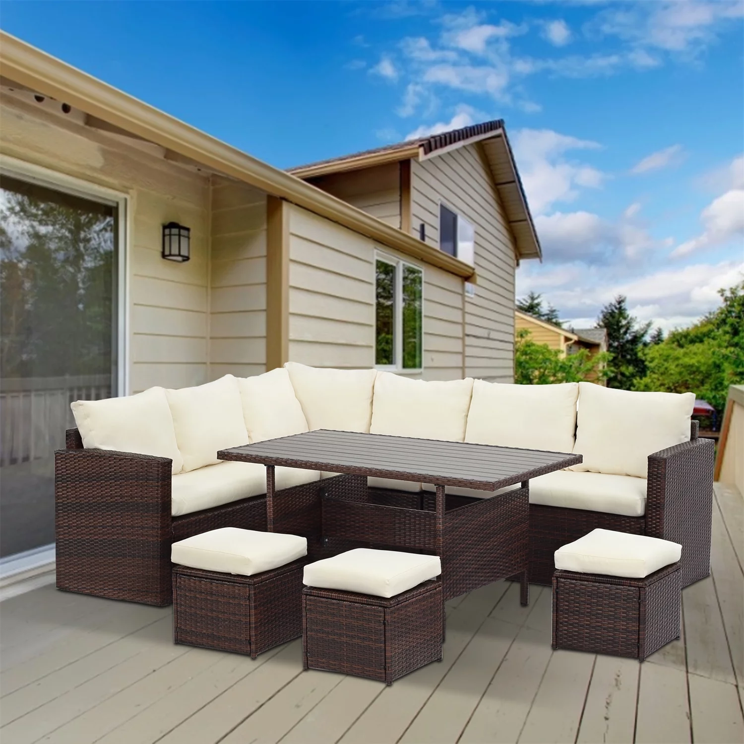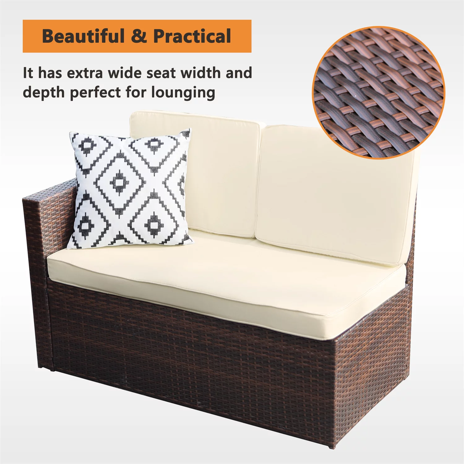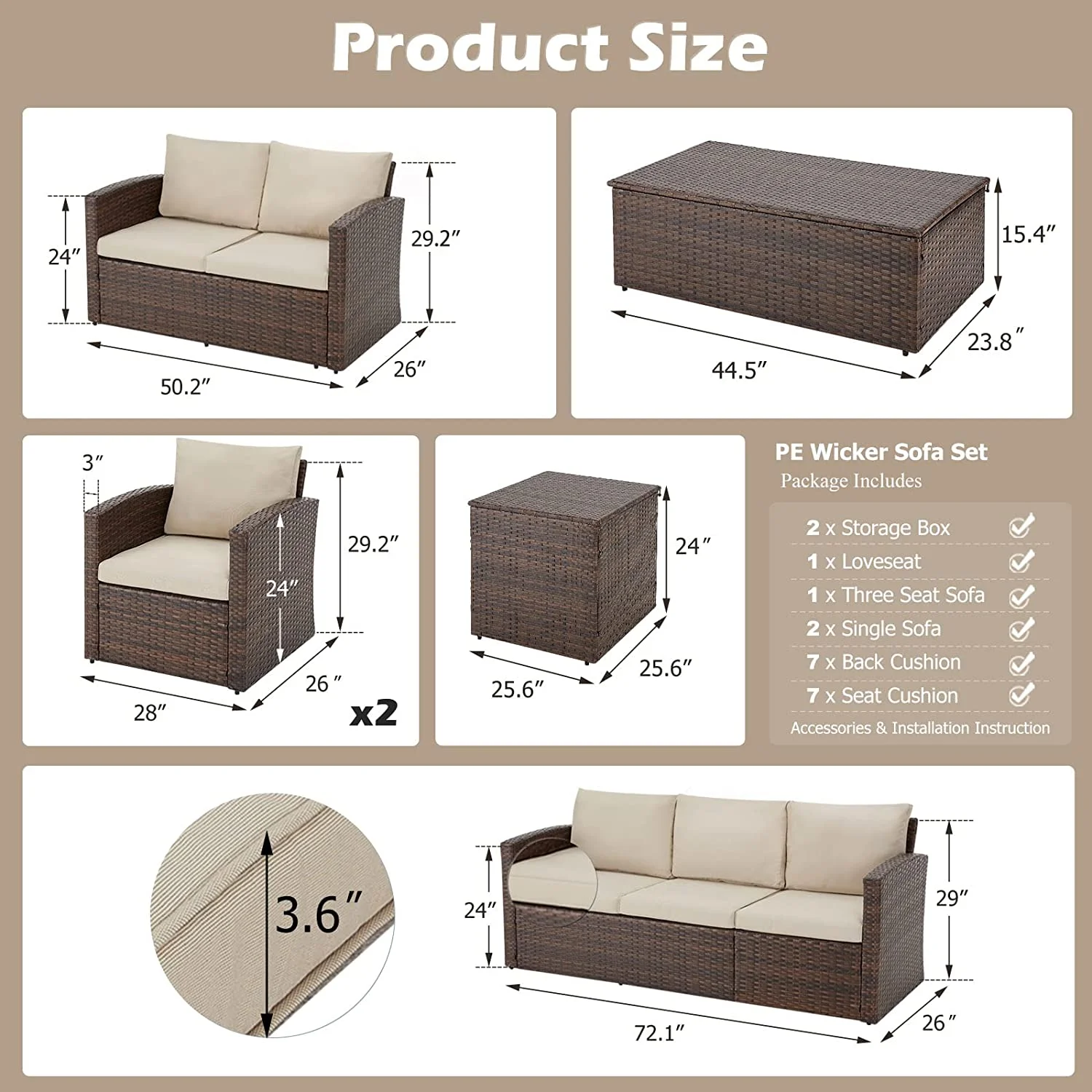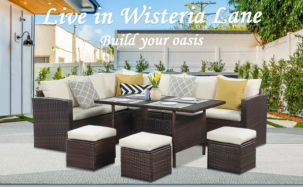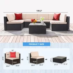 LACOO 7 Pieces Patio Conversation Set Outdoor Sectional Sofa Set PE Rattan, Beige