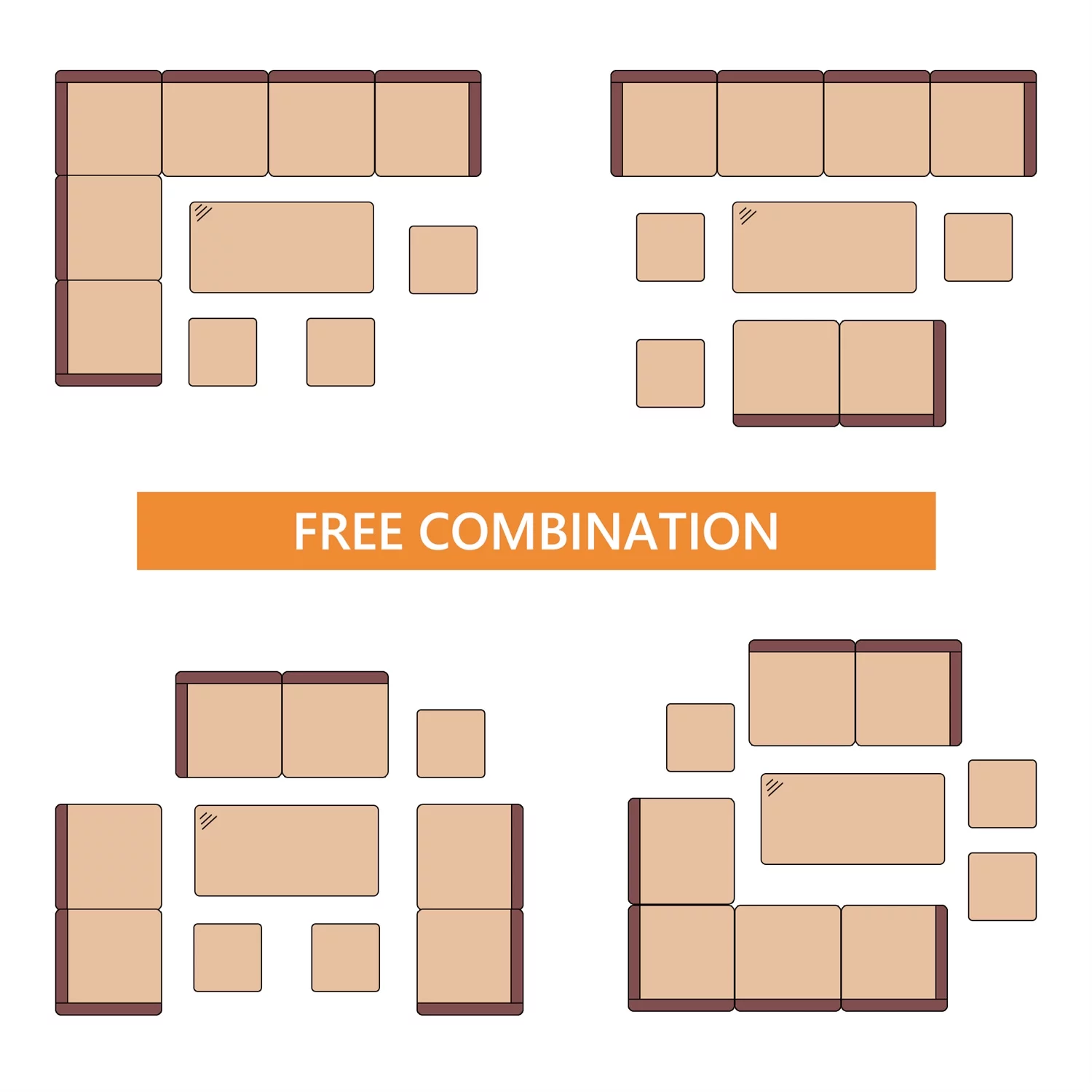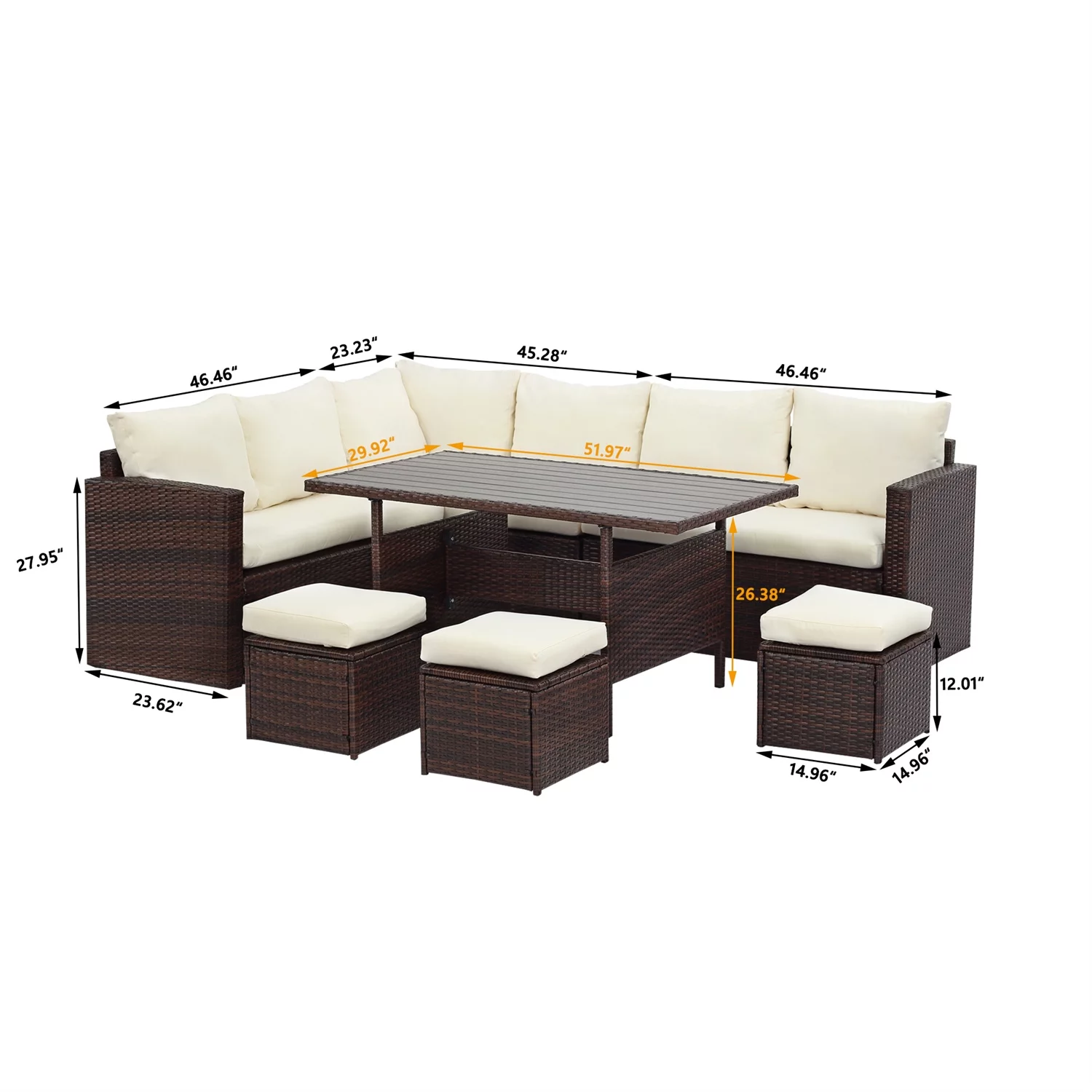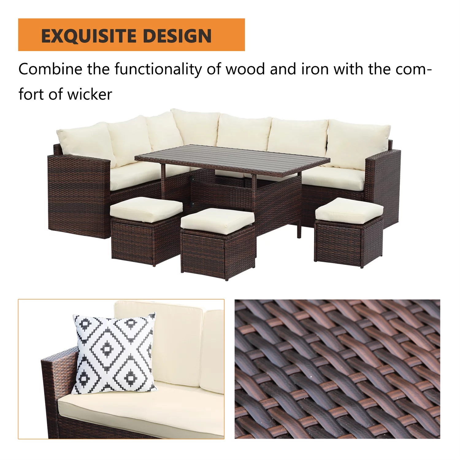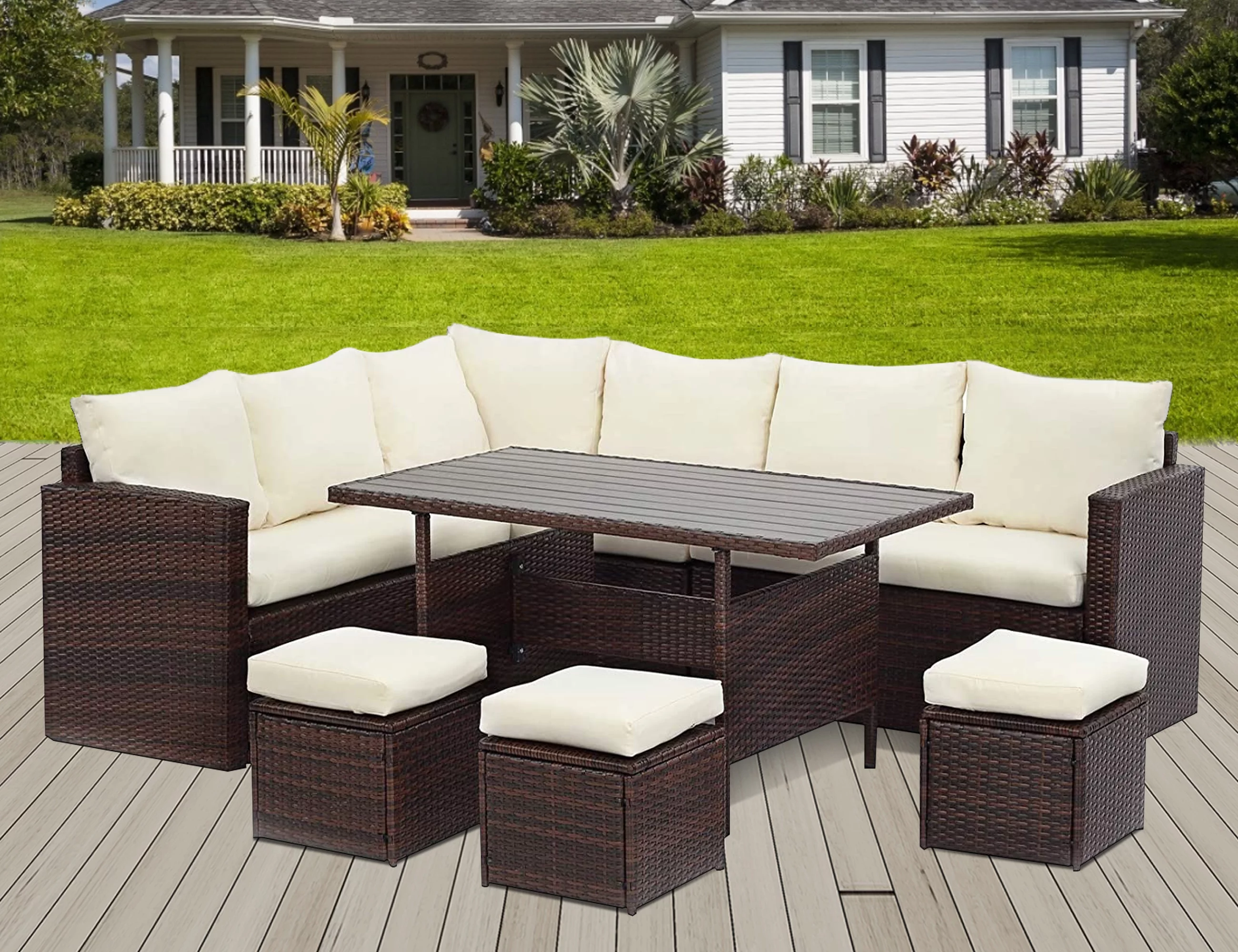LACOO 7 Pieces Patio Conversation Set Outdoor Sectional Sofa Set PE Rattan, Beige