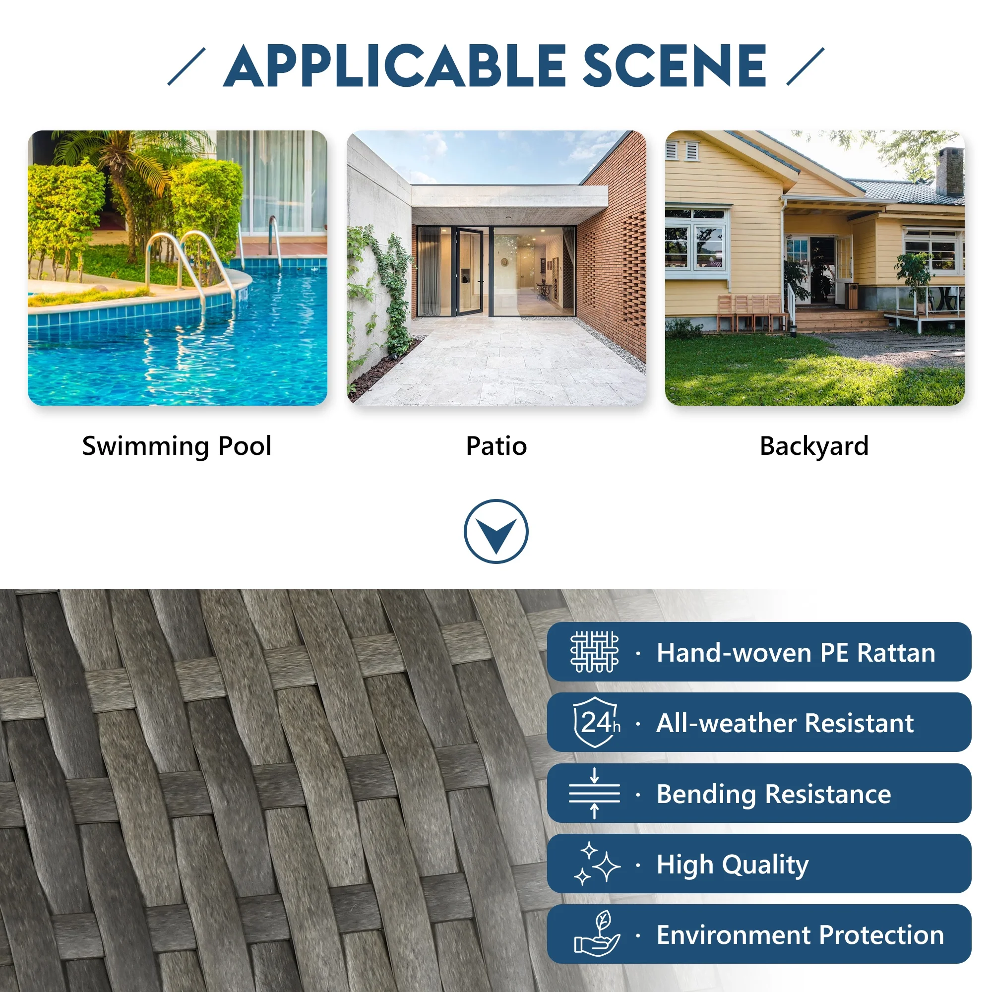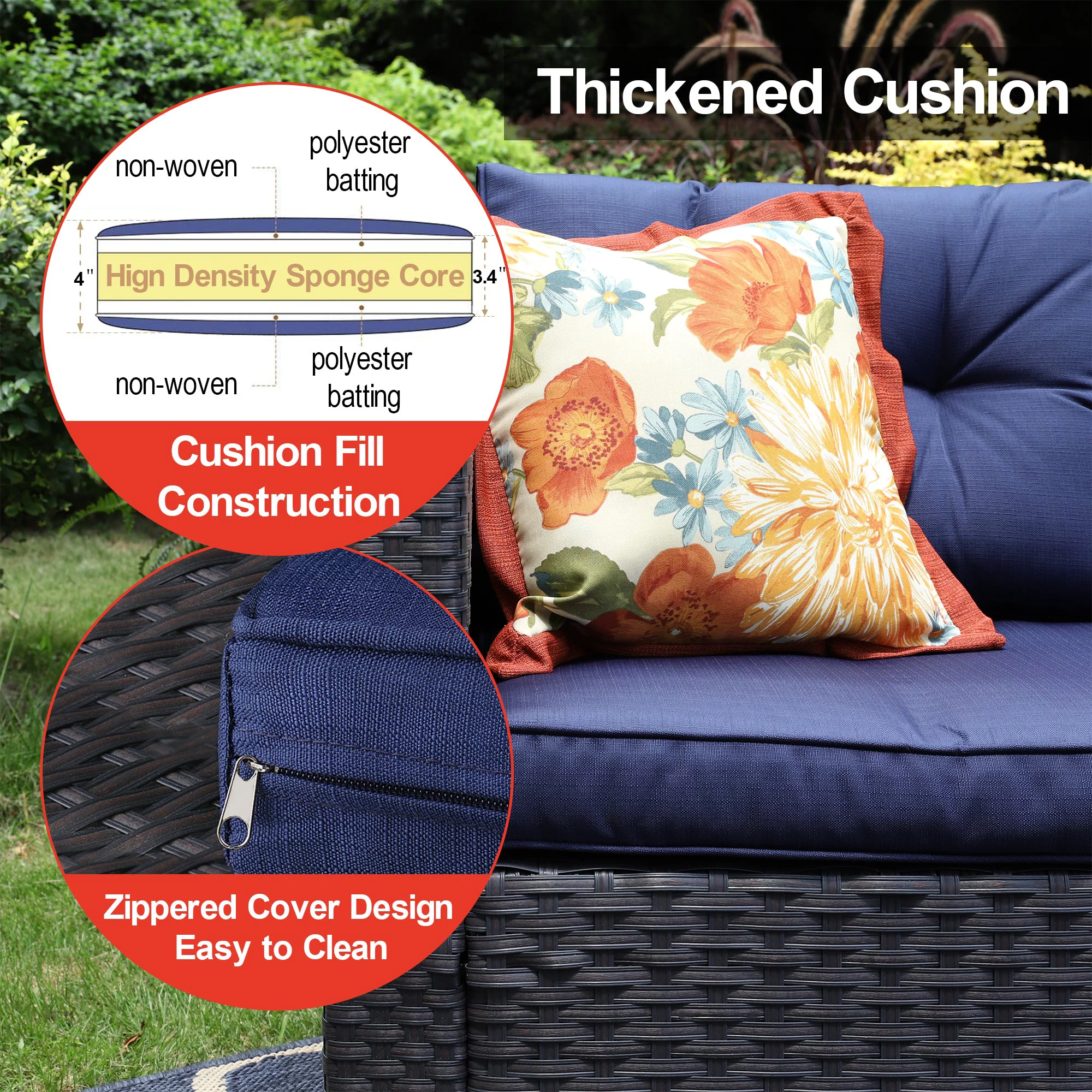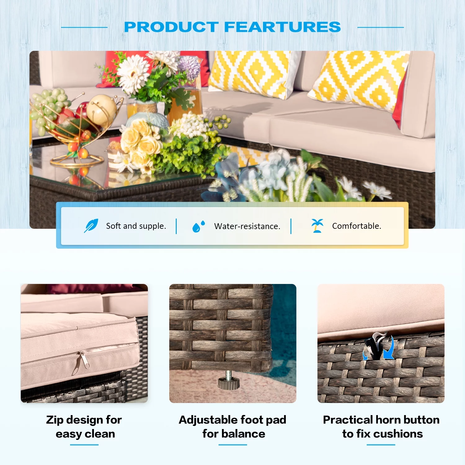 Sophia & William 3Pcs Outdoor Patio Wicker Rattan Sectional Sofa Set - Blue