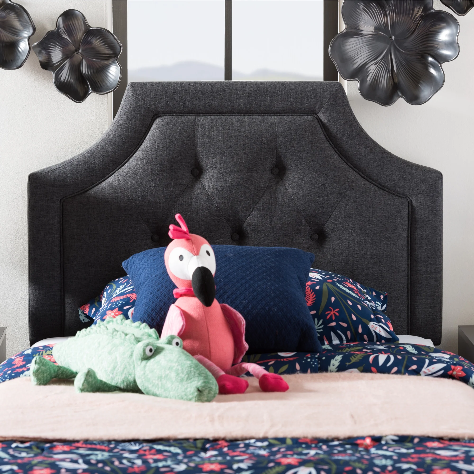 Copper Grove Webster Falls Charcoal Contemporary Headboard Beige Queen