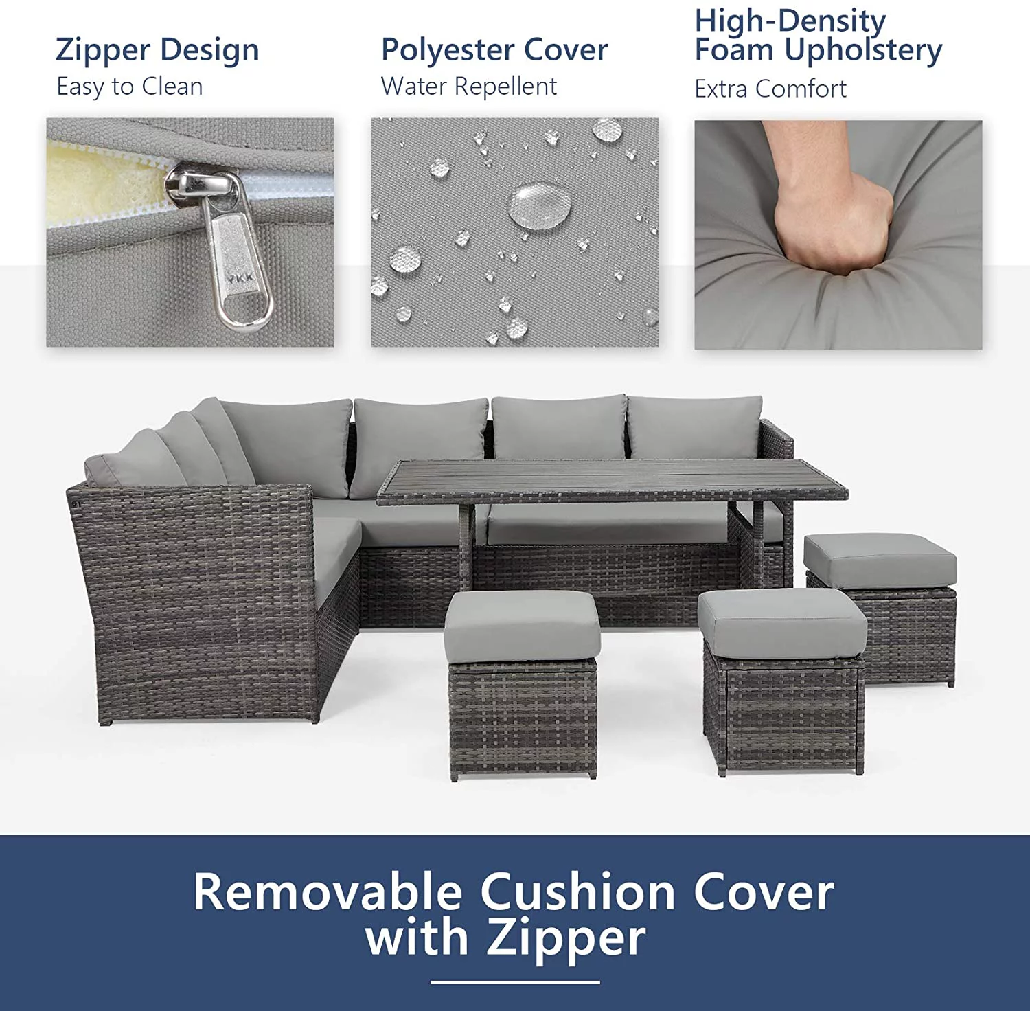 Danrelax 7-Piece Patio Conversation Set, Outdoor Sectional Sofa, PE Rattan Wicker Furniture, Steel Frame, Gray