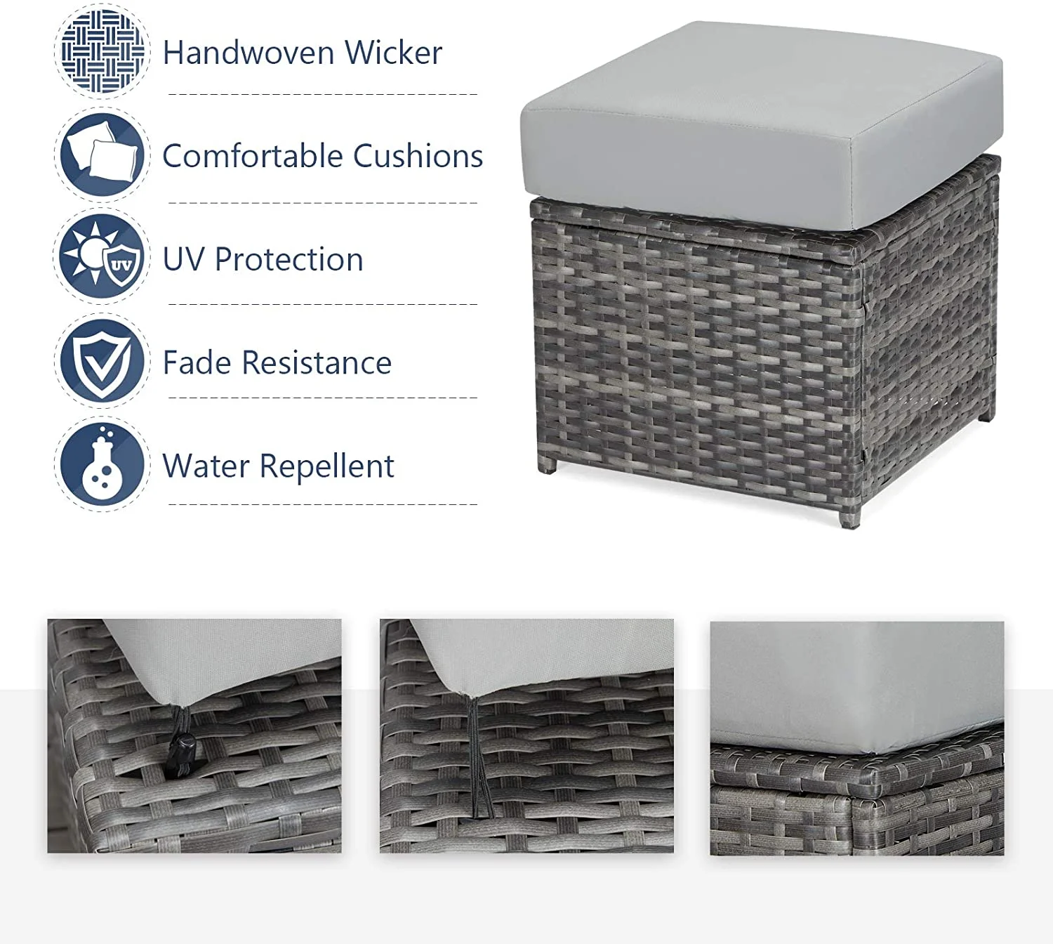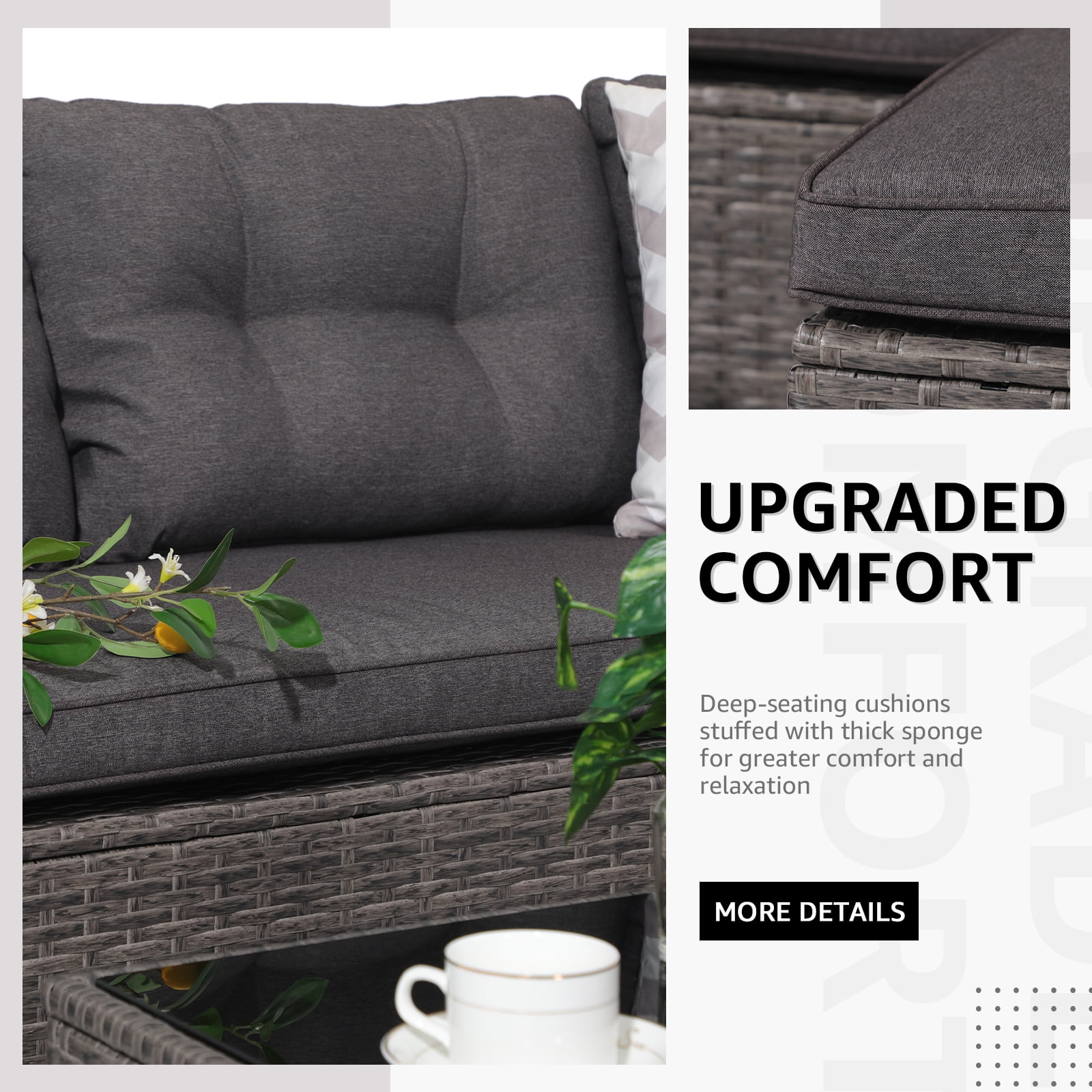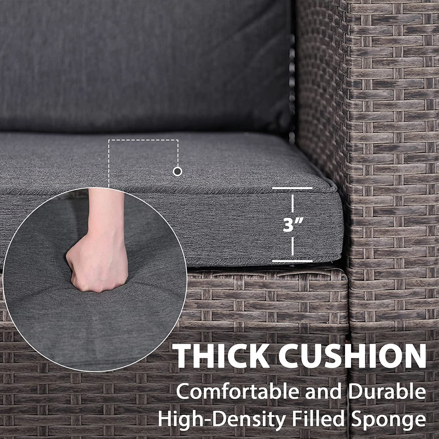 JOIVI 4 Pieces Outdoor Sectional PE Rattan Conversation Sofa Set with Gray Wicker, Dark Gray Cushion